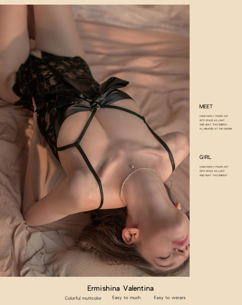 【性感睡裙】性感大蝴蝶结蕾丝开档连体衣裙 纯欲诱惑性感甜美情趣内衣睡衣6043