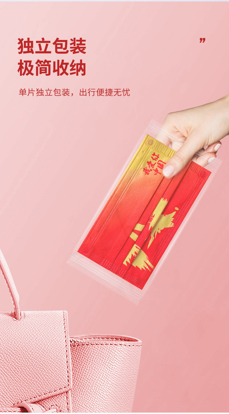 【中式美学❗️国潮三层防护口罩】好看又安全,我爱你中国口罩独立装,把好运戴在身上❗️大红色新年一次性口罩,年蛇年纳福开运年货特价清仓