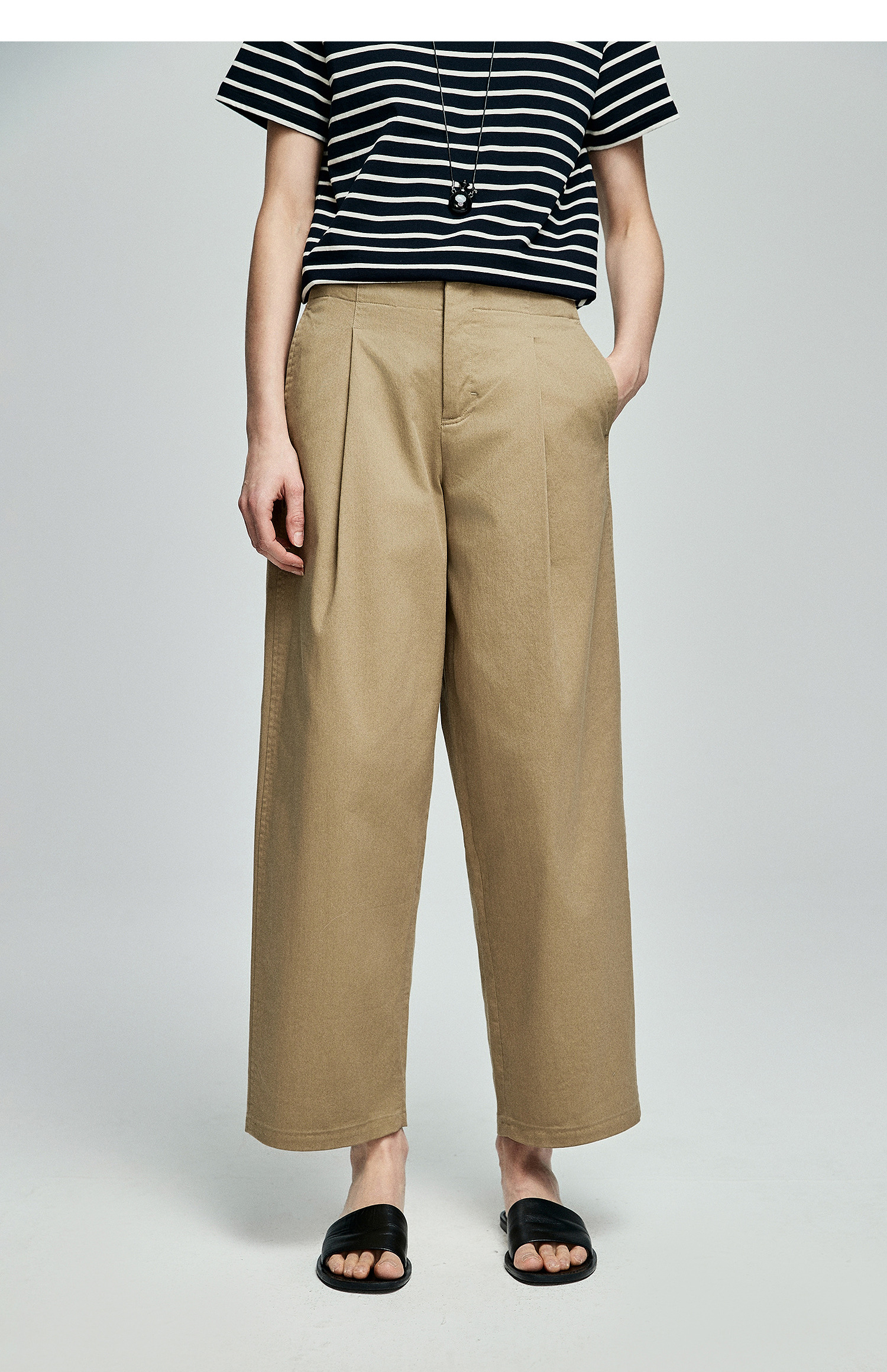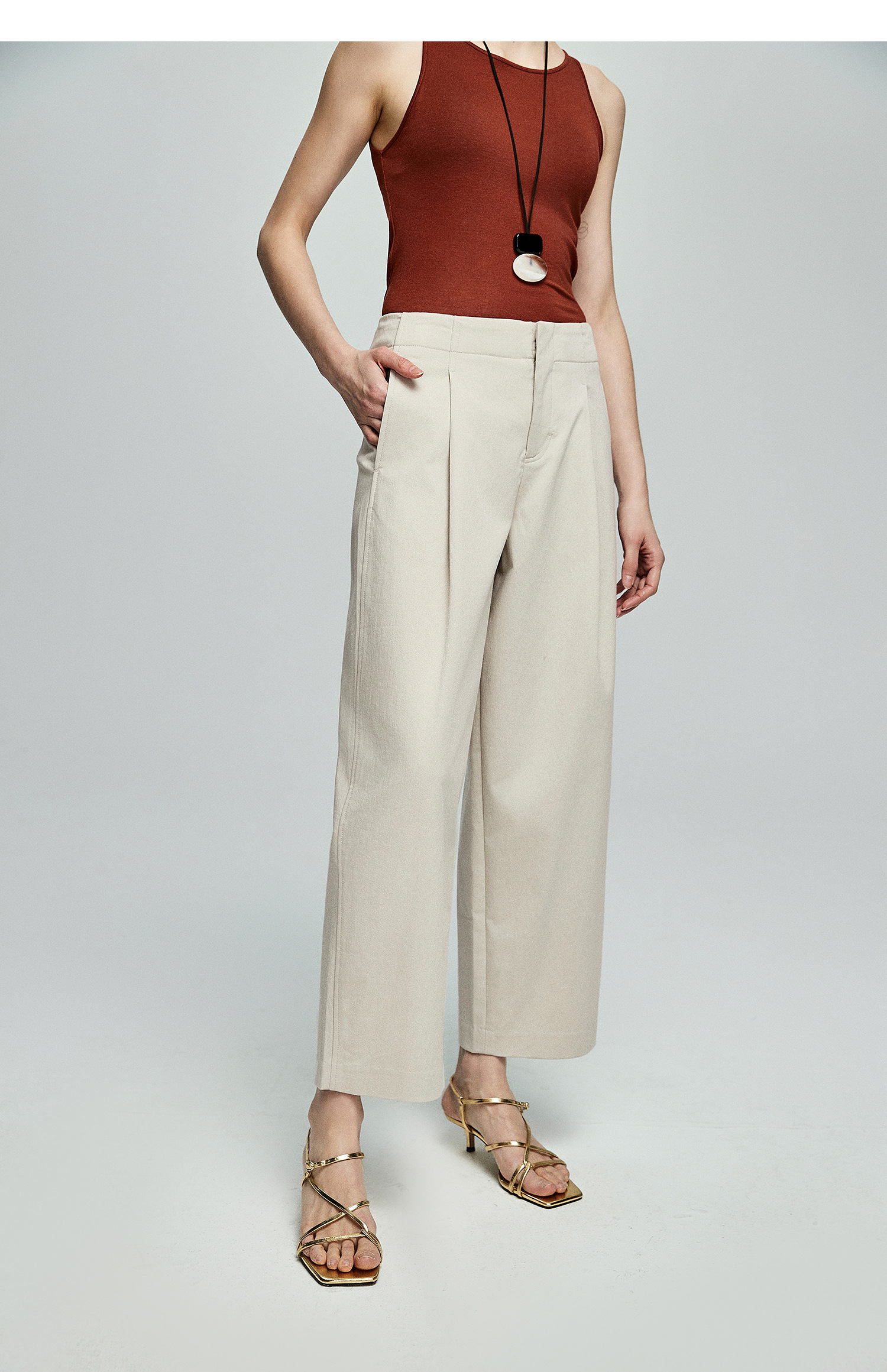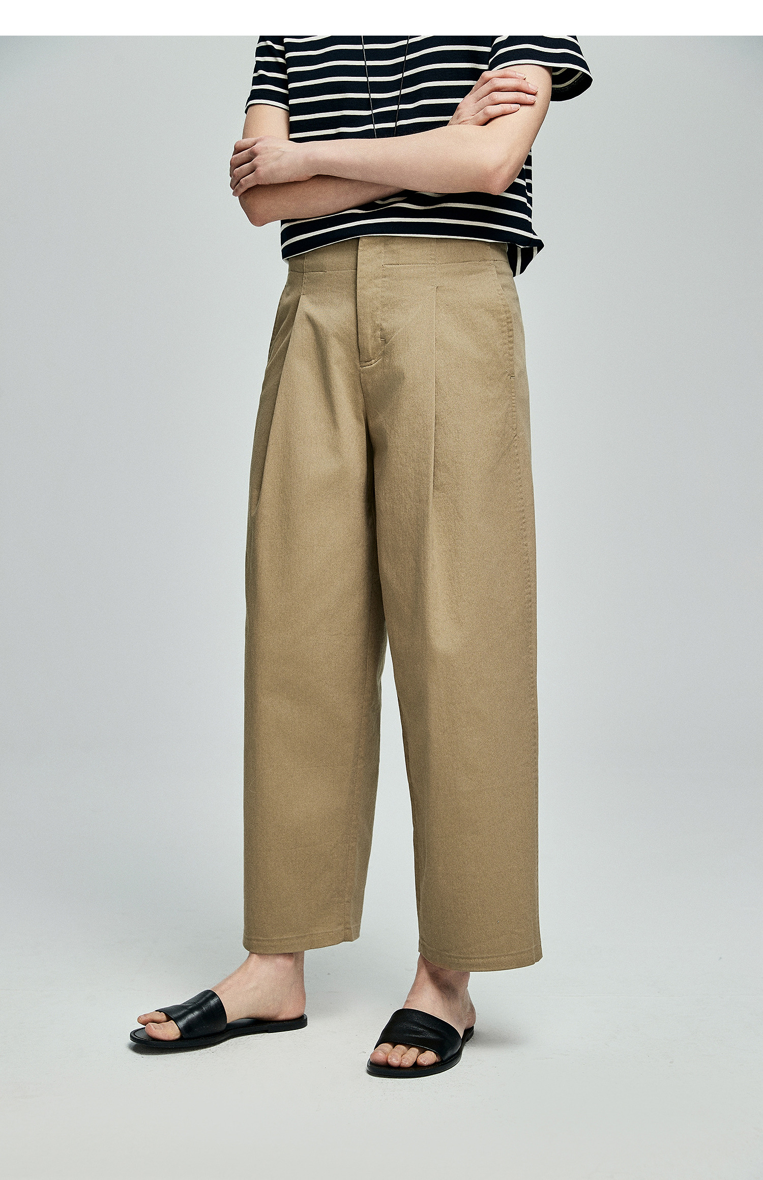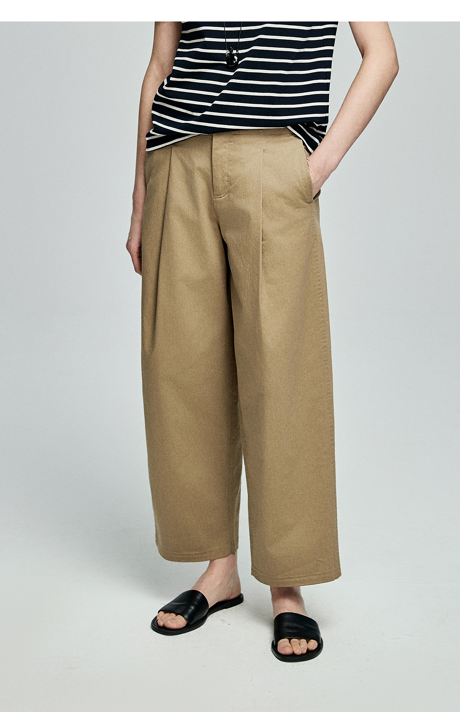 棉仓362618015-初棉褶裥微弹斜纹弧摆锥型奇诺裤