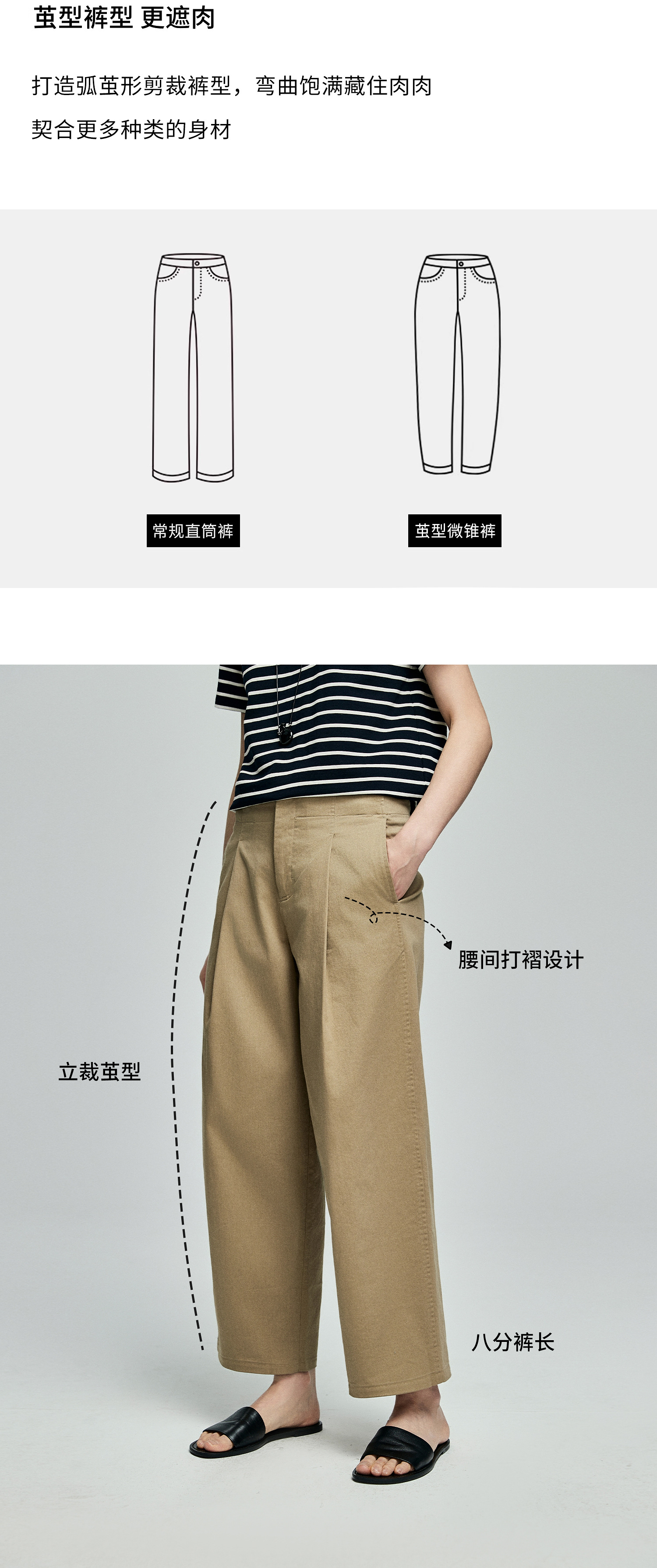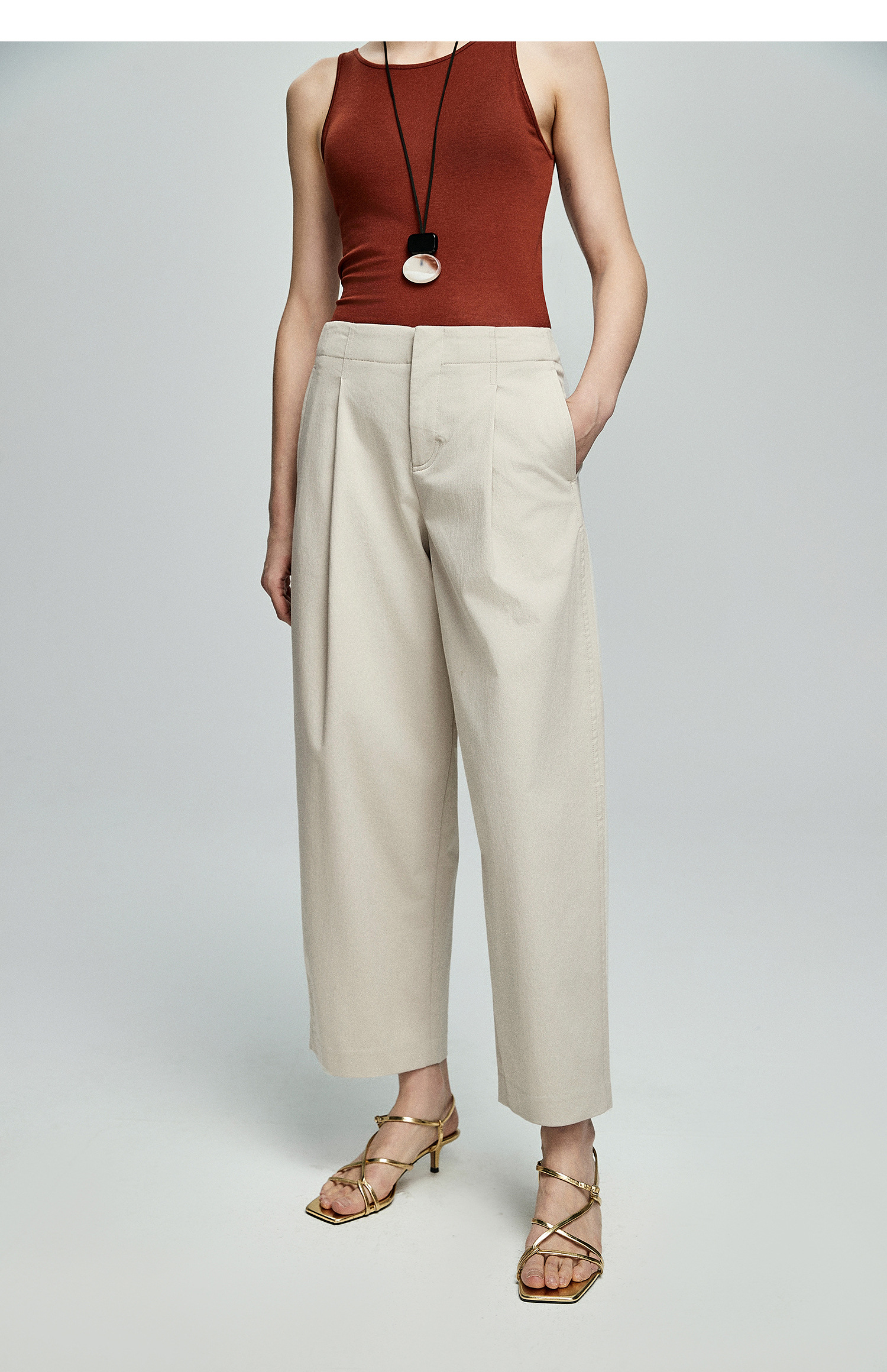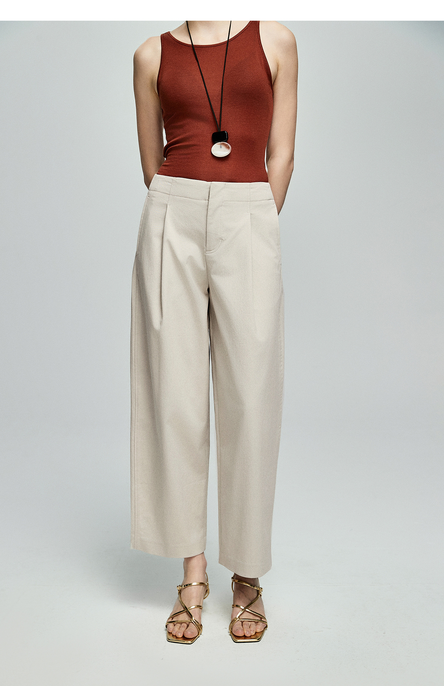 棉仓362618015-初棉褶裥微弹斜纹弧摆锥型奇诺裤