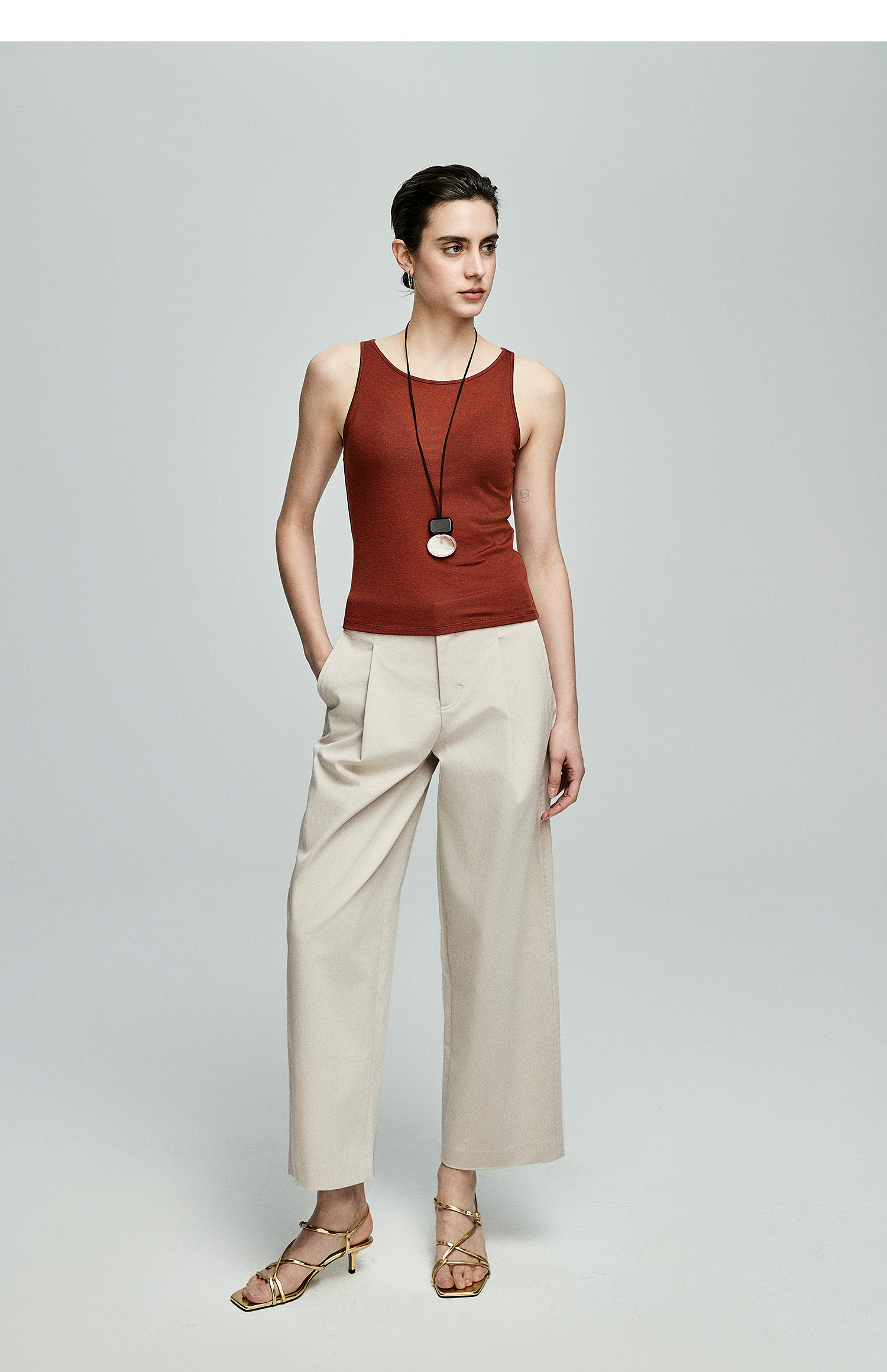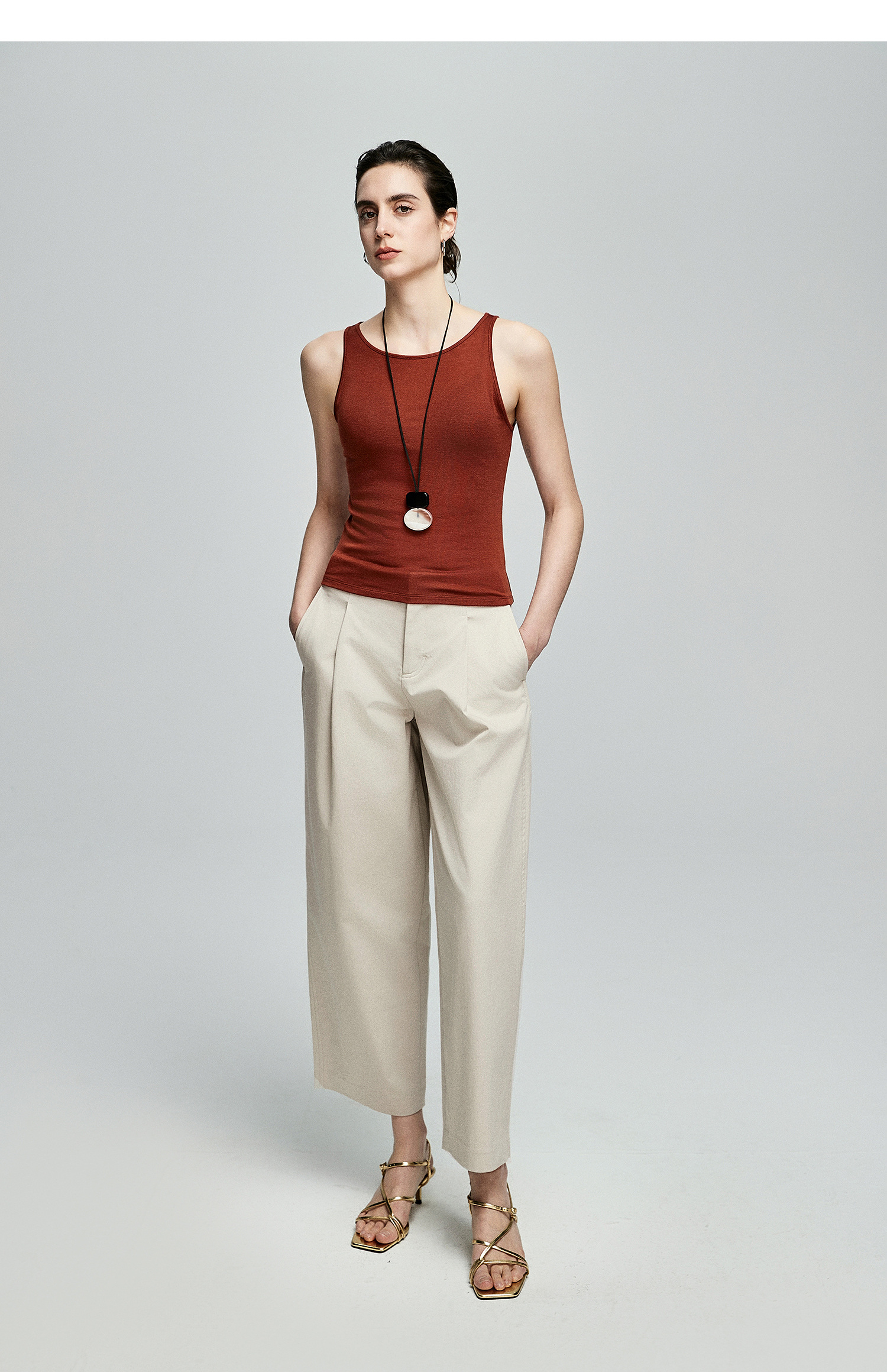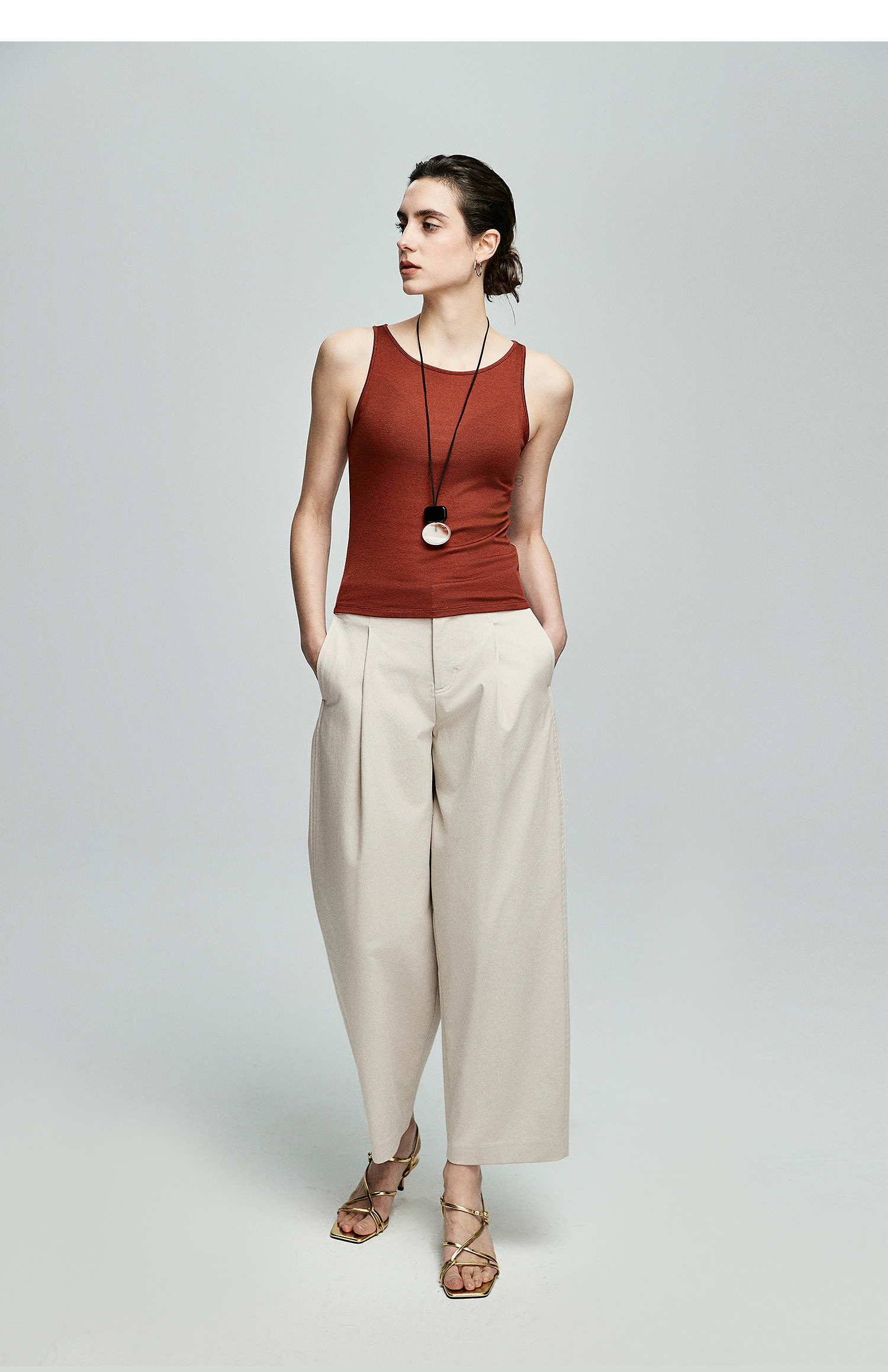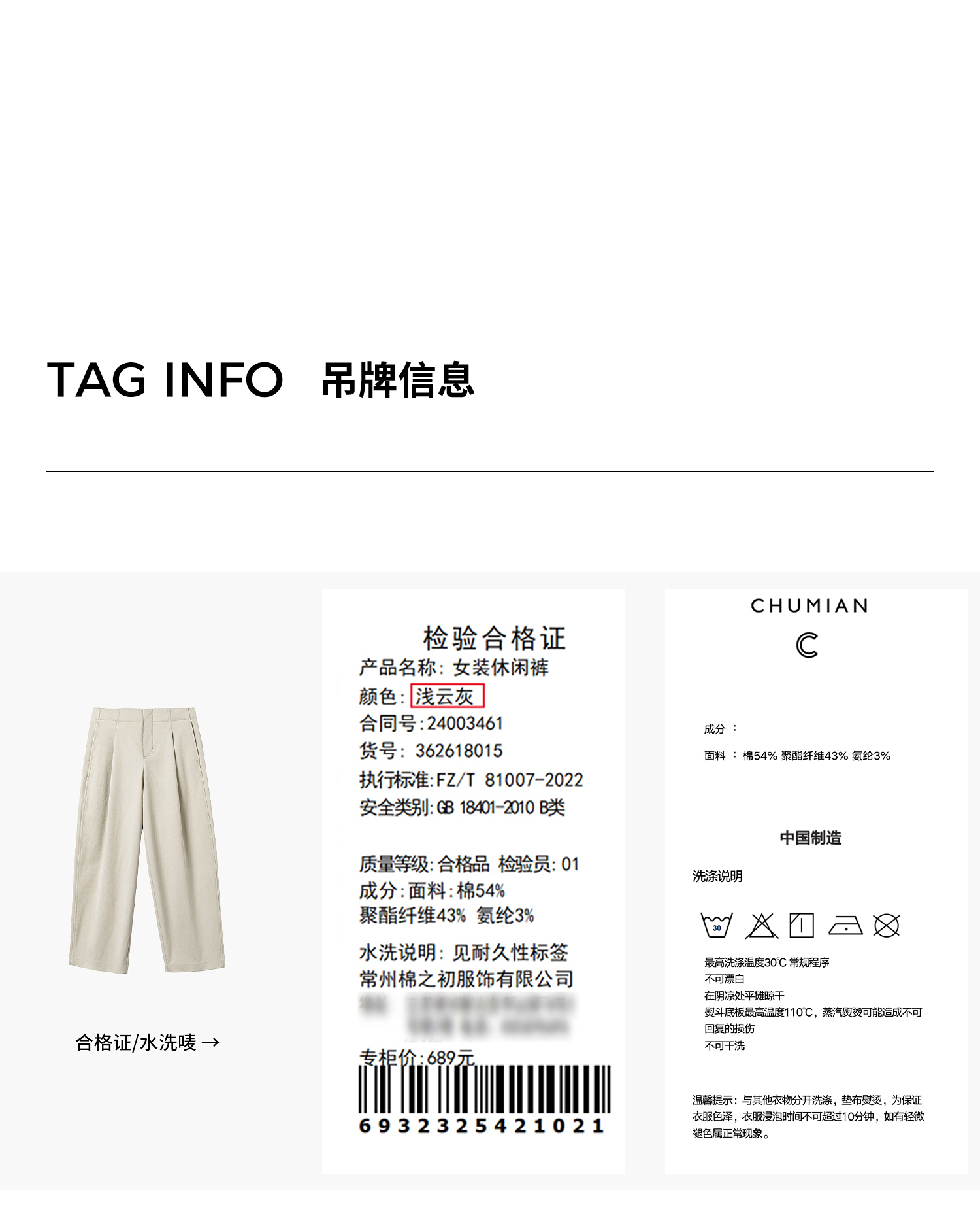 棉仓362618015-初棉褶裥微弹斜纹弧摆锥型奇诺裤