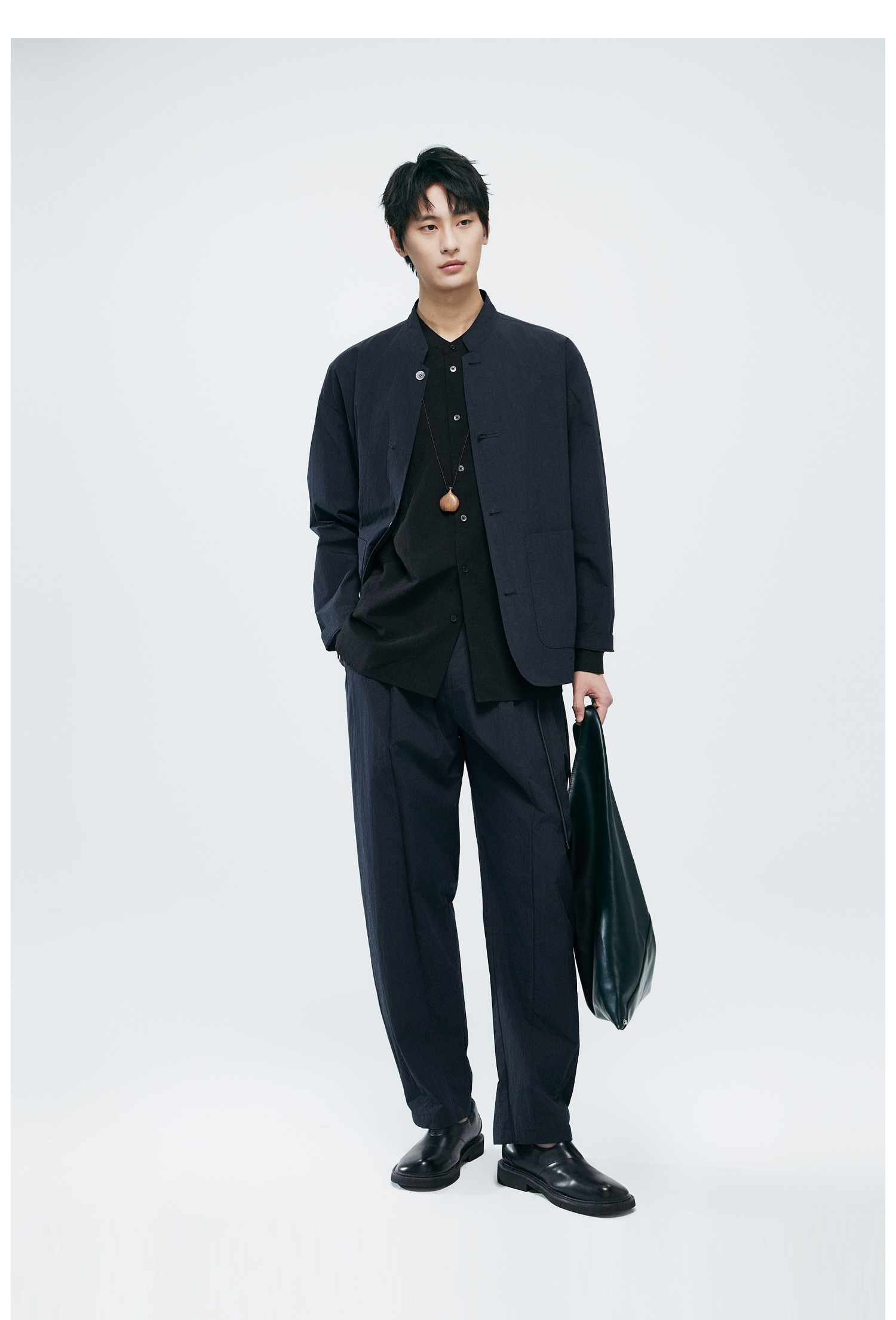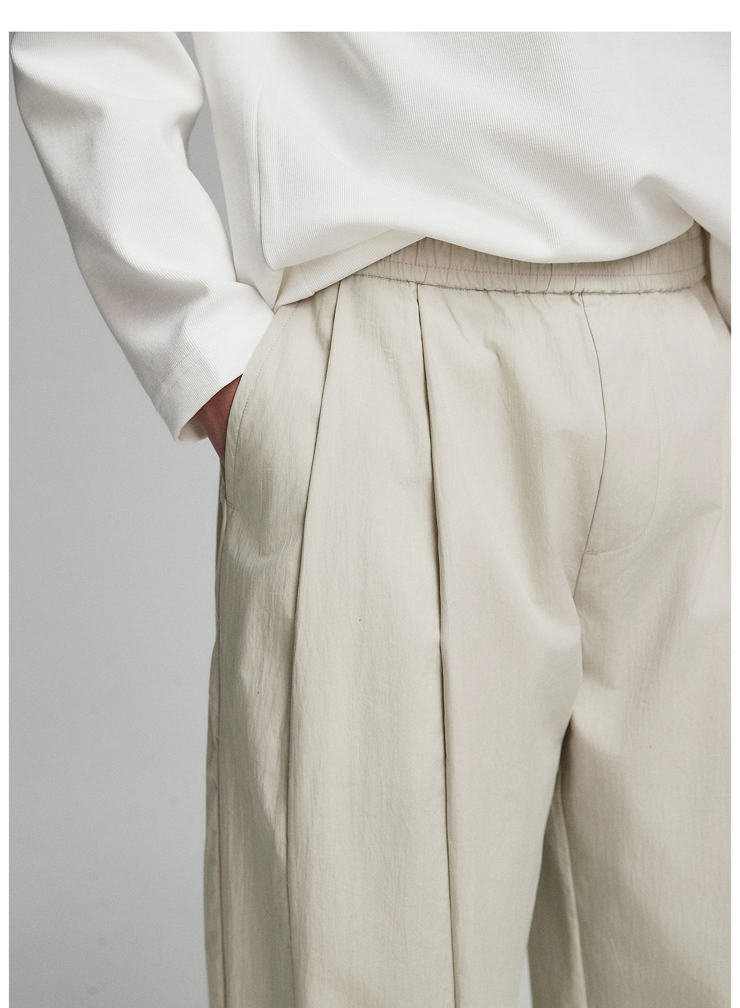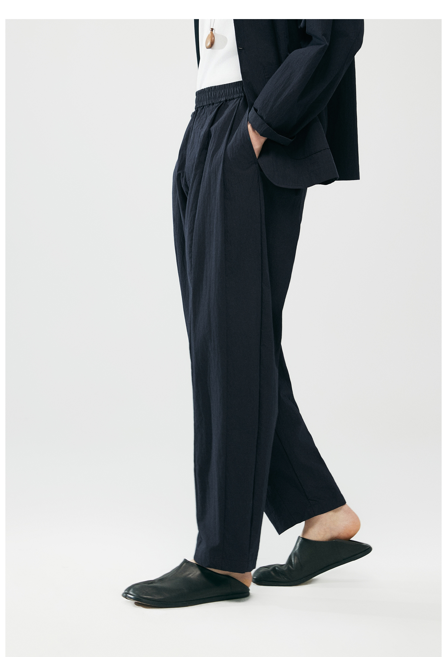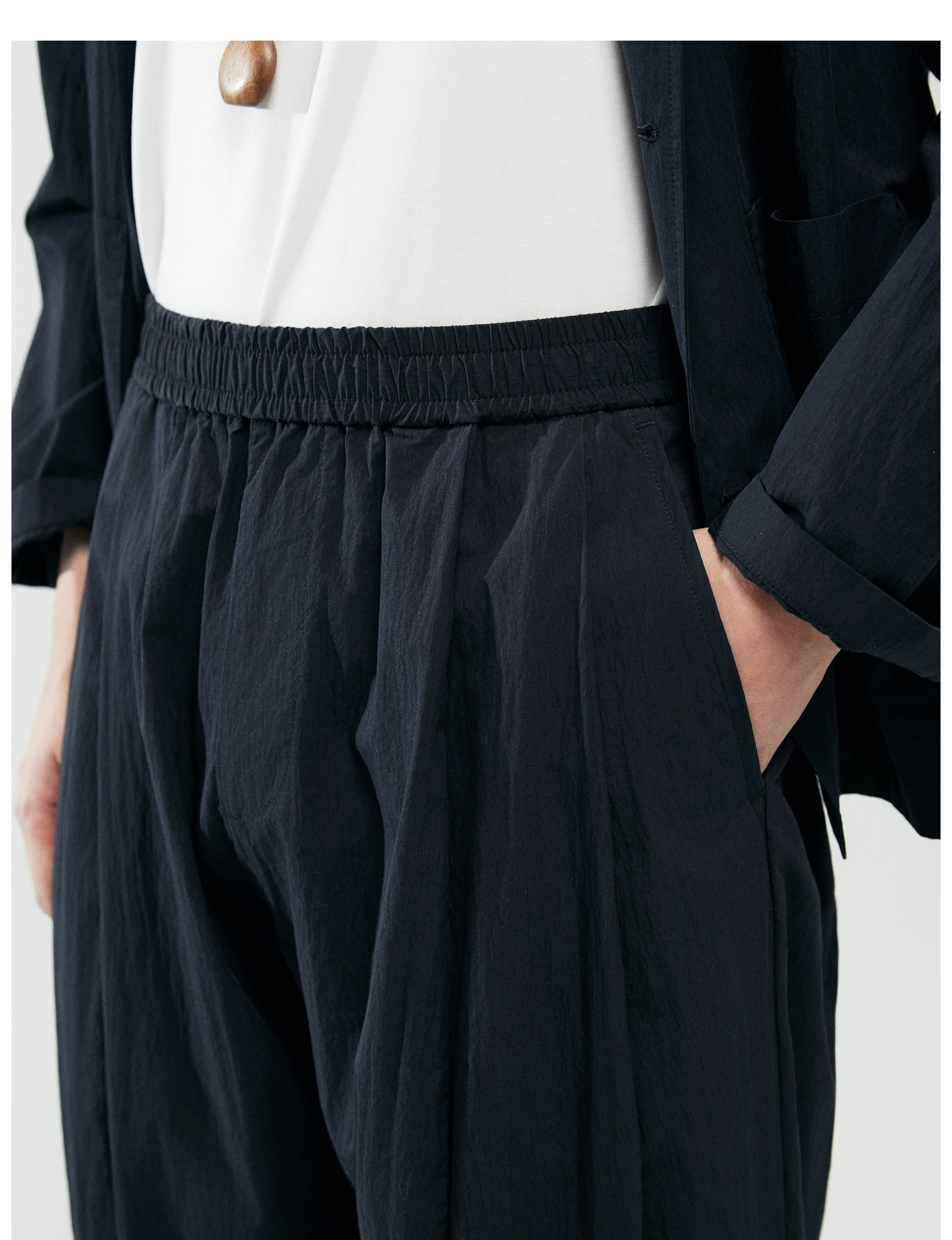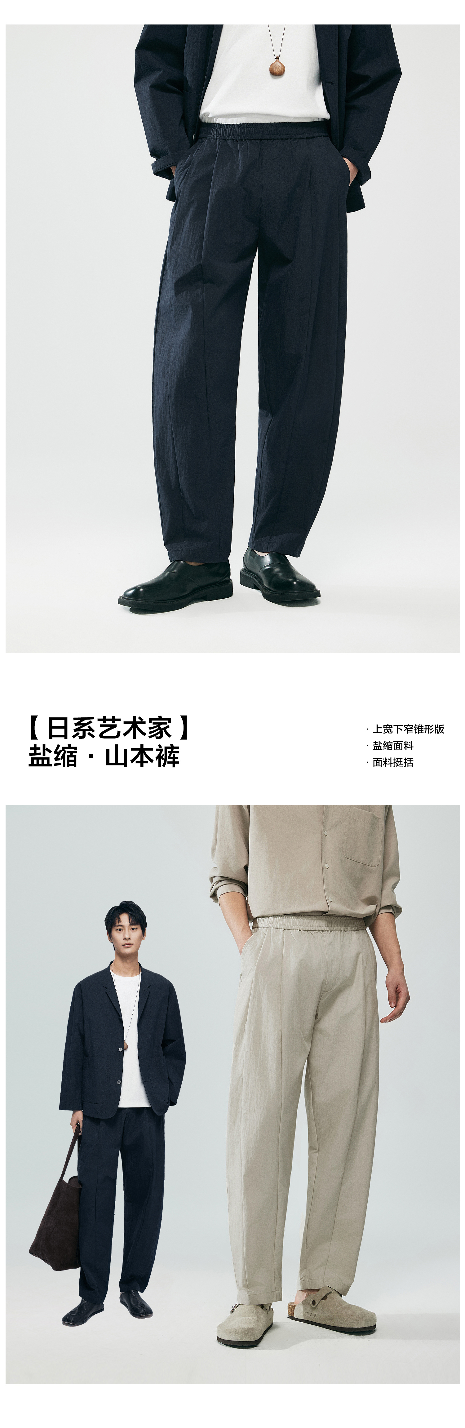 棉仓363818003-高密棉锦盐缩宽松打褶山本裤