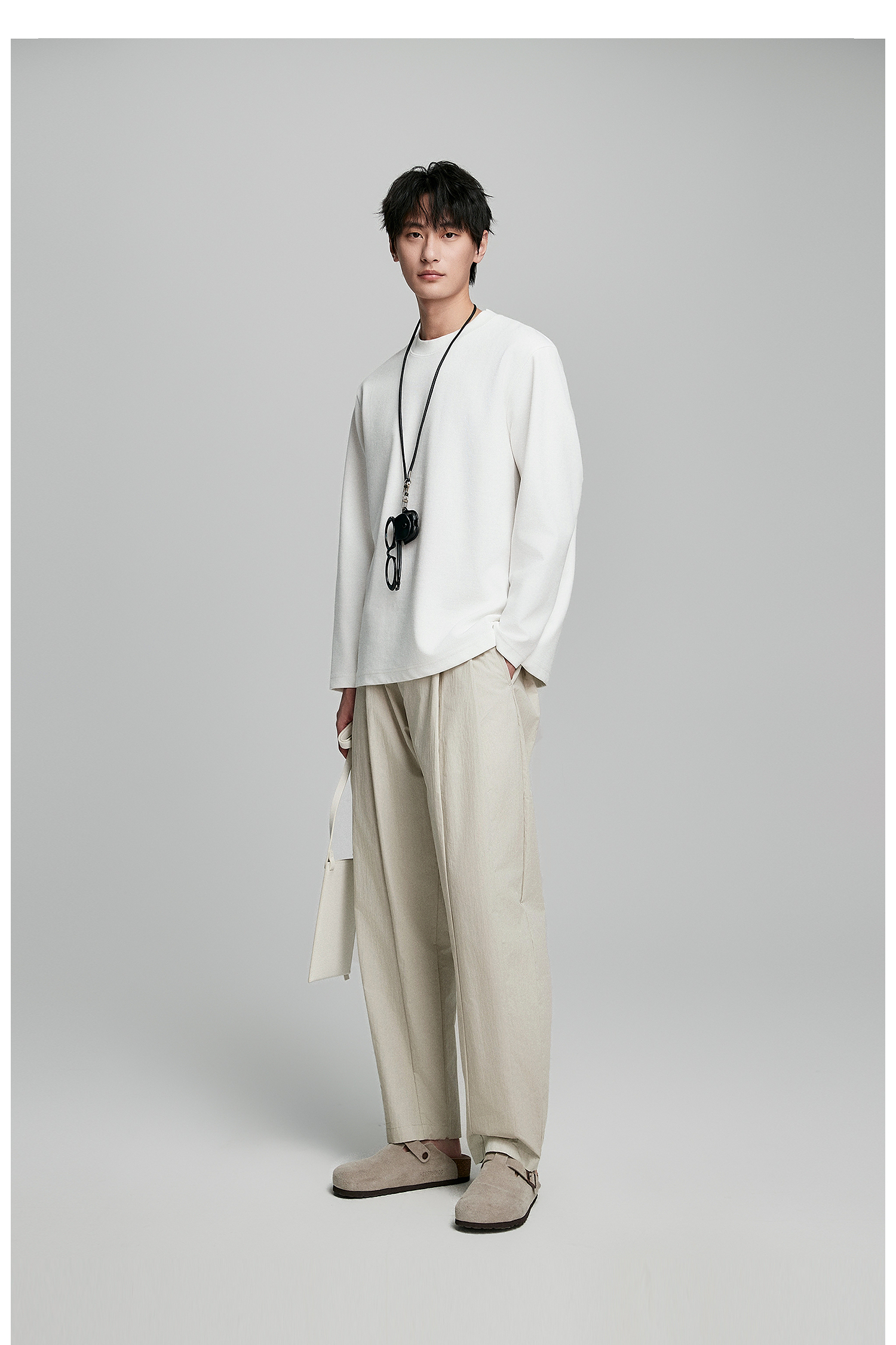 棉仓366601027-25春夏圆领长袖窄肩设计简约时髦感T恤