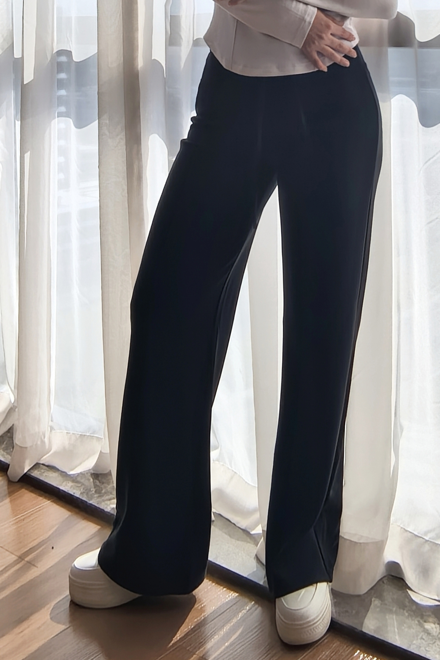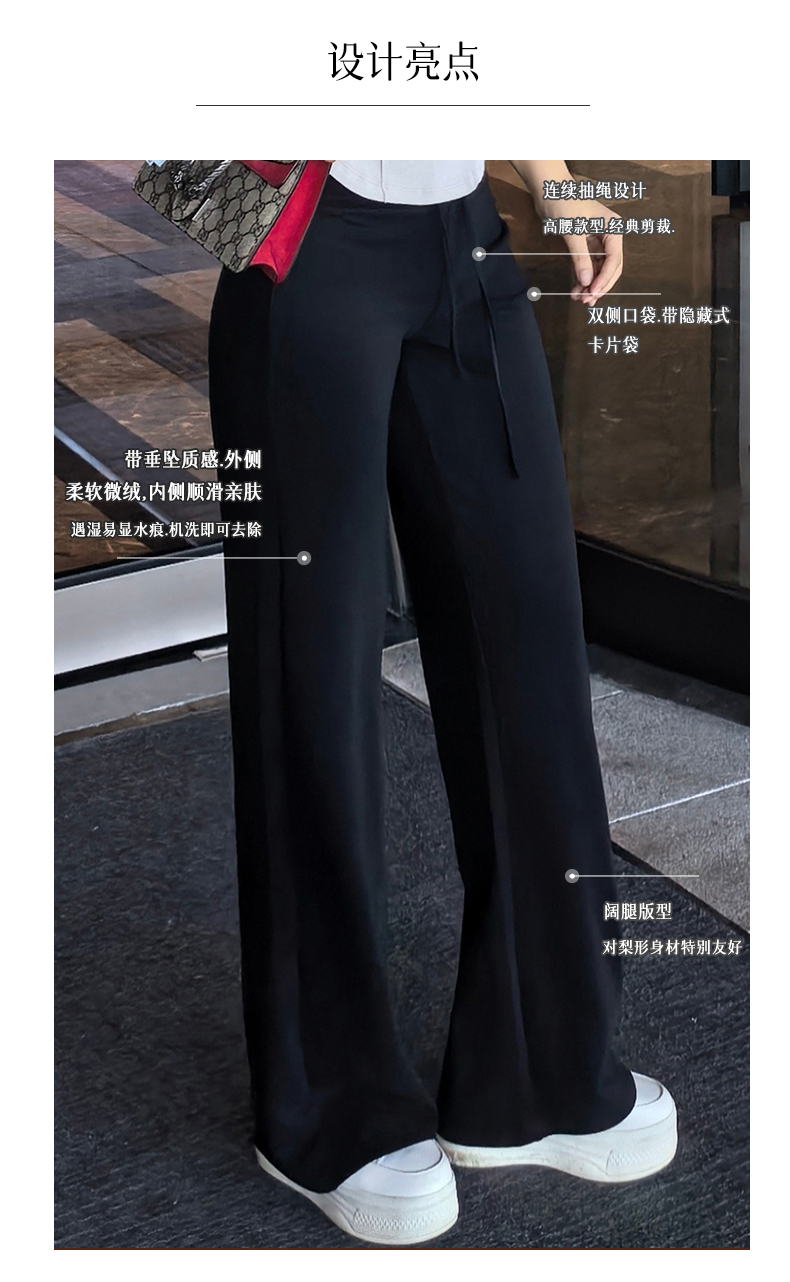 铜氨丝空气层面料的垂度和顺滑度也很加分,上身会显得腿型又瘦又直~