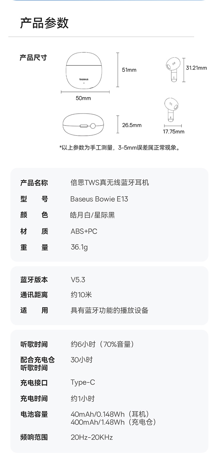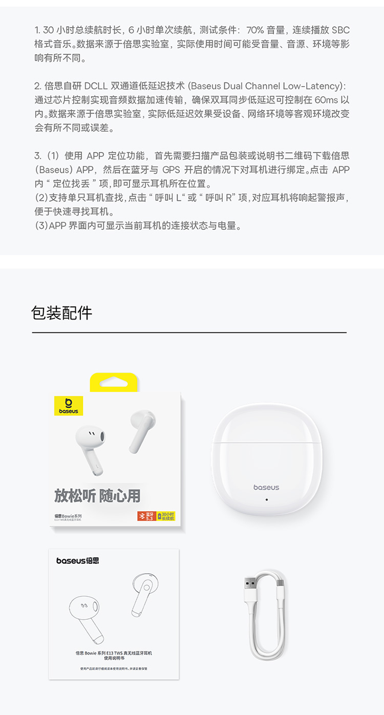 倍思 Bowie系列 E13 TWS真无线蓝牙耳机