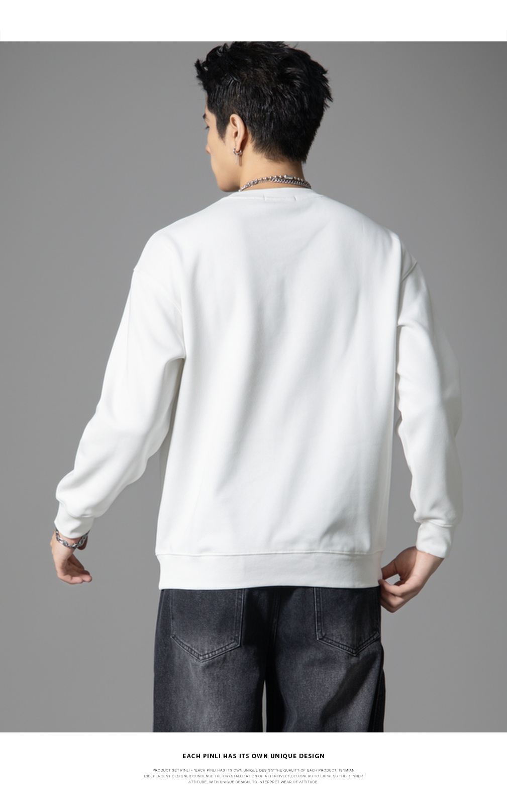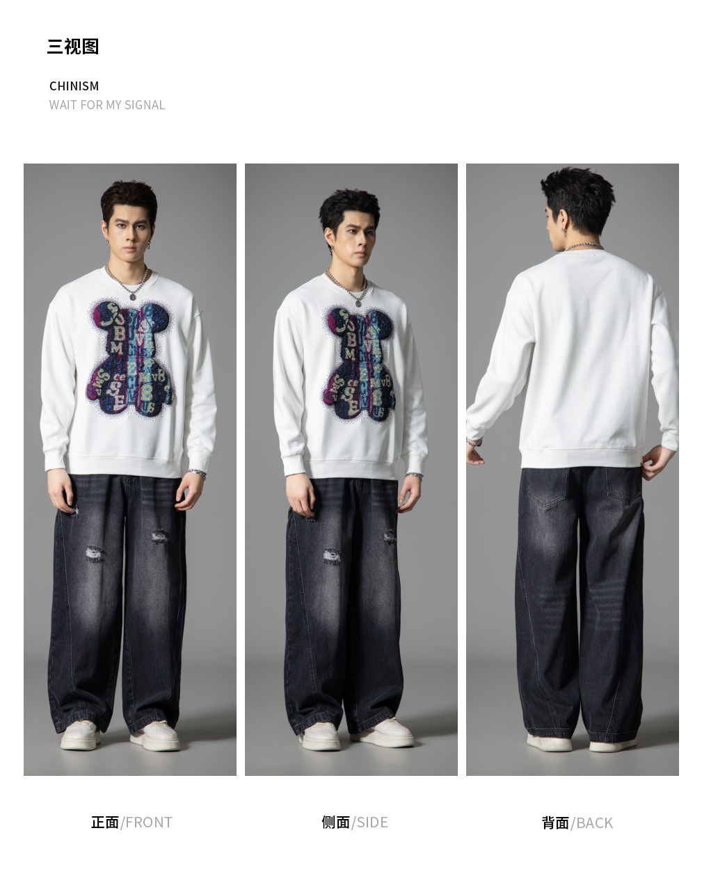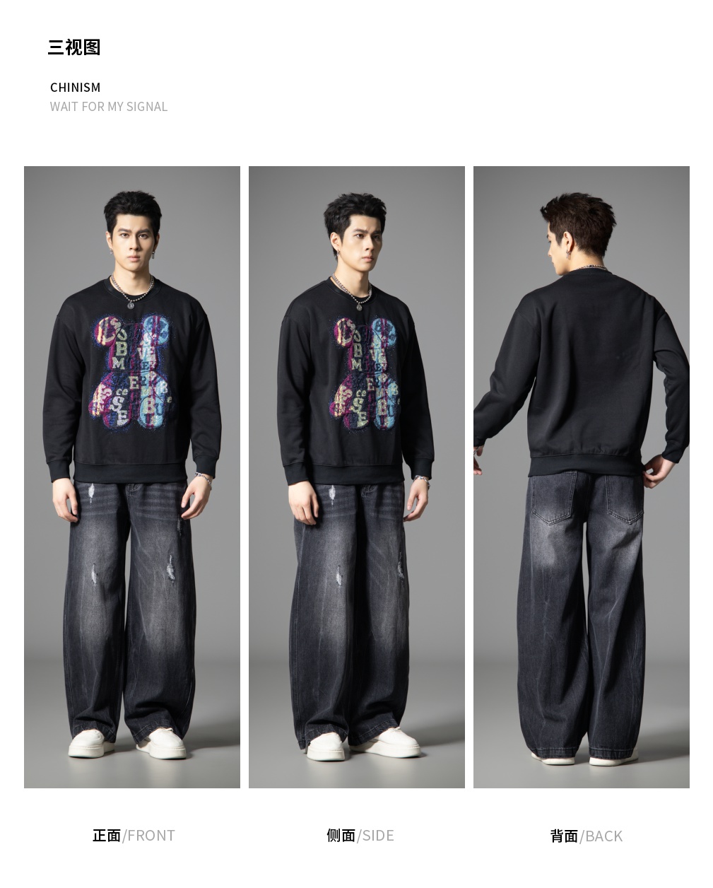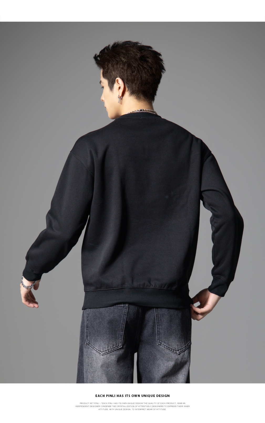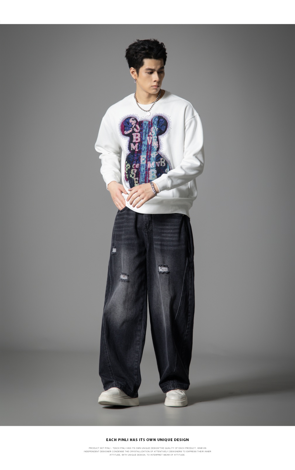 PINLI品立2025秋季新款男宽松圆领卫衣美式潮牌小熊烫钻长袖上衣BG251109003