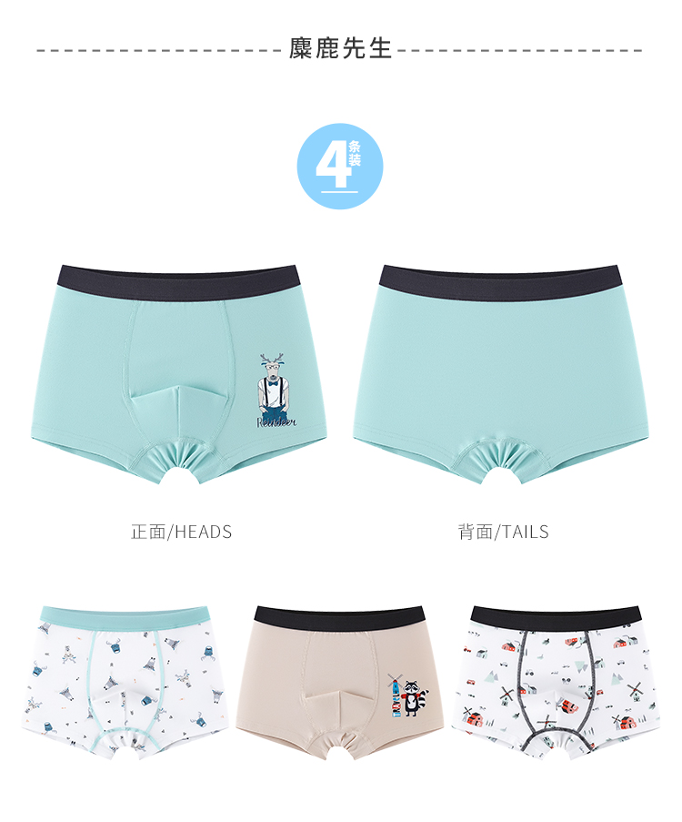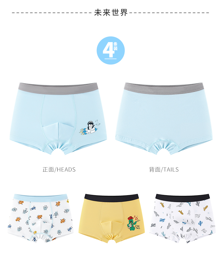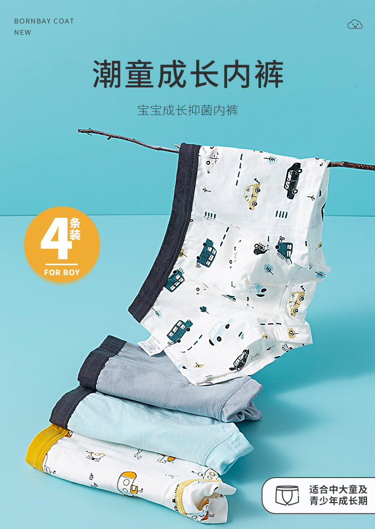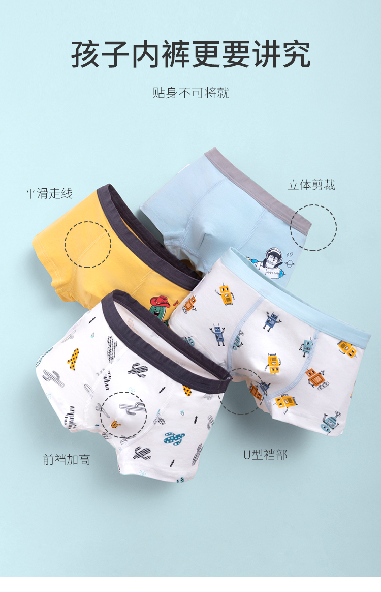 贝贝怡四条装儿童内裤男童平角短裤男孩抗菌大童宝宝卡通不夹pp
