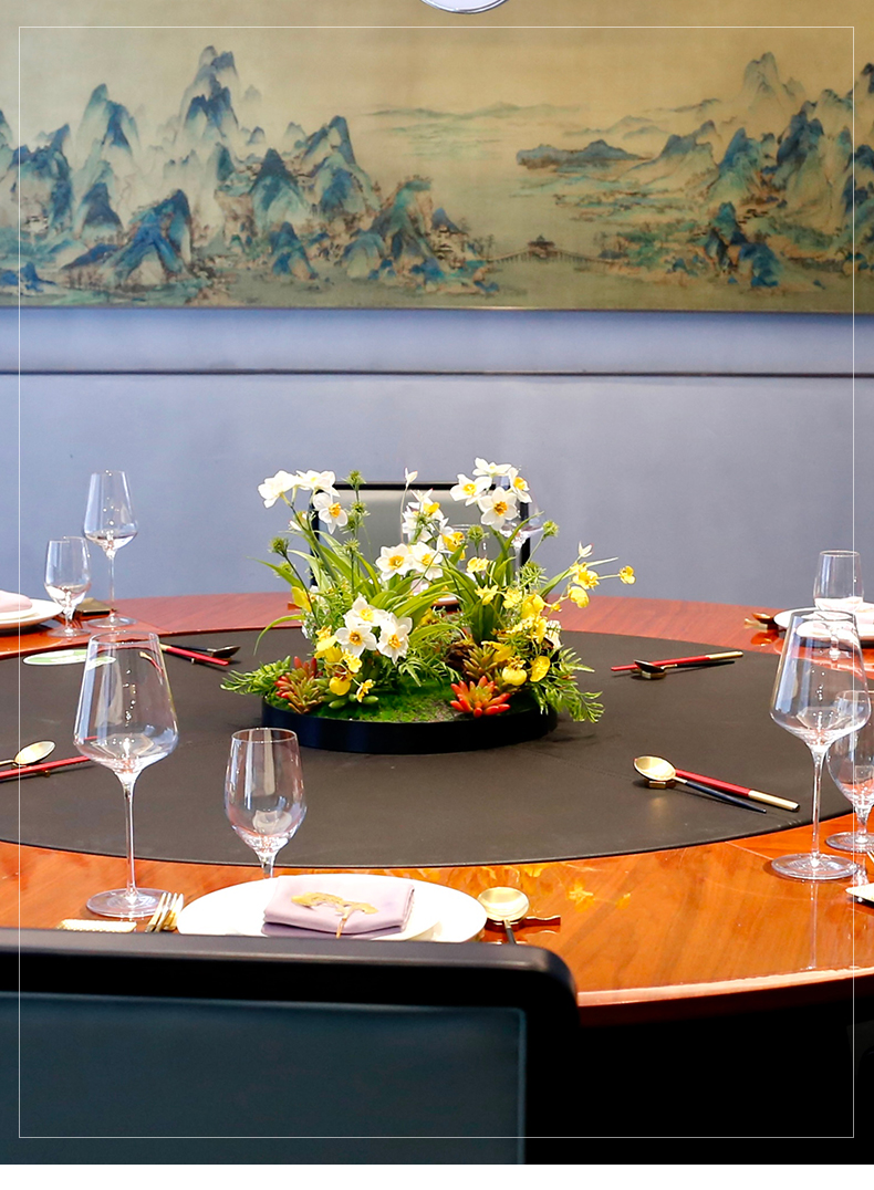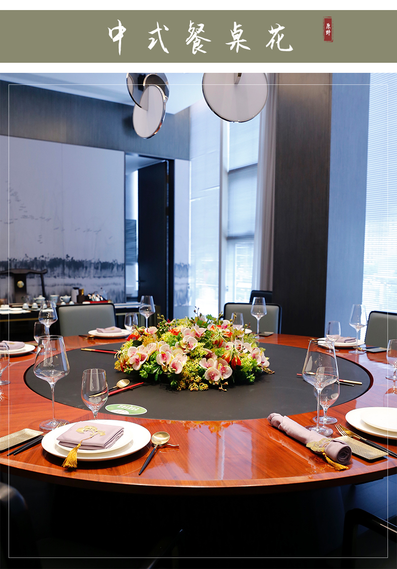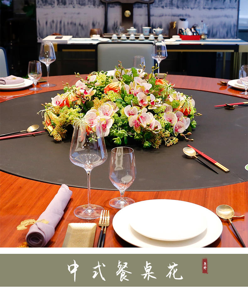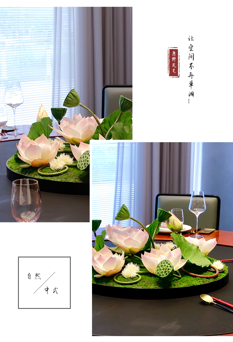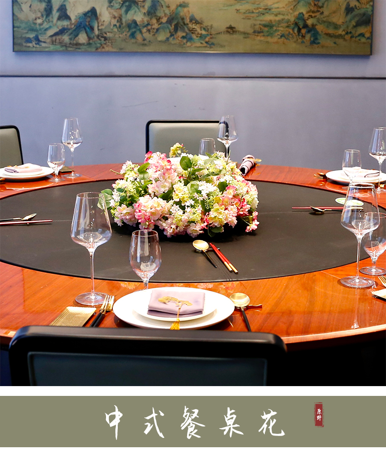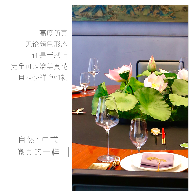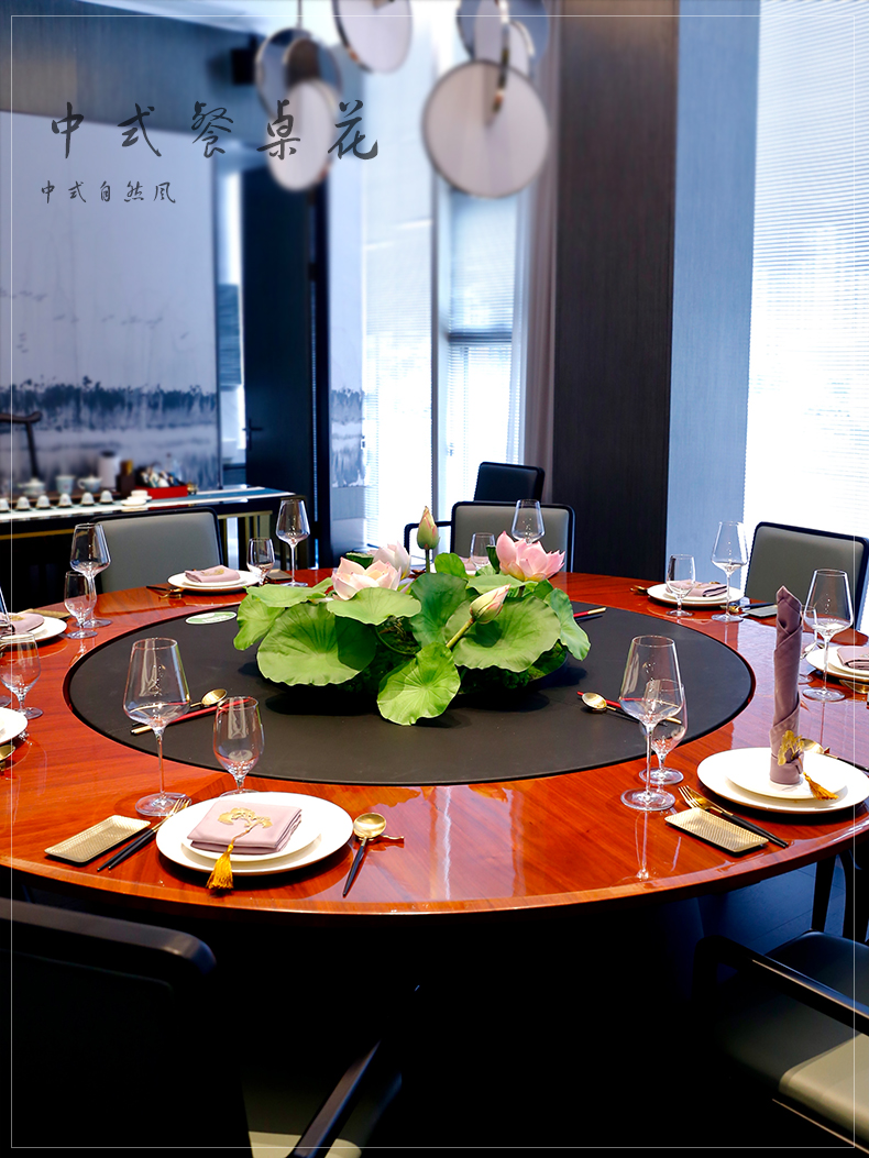酒店圆桌中间高档摆花新中式荷花餐桌花包厢仿真花艺摆件高端假花