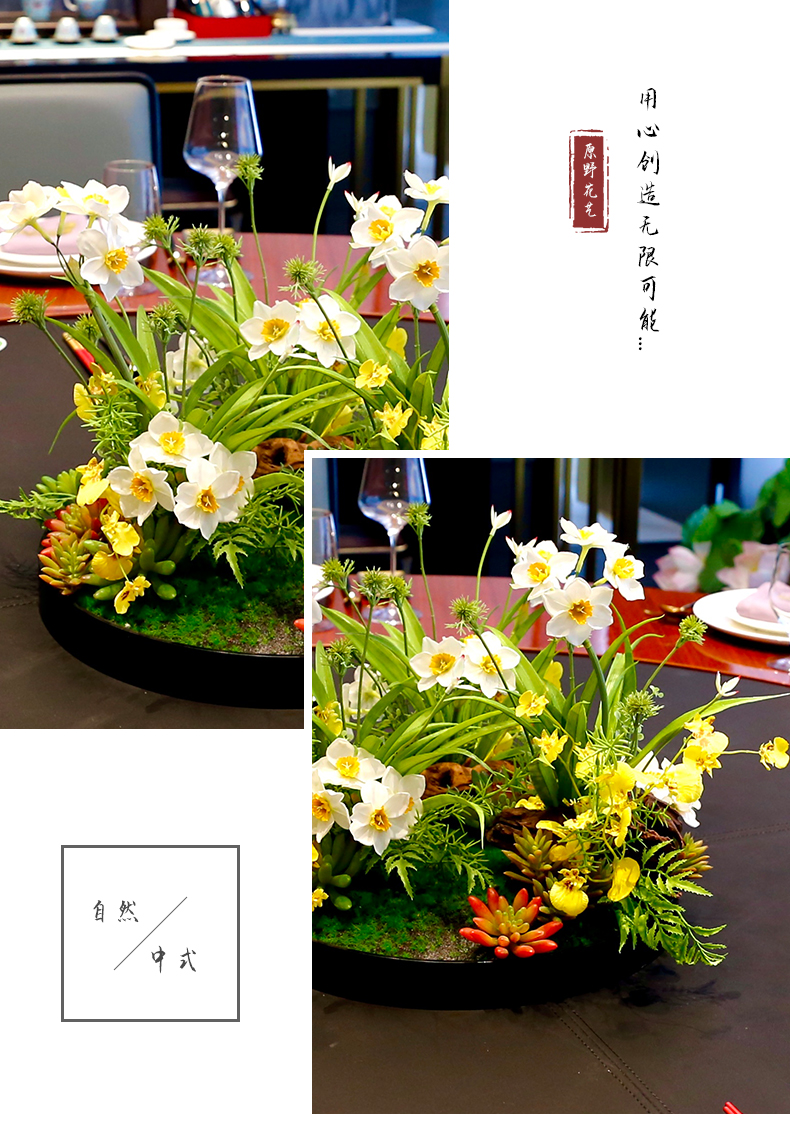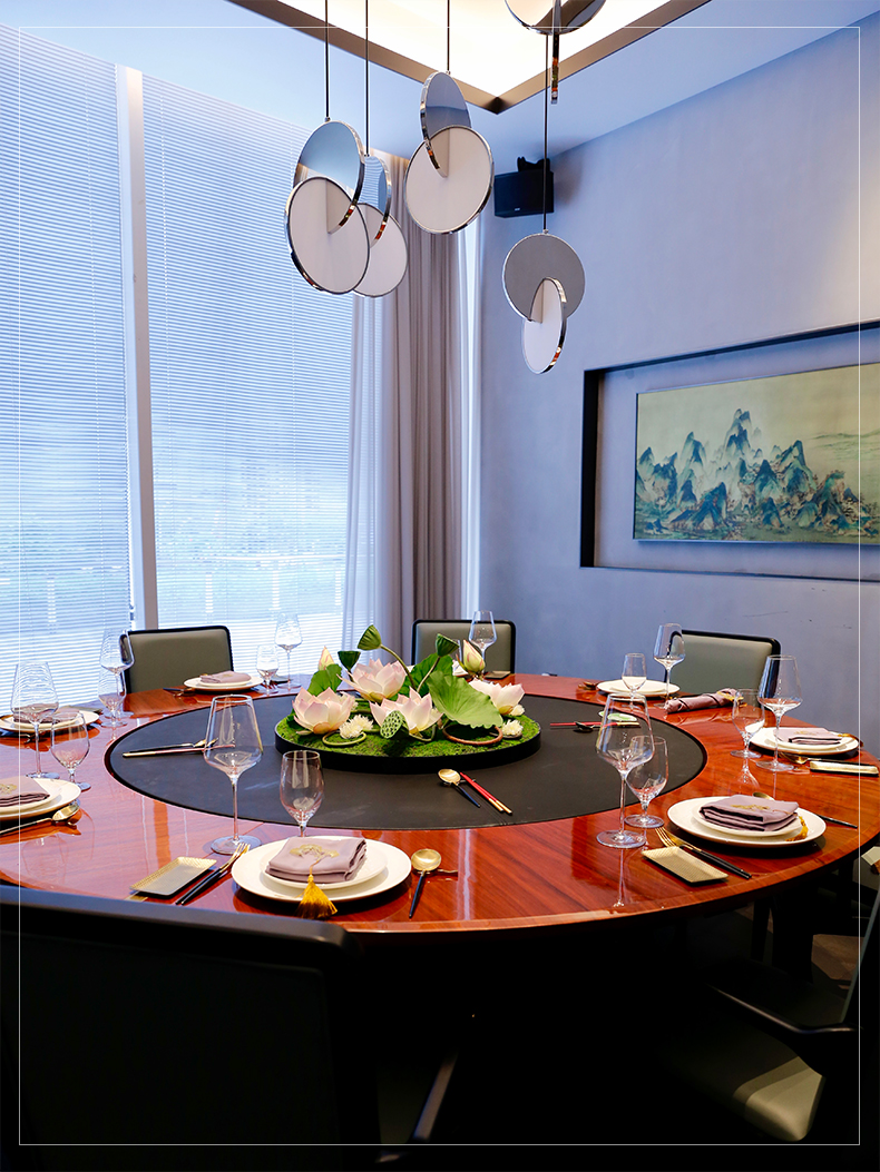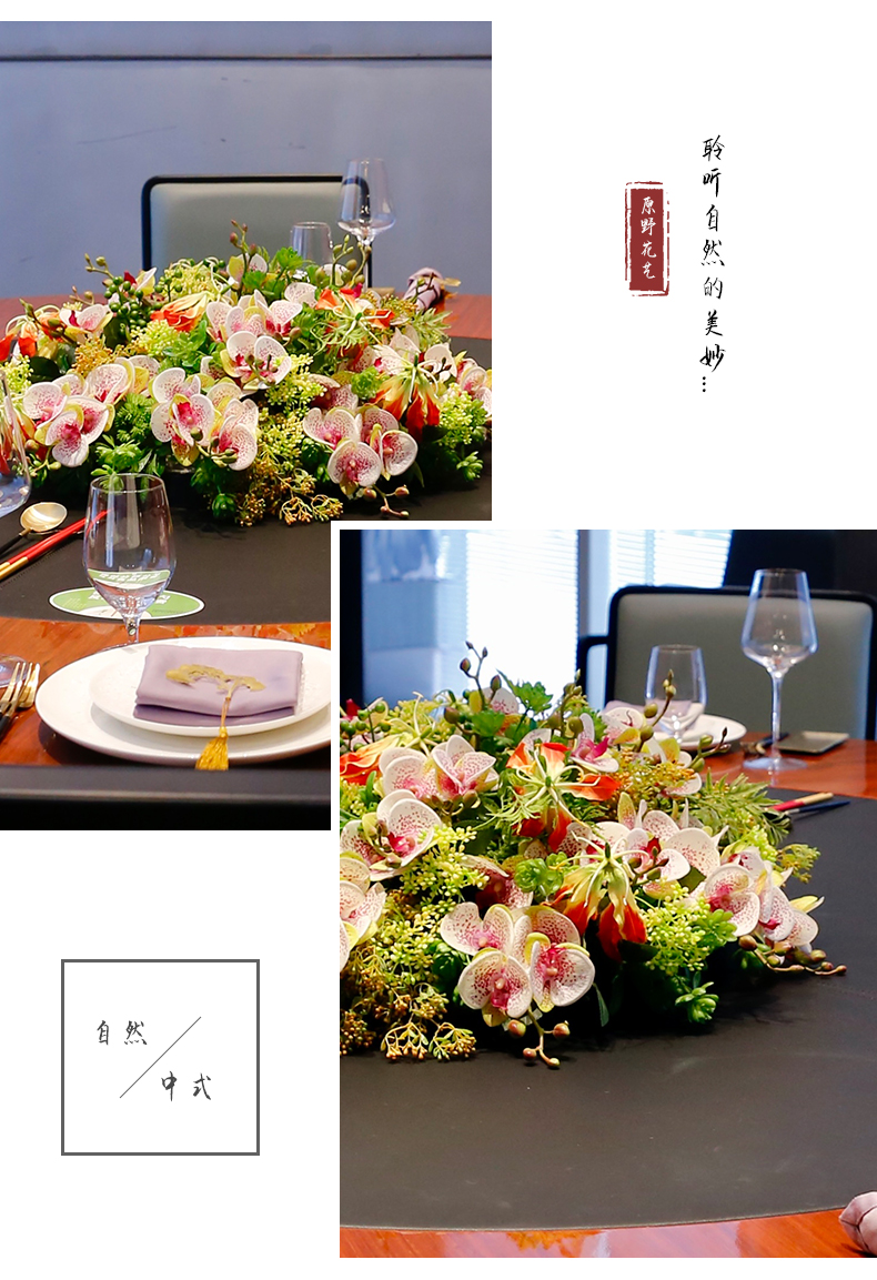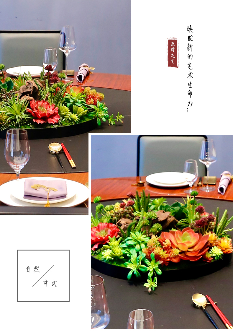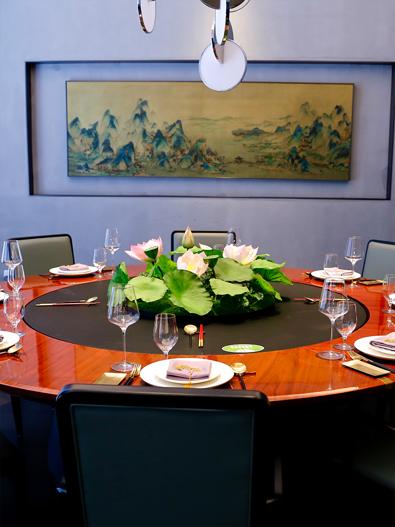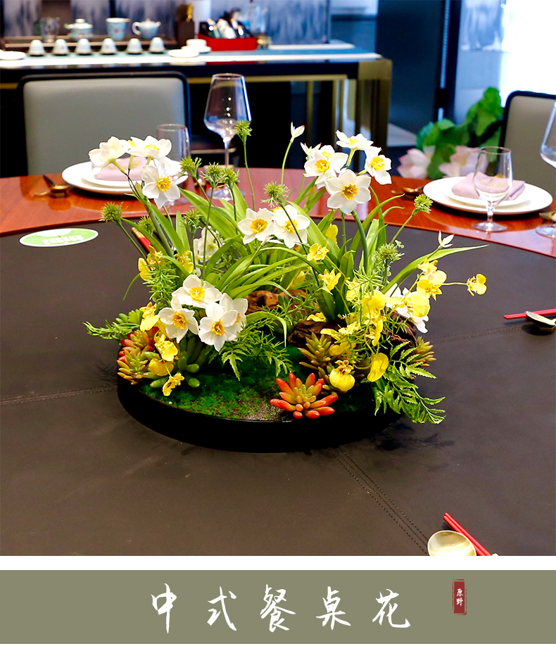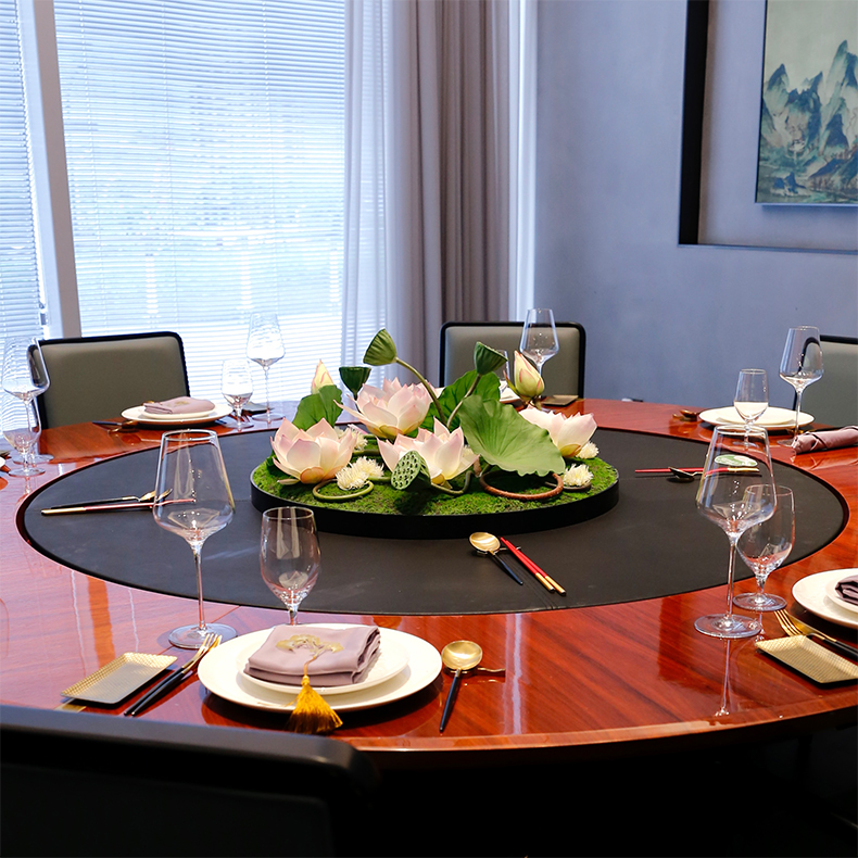 酒店圆桌中间高档摆花新中式荷花餐桌花包厢仿真花艺摆件高端假花