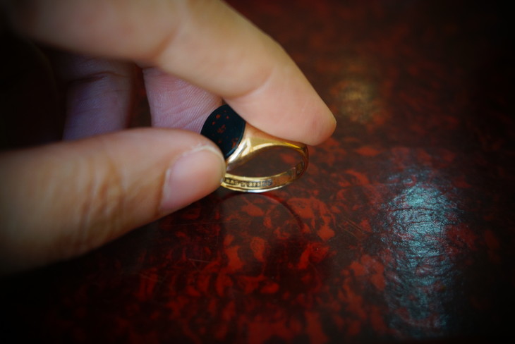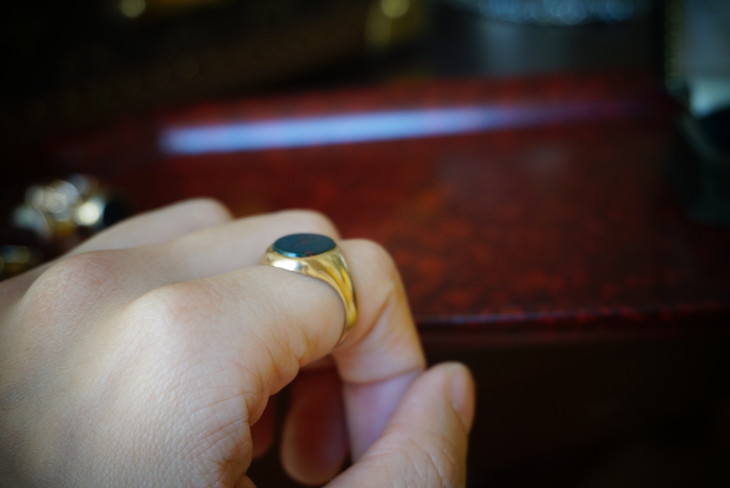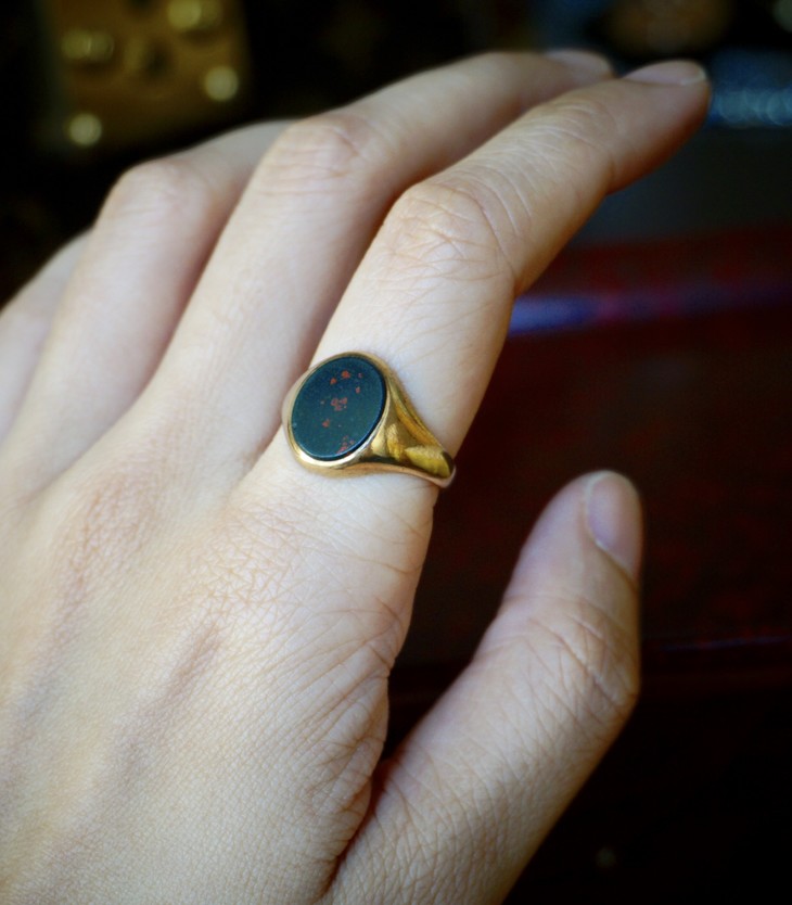 英国古董9K金血玉髓戒面火漆印章绅士戒指○frantiques英国古董