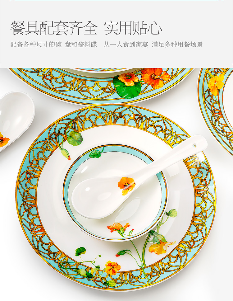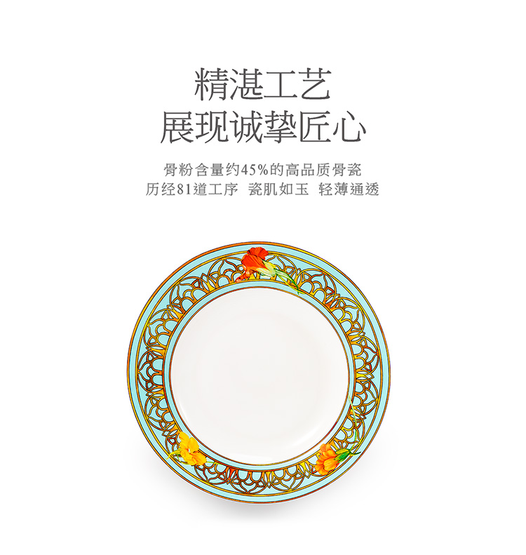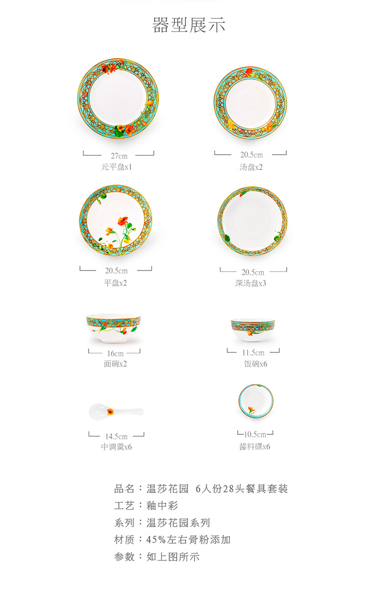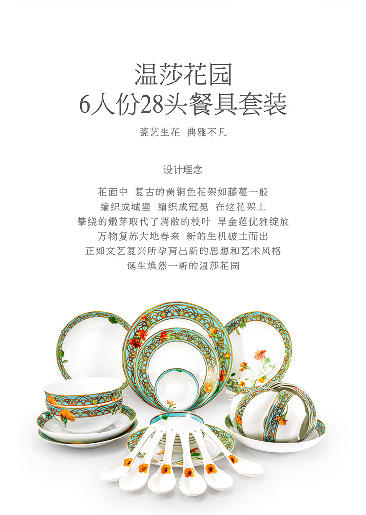 【6F】玛戈隆特 6人骨瓷餐具套装碗碟套装 轻奢欧式家用碗盘碟 礼盒礼品包装 28头温莎花园