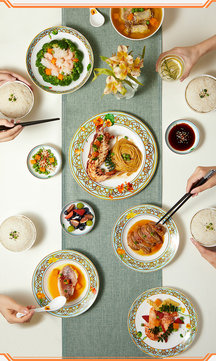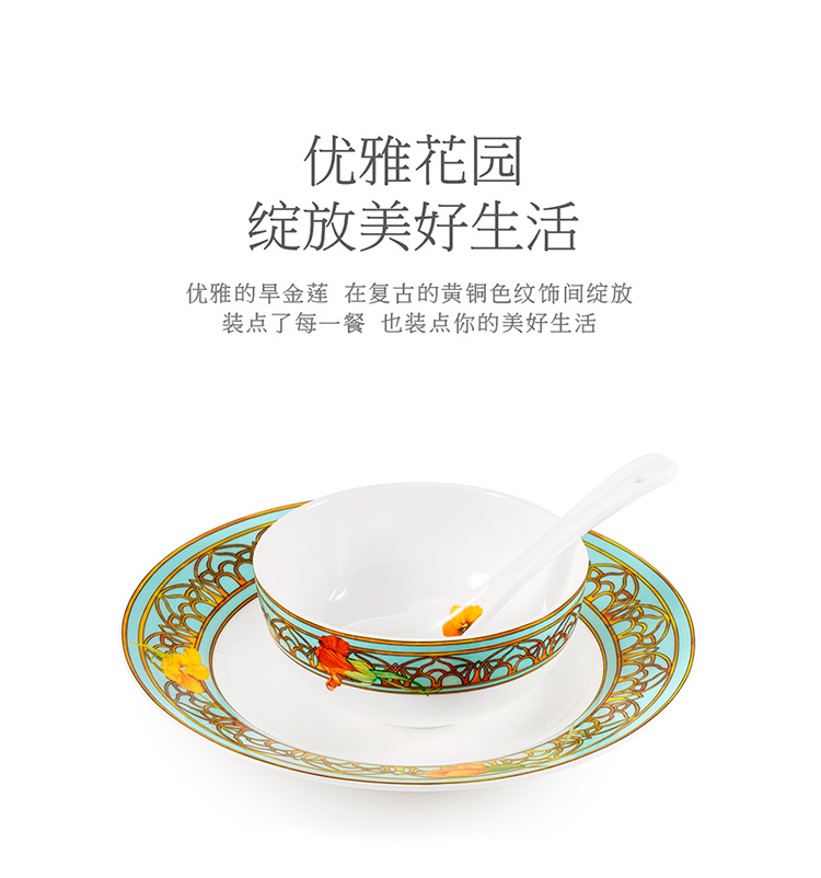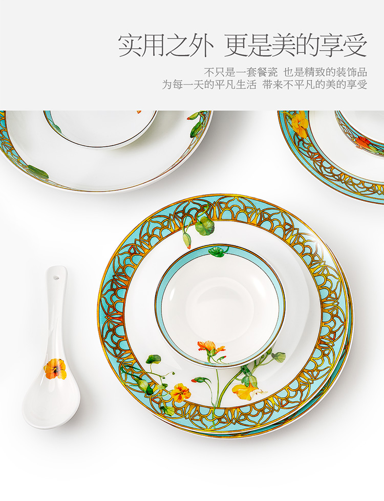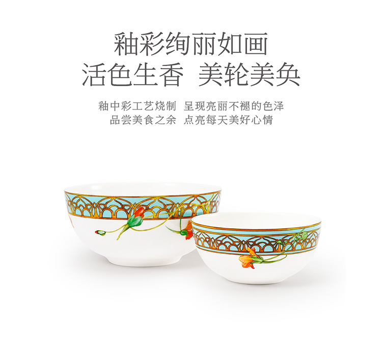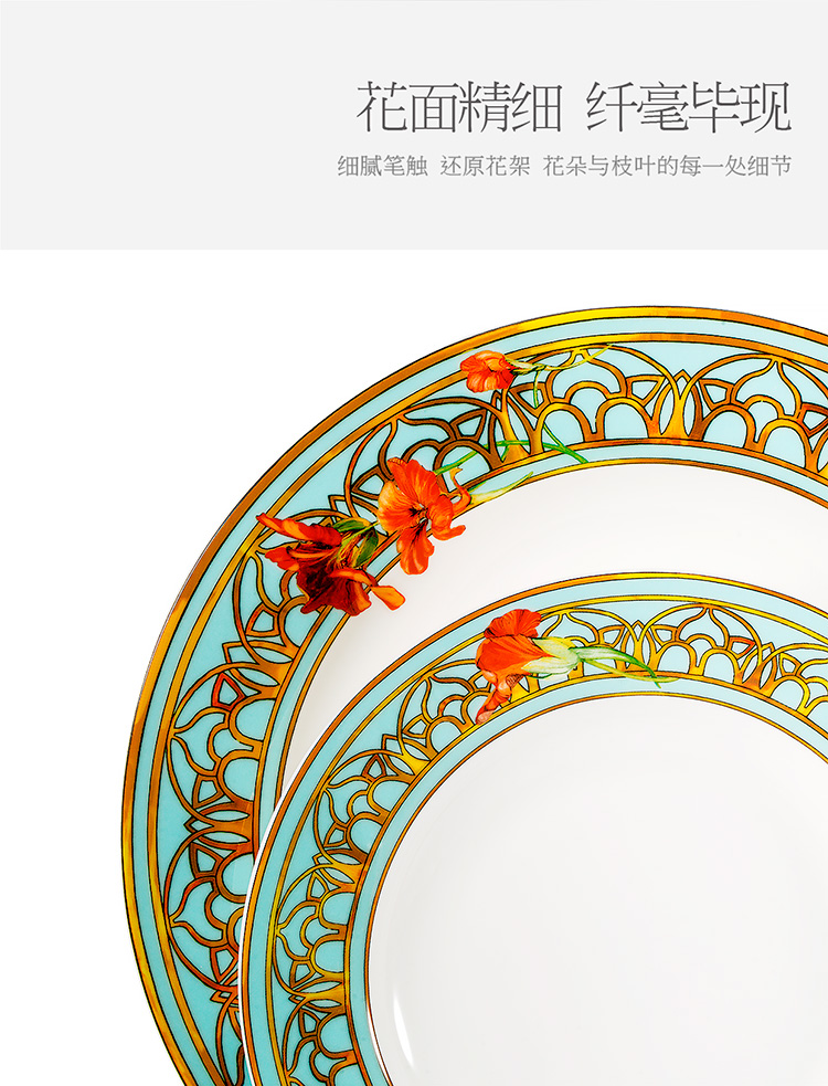 【6F】玛戈隆特 6人骨瓷餐具套装碗碟套装 轻奢欧式家用碗盘碟 礼盒礼品包装 28头温莎花园