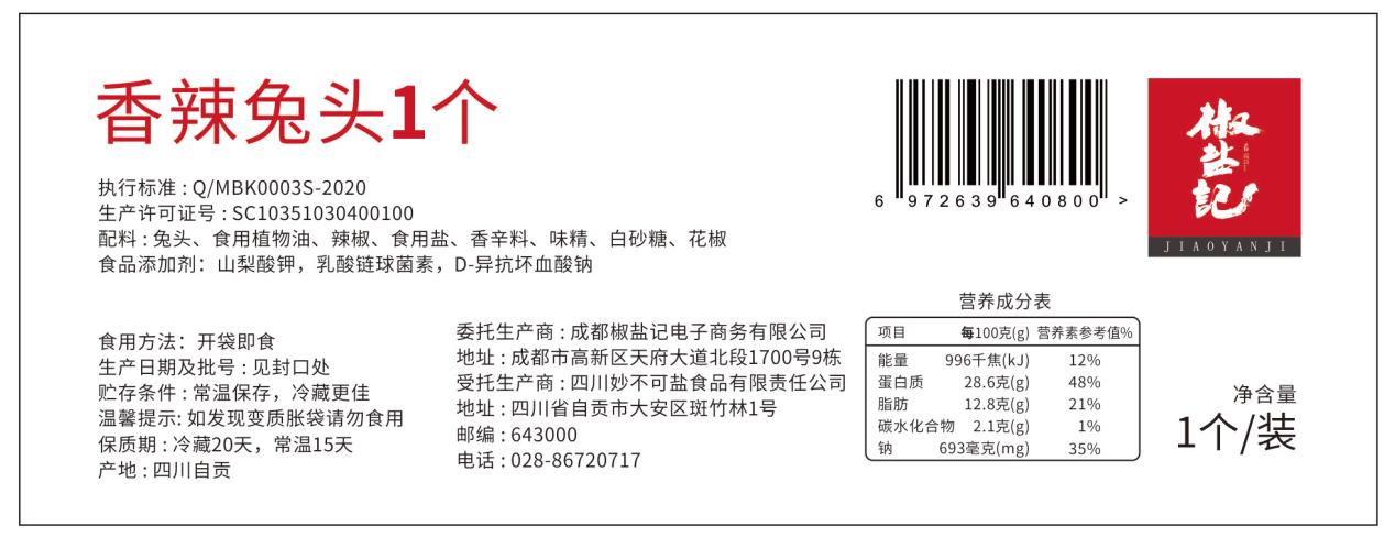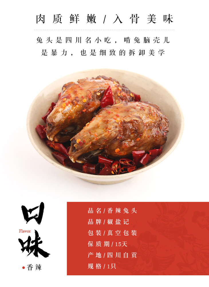 99选7[香辣兔头]肉质鲜嫩 入骨美味 1只/袋(100-110g)