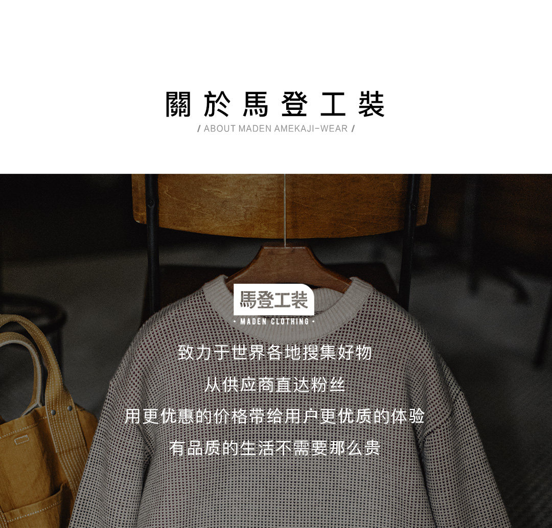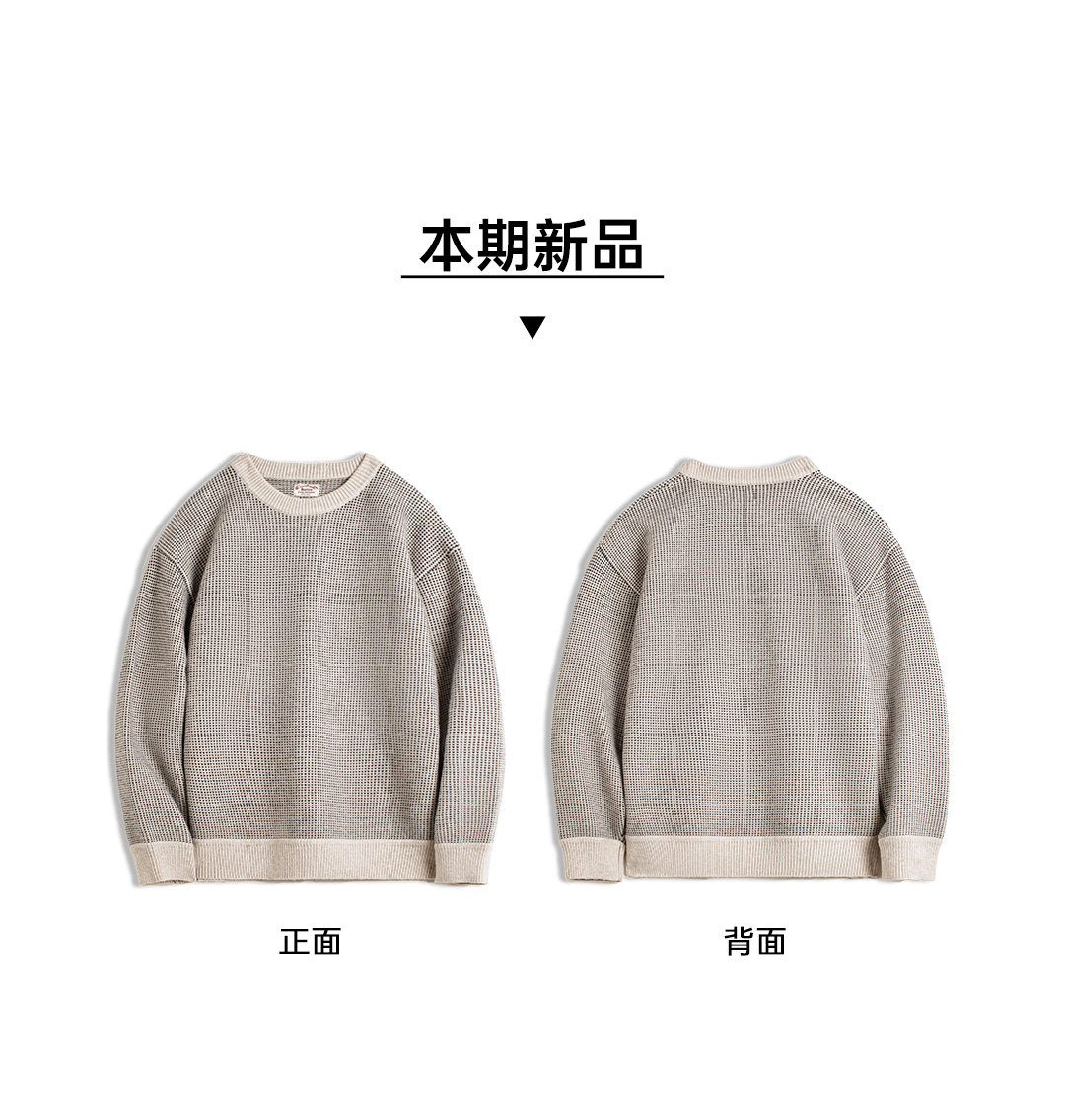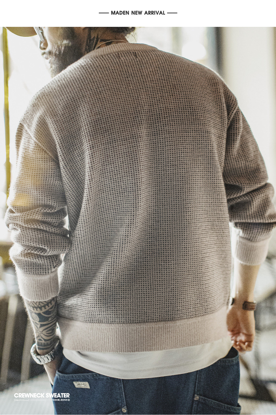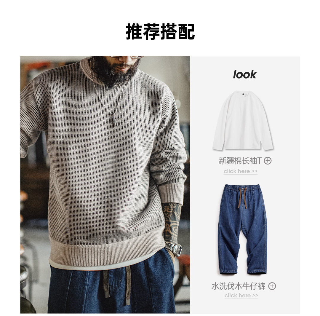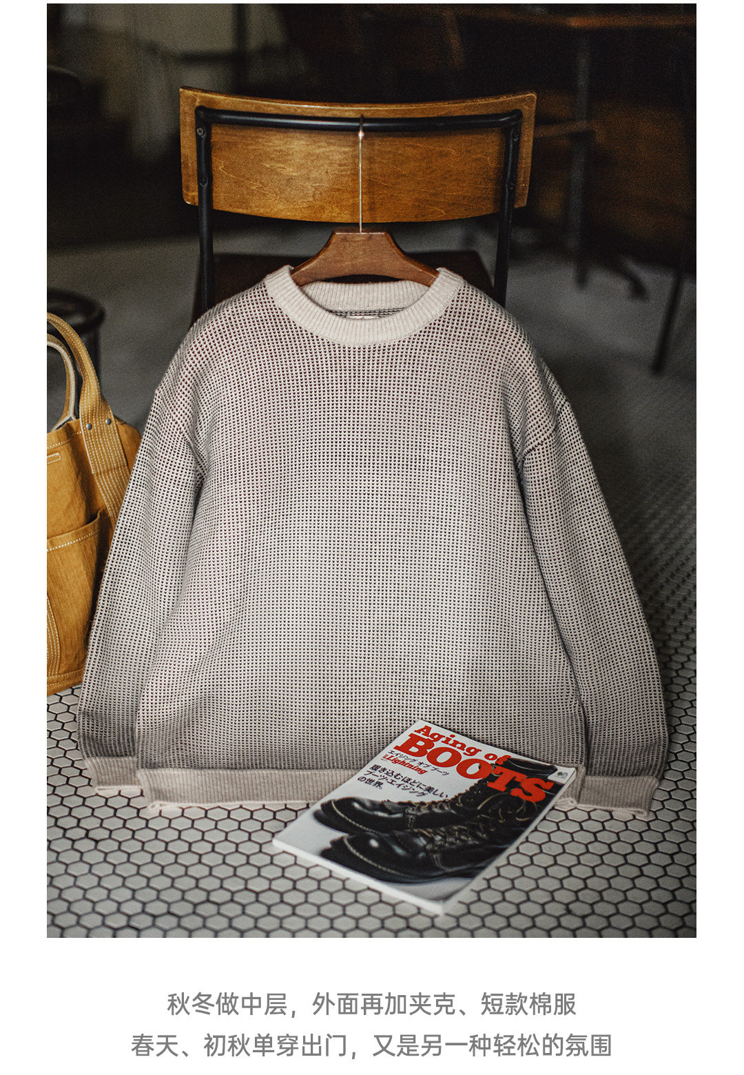 马登工装美式老钱风灰色圆领毛衣套头宽松垂感针织衫保暖外套男春