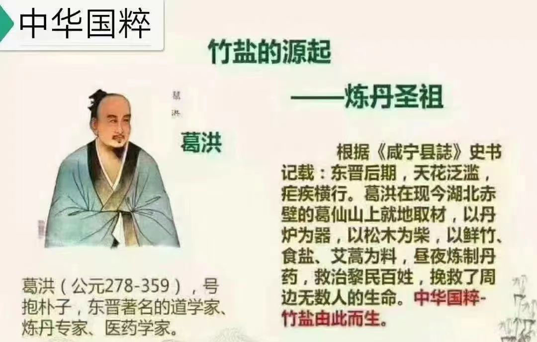 竹盐,起源于道家葛洪的五行丹,故而与普通盐在性味上有区别。