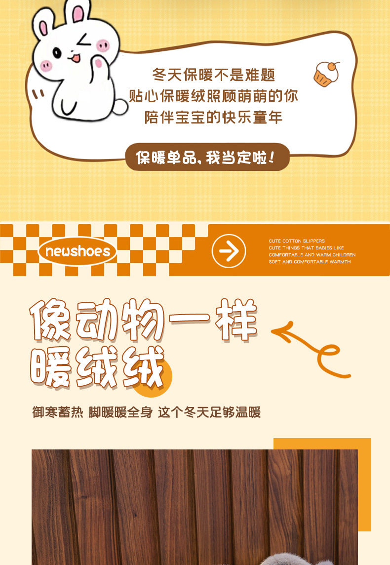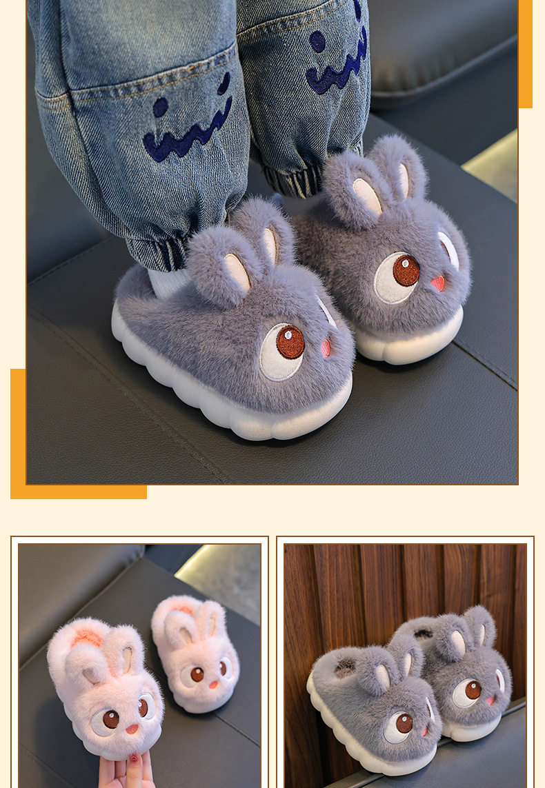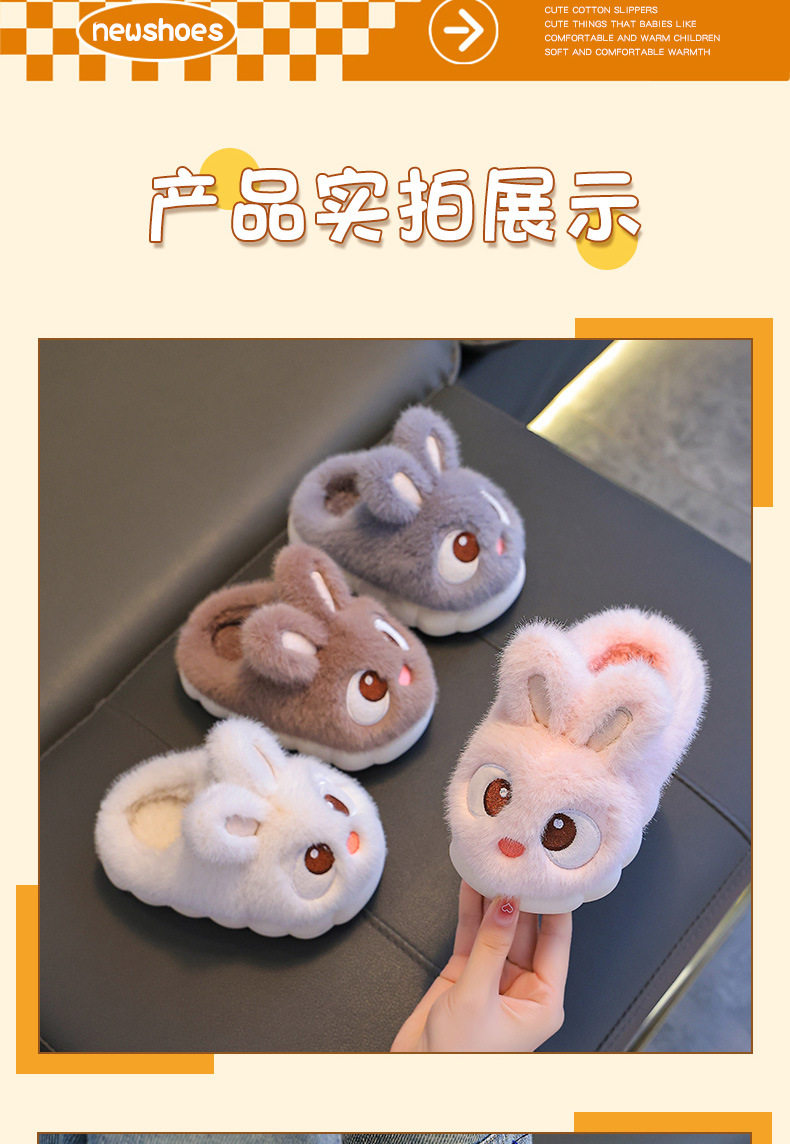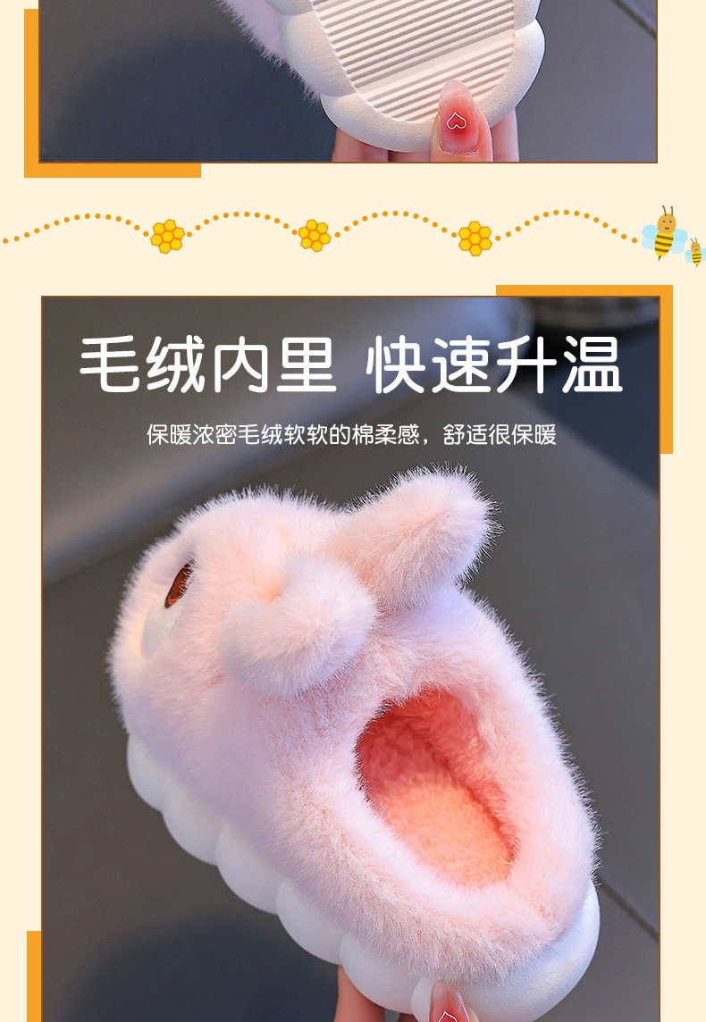 儿童棉拖鞋冬女童可爱兔子保暖加绒毛毛中小童男童防滑宝宝居家鞋