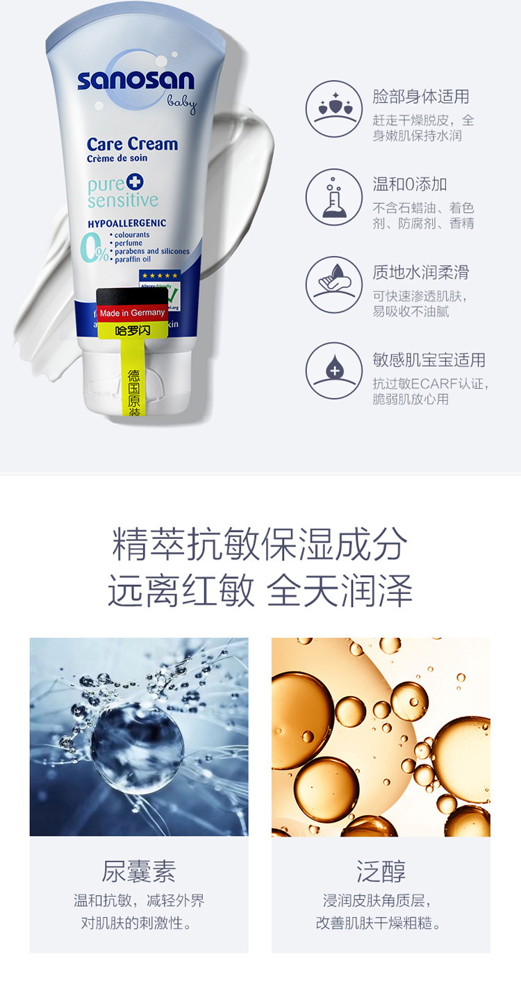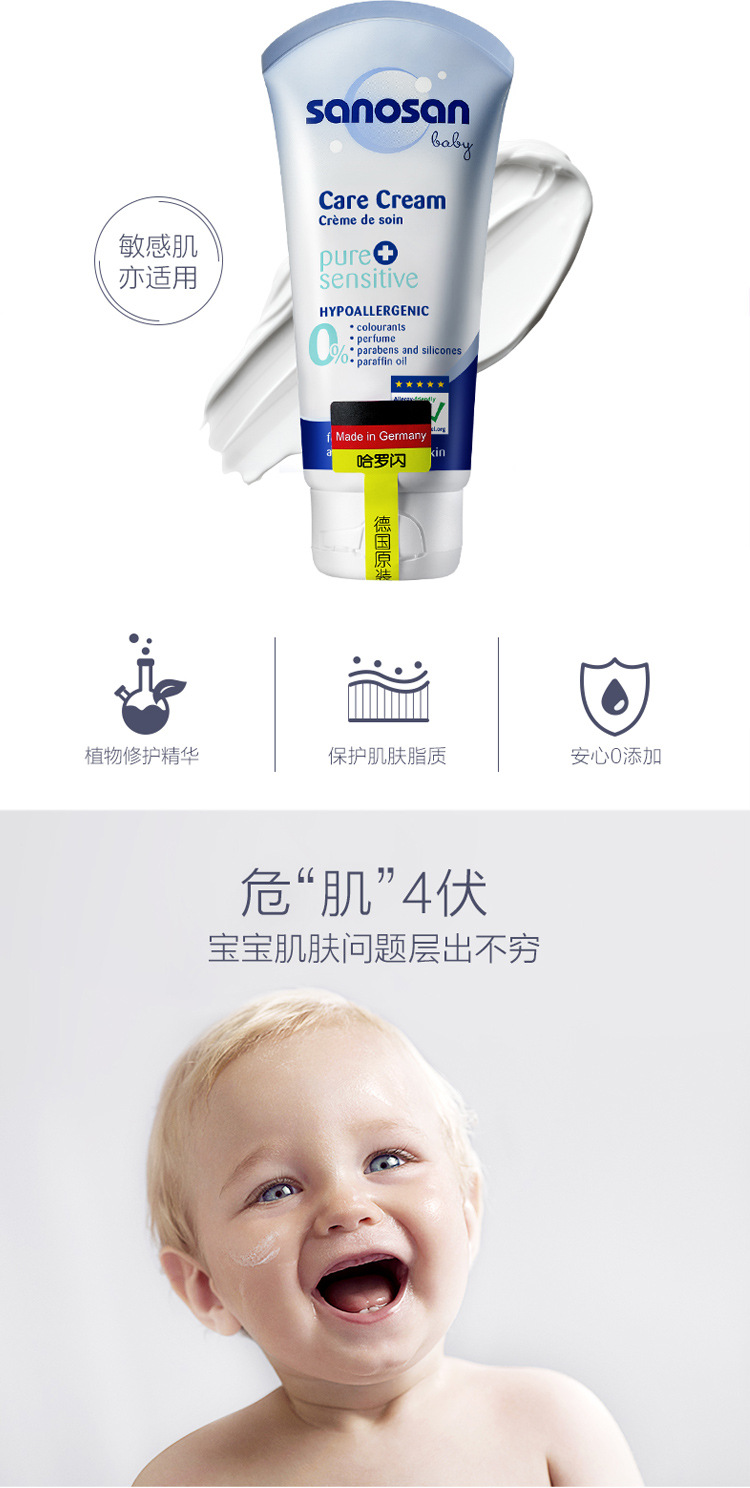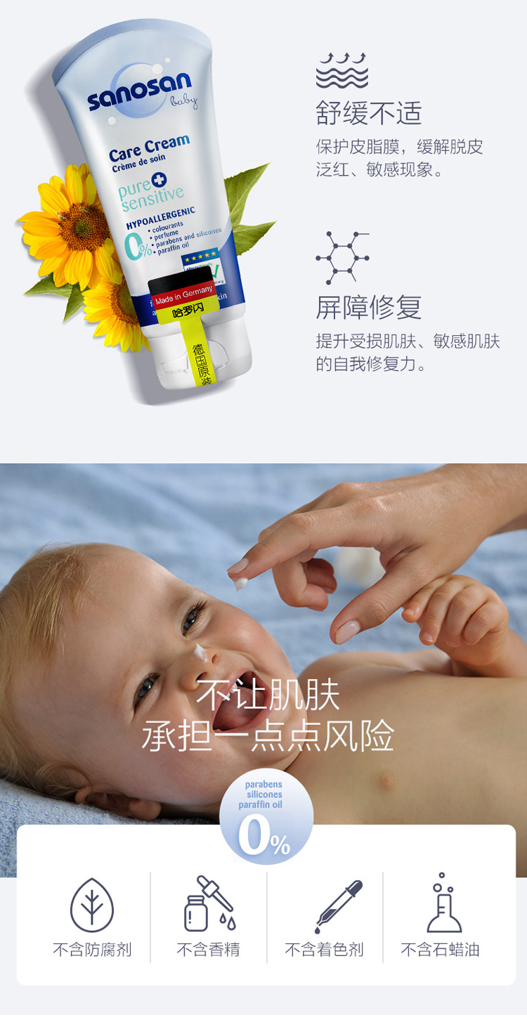【专柜版】德国进口哈罗闪sanosan婴儿温和护肤霜润肤霜儿童面霜保湿滋润75ml