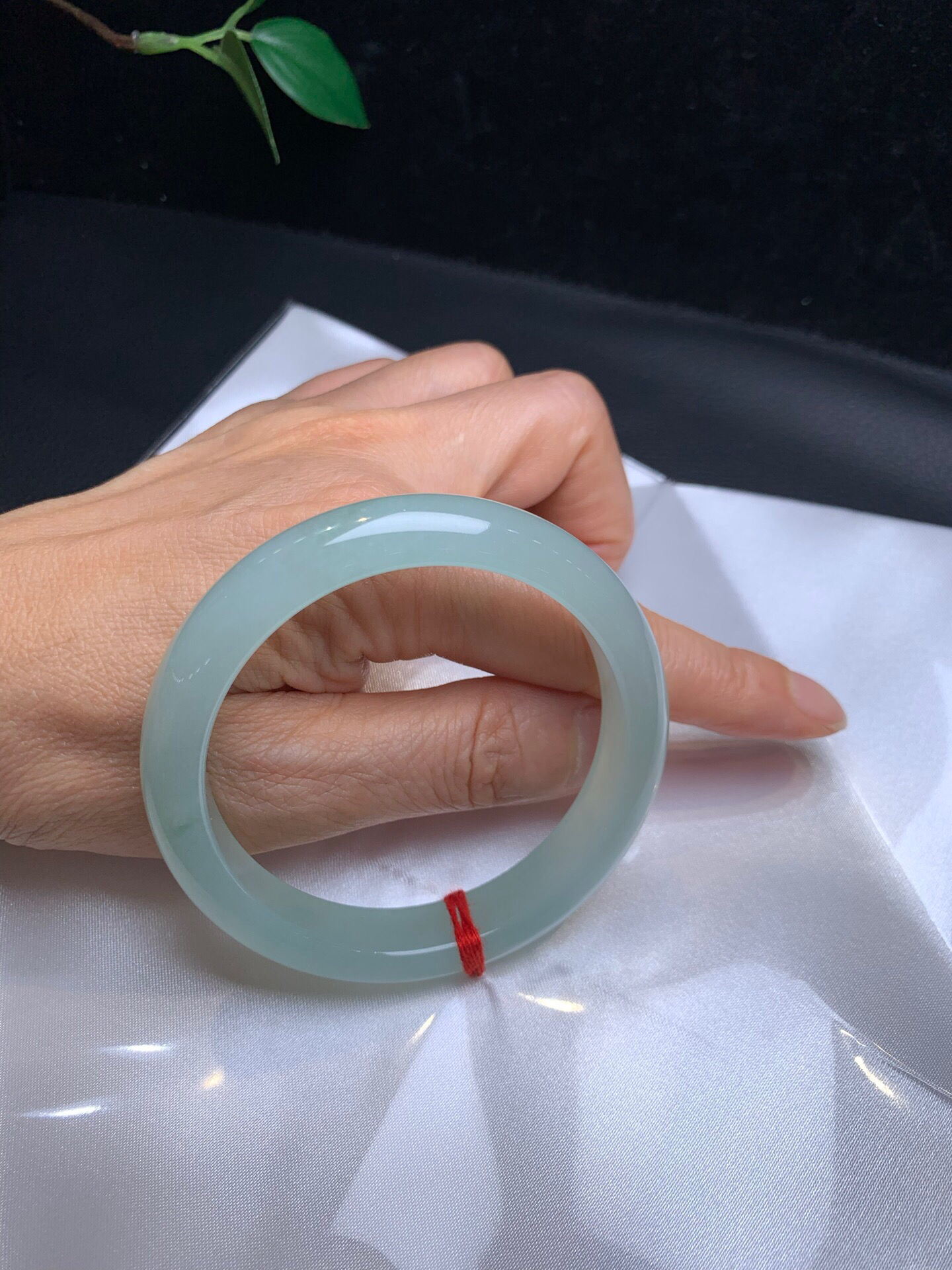 620739,54.5冰晴细条正圈,9.6-7.8mm 整条冰冰的,纯净干净,一截略带晴底色,秀气完美