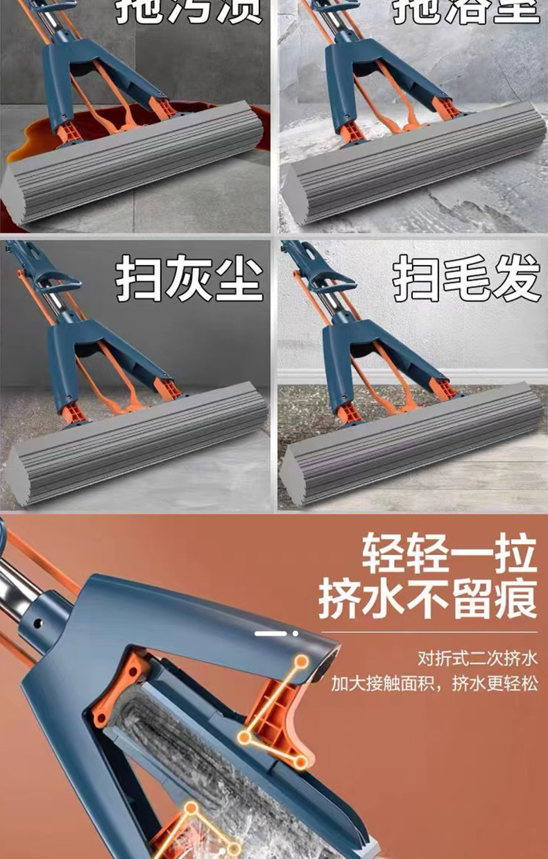 【懒人神器!免手洗海绵拖把】拖地不弯腰,轻轻一拉 挤水不留痕!强吸水家用大号一拖净拖布对折式胶棉拖把墩布春节过年大扫除