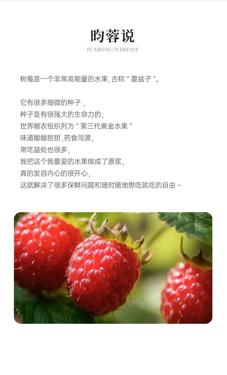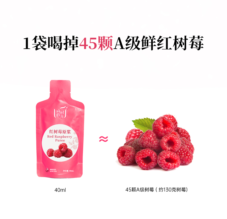 【昀蓉时光 · 单盒 · 红树莓原浆】气色嘭嘭·1袋喝掉45颗A 级鲜红树莓果.100%树莓原浆.0香精色素.营养丰富,原汁原味.酸甜爽口(40ml*7 袋/盒)