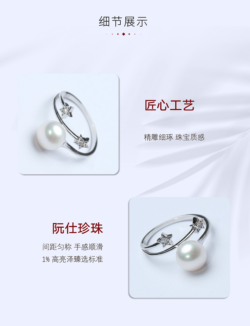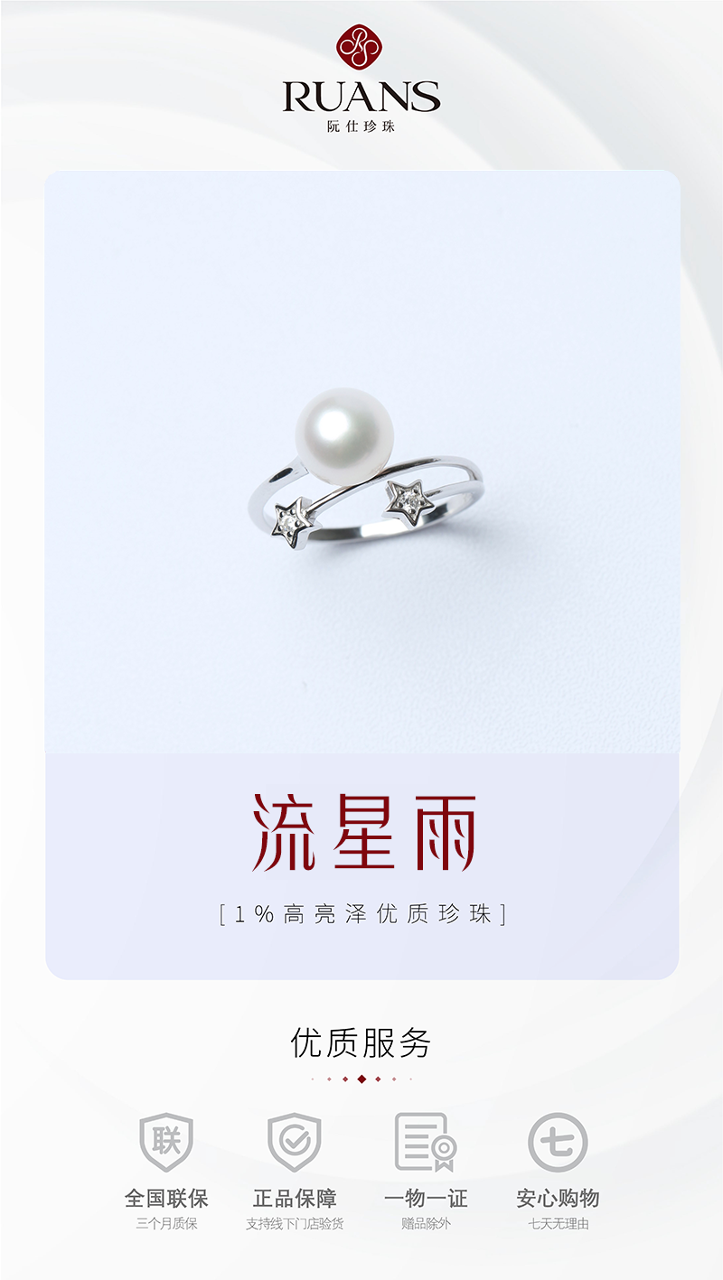 阮仕流星雨系列 S925银淡水珍珠戒指 7.5-8mm RS1940LXY-1D