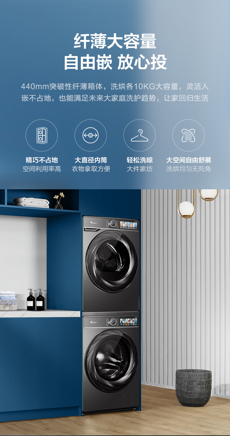 小天鹅本色洗烘套装之洗衣机小天鹅滚筒洗衣机TG100PM16T+TH100PH16WT