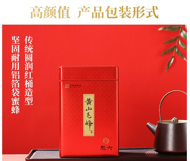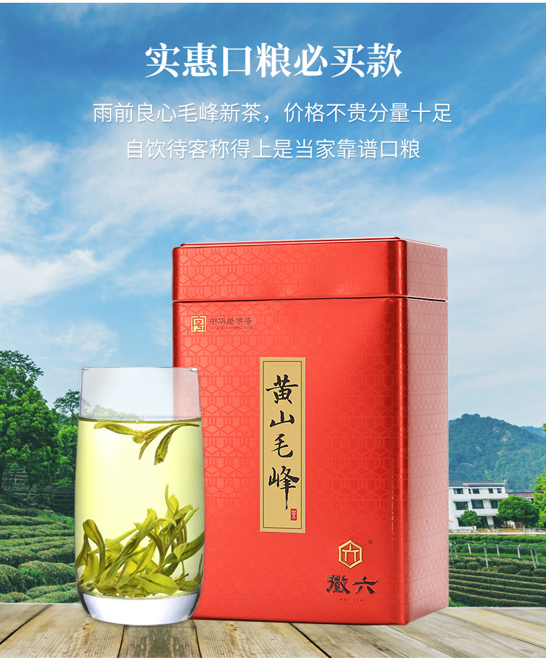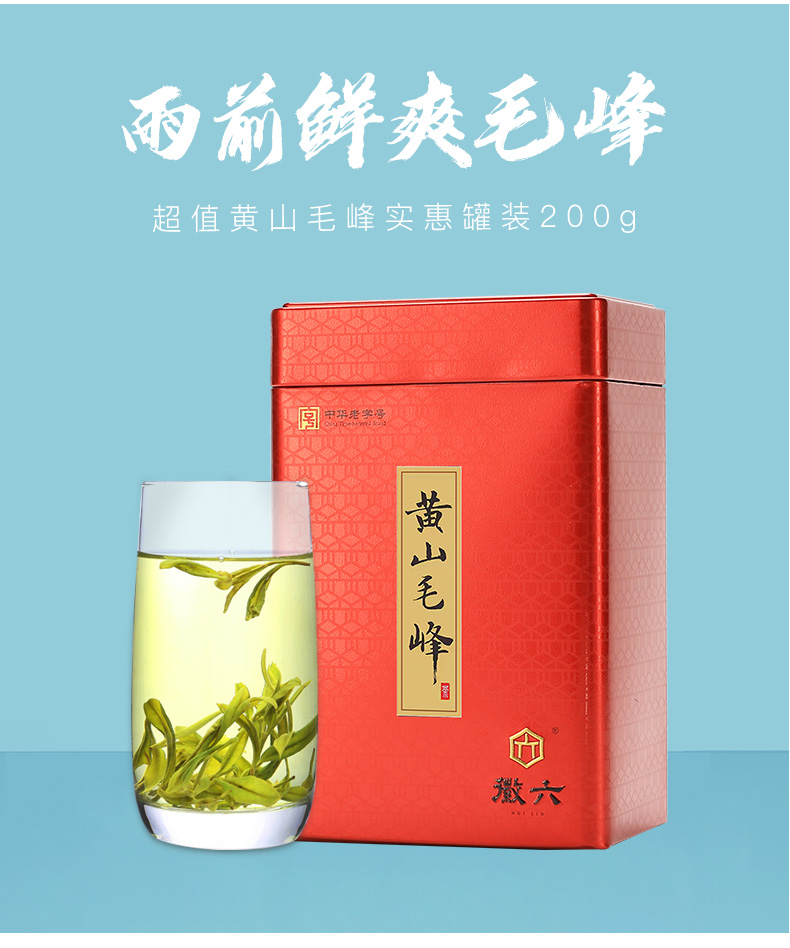 徽六黄山毛峰2025新茶雨前绿茶茶叶宜红系列口粮茶200g桶装