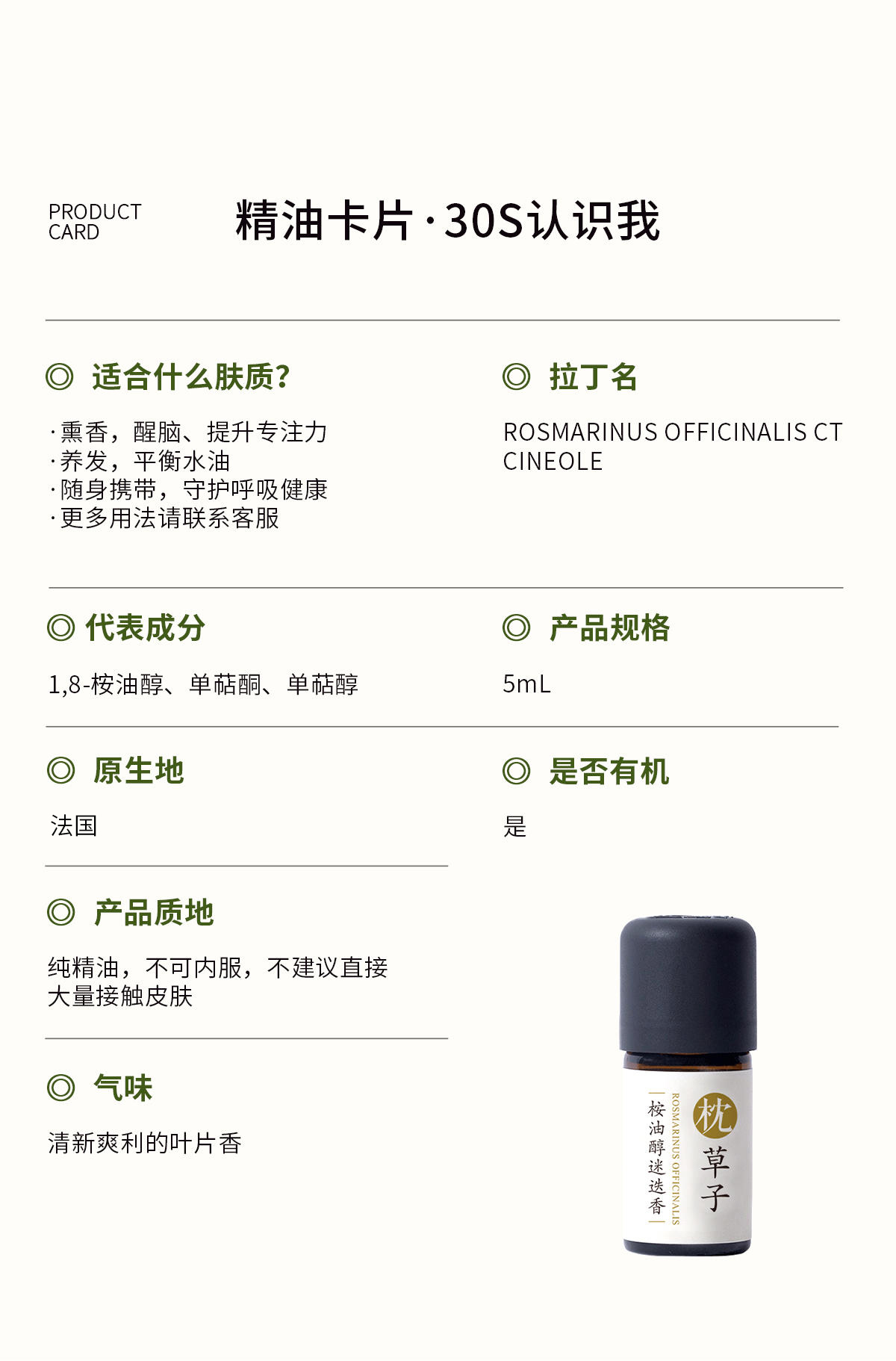 枕草子法国【桉油醇迷迭香】精油| 欧盟you机认证 鼻腔不适 呼吸化痰 头皮健康护发养发 脑力工作者 记忆香草(26年11月到期)