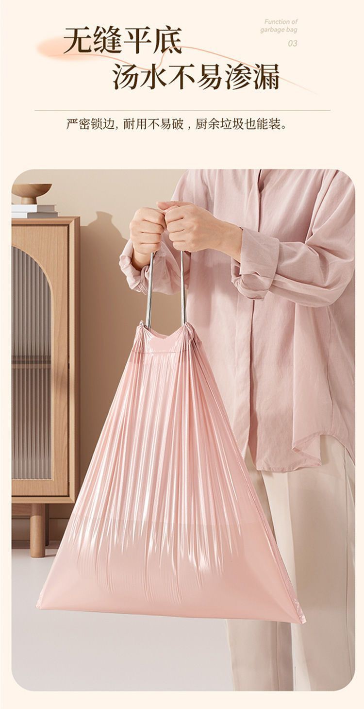 抽绳垃圾袋冰莓粉抽绳式垃圾袋家用加厚手提式垃圾袋厨房手提式