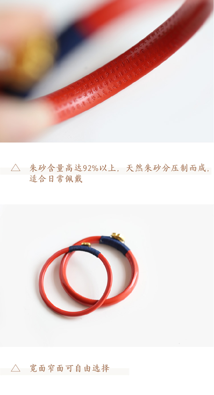 米马生活 不含足金高含量朱砂手镯内刻心经 洪福在手 趋吉避凶