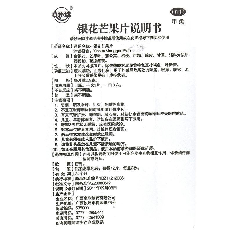 真还珠银花芒果片24片/盒 疏风清热止咳化痰咽痛咳嗽上呼吸道感染