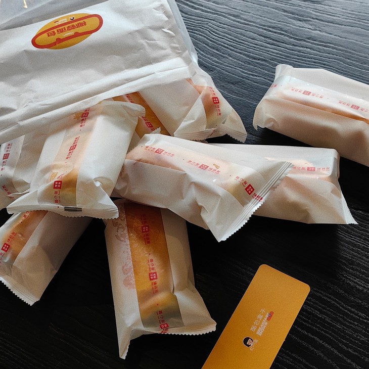 面包是简装的,50g小小只,一包10个,看起来和楼下社区小面包店的长很像,但味道相当可以,是接地气的扎实口感,表皮焦香,内馅香甜,配上香浓的咖啡,绝对能在清晨中唤醒昏昏欲睡的你!而且是现做现发,蛮新鲜的,如果能复热一下,黄油微微融化,更是甜蜜暴击!