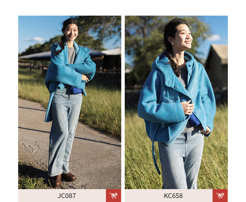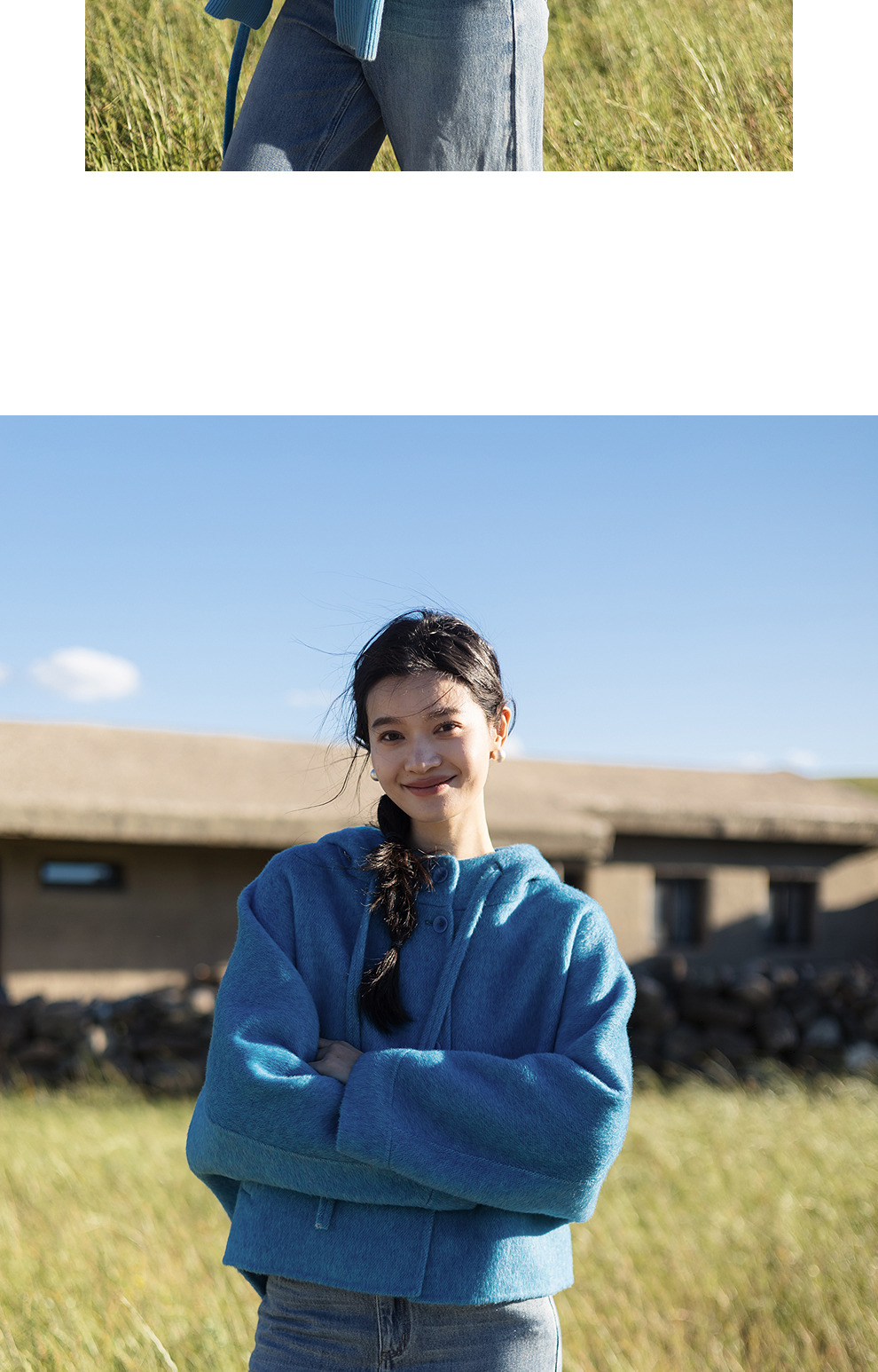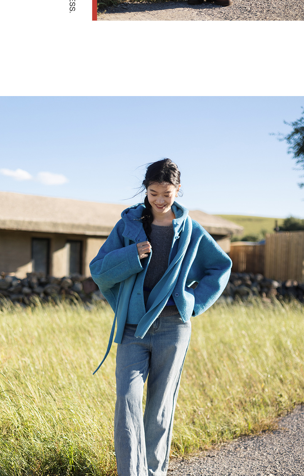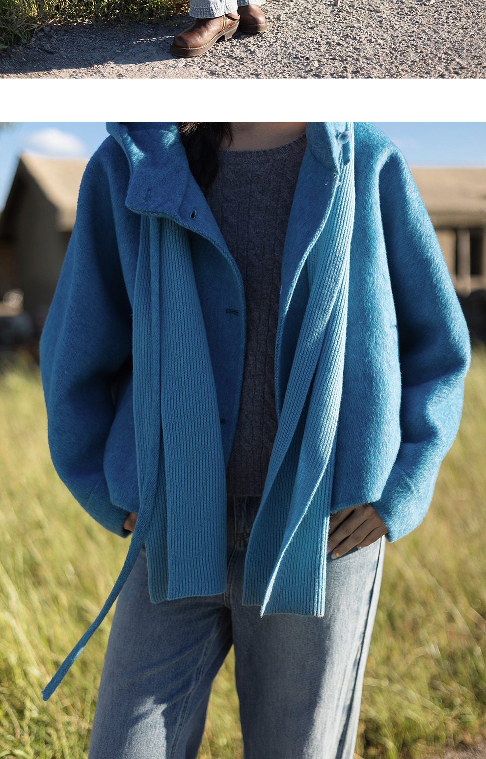 绽放646朵/绵羊毛设计感连身袖带帽短款毛呢外套新款呢大衣女秋冬