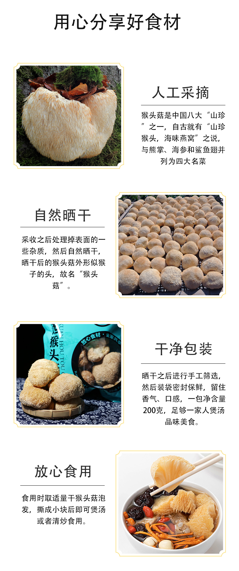 【吉顺号食品】-吉顺号猴头菇 特产深山猴头菌菇猴头蘑干货200g