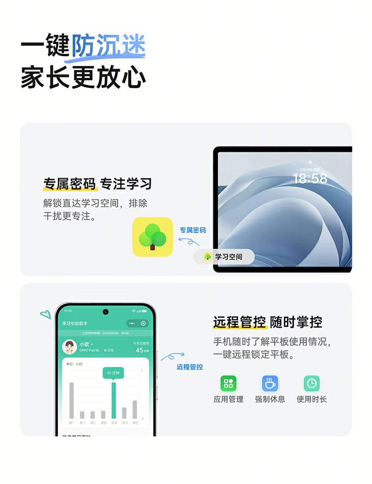 OPPO Pad SE 11英寸护眼柔光屏平板电脑 学生学习影音娱乐追剧办公游戏