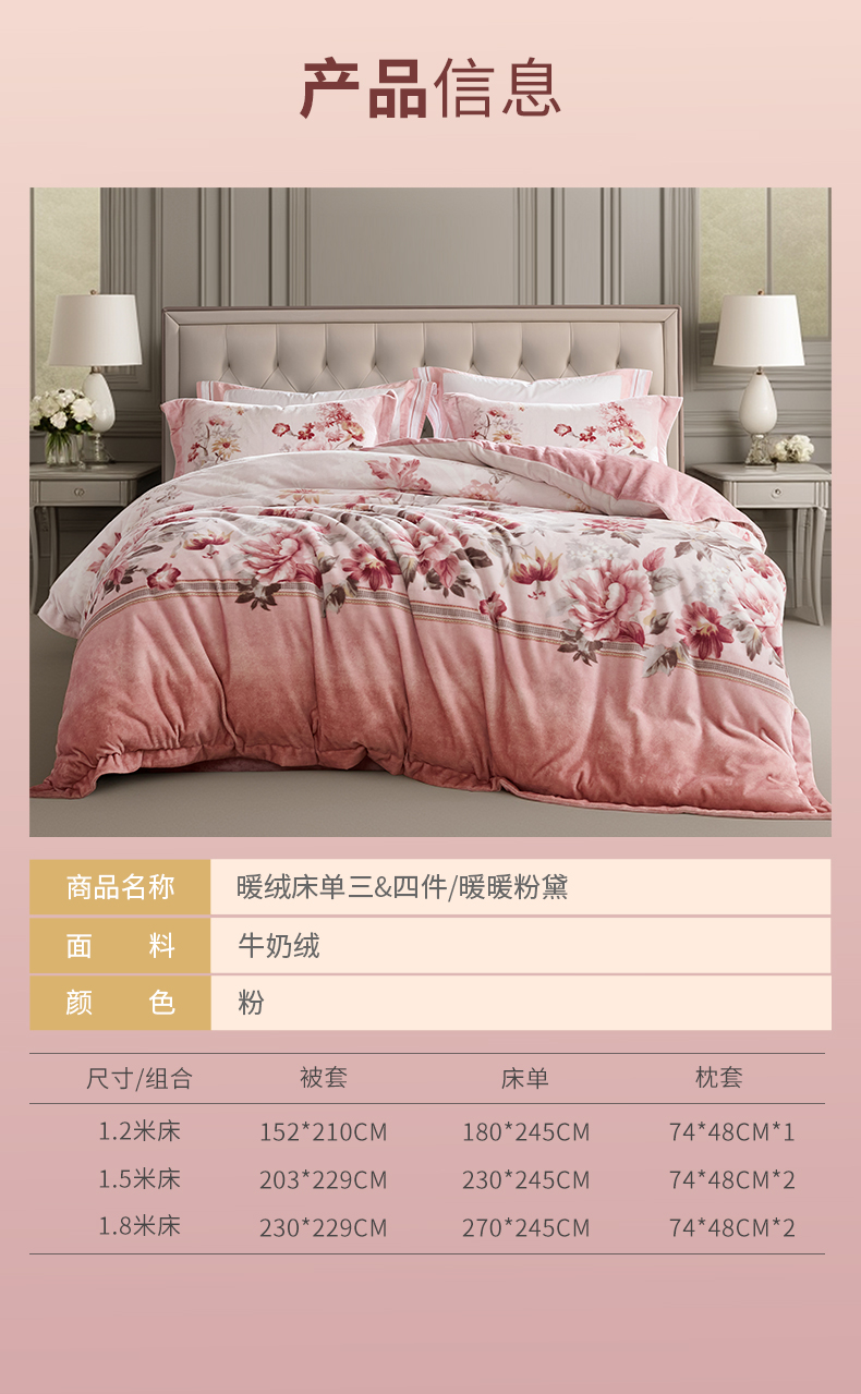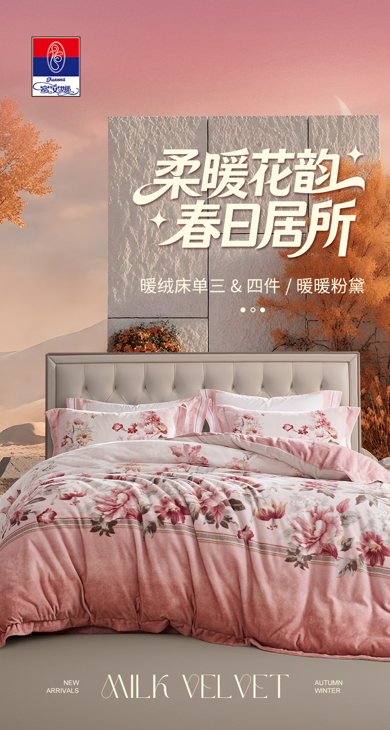 【6楼】富安娜牛奶绒绒床单四件/暖暖粉黛,牌牌价2180~2380,活动价799~899元
