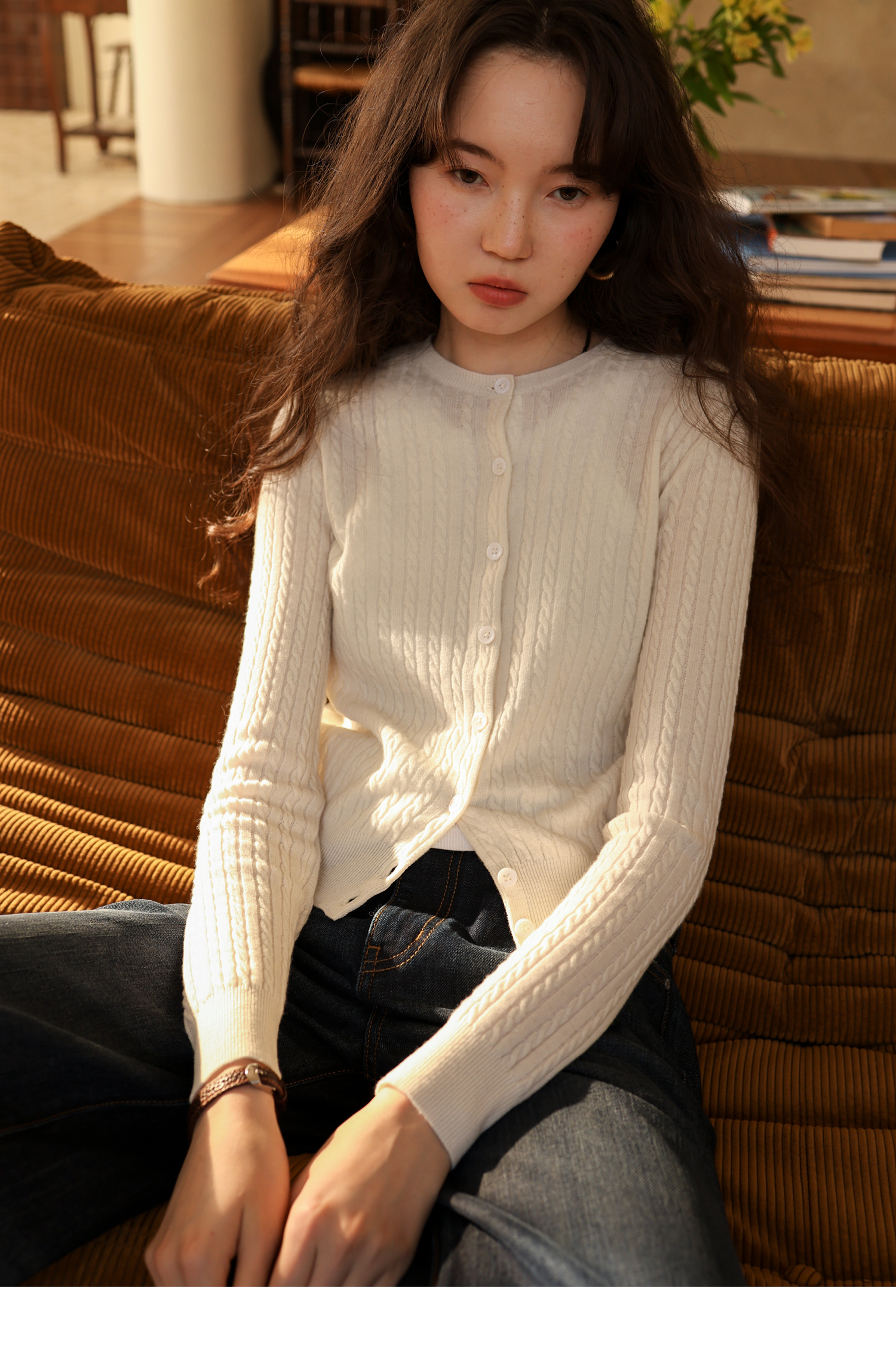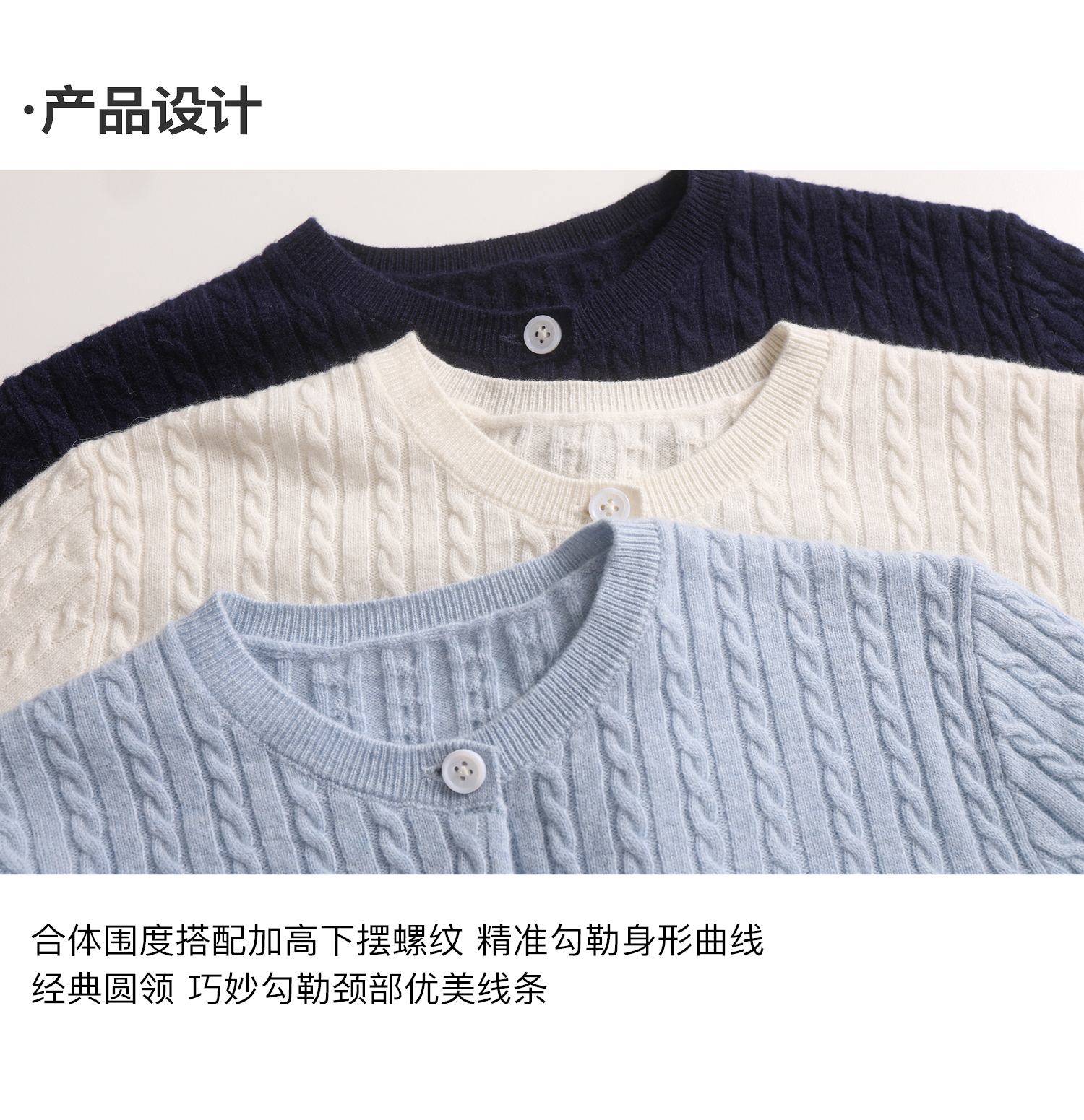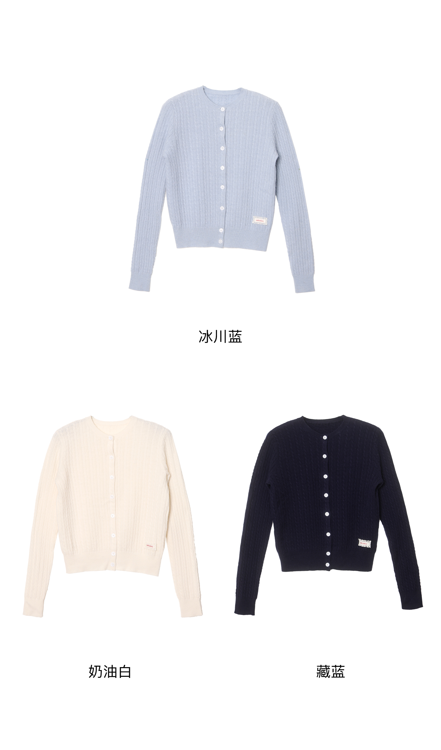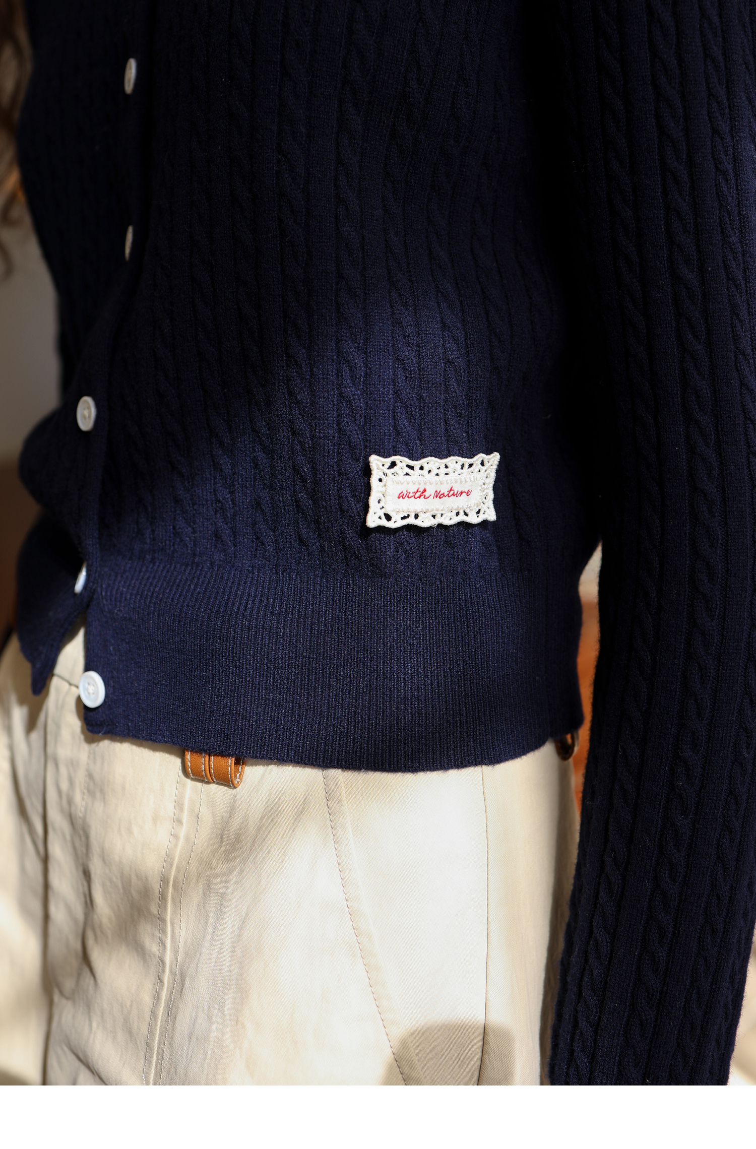 【8/6新品】素舶百搭显瘦小绞花羊毛蕾丝刺绣标针织开衫