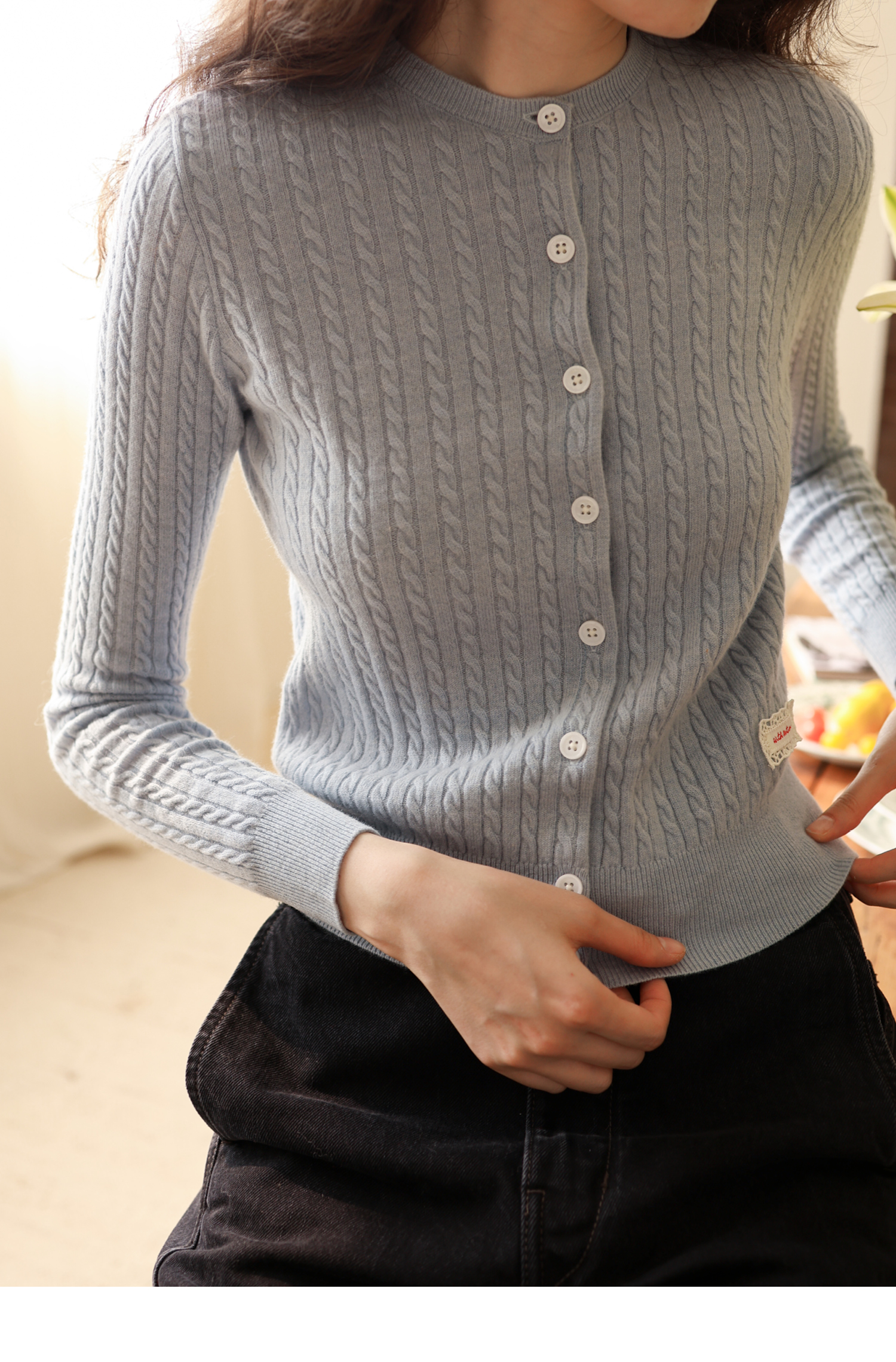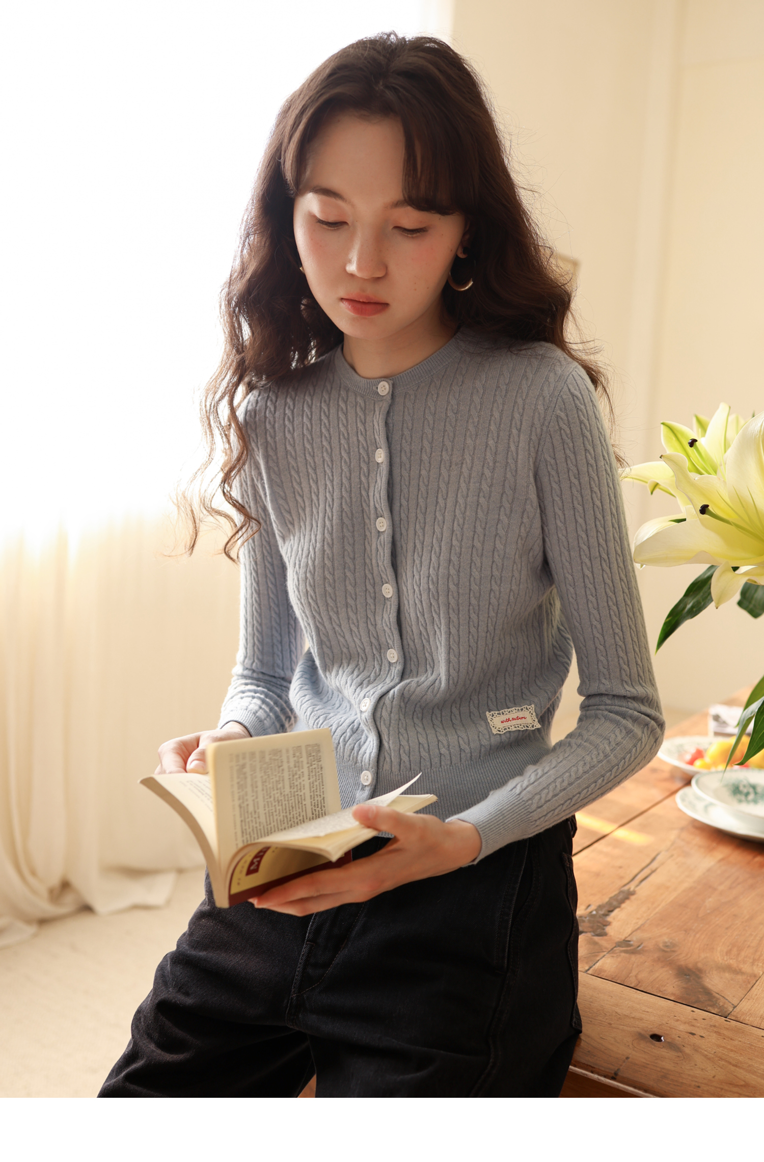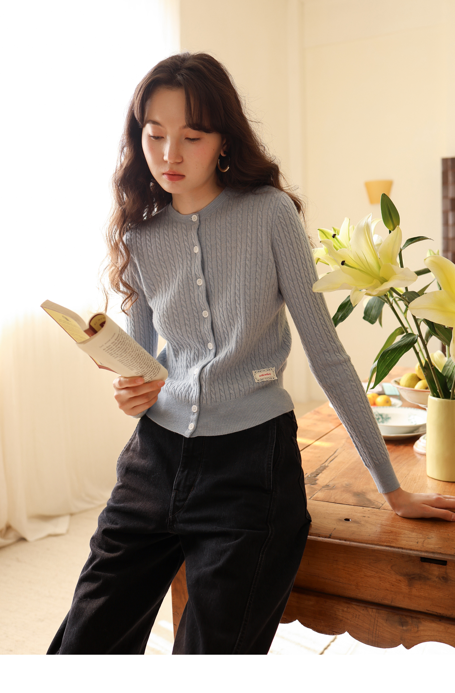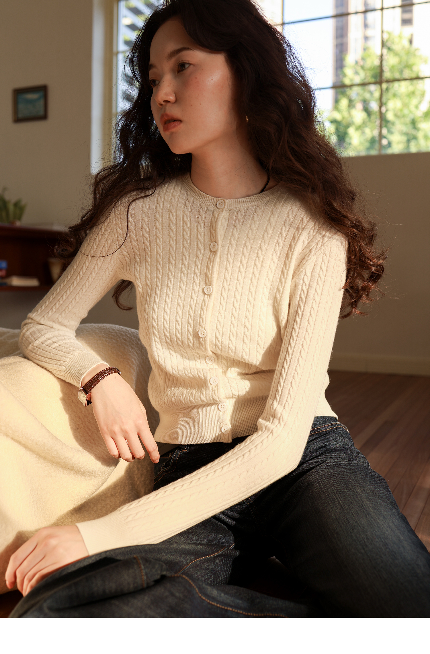 【8/6新品】素舶百搭显瘦小绞花羊毛蕾丝刺绣标针织开衫