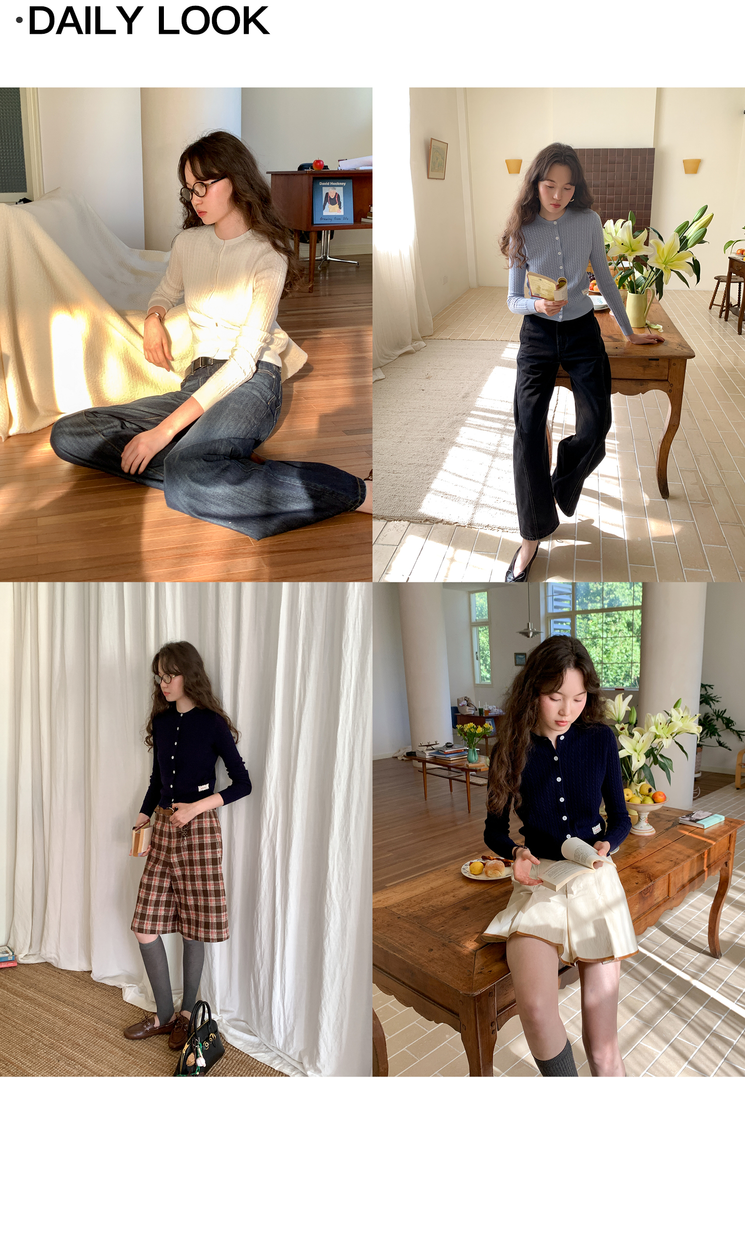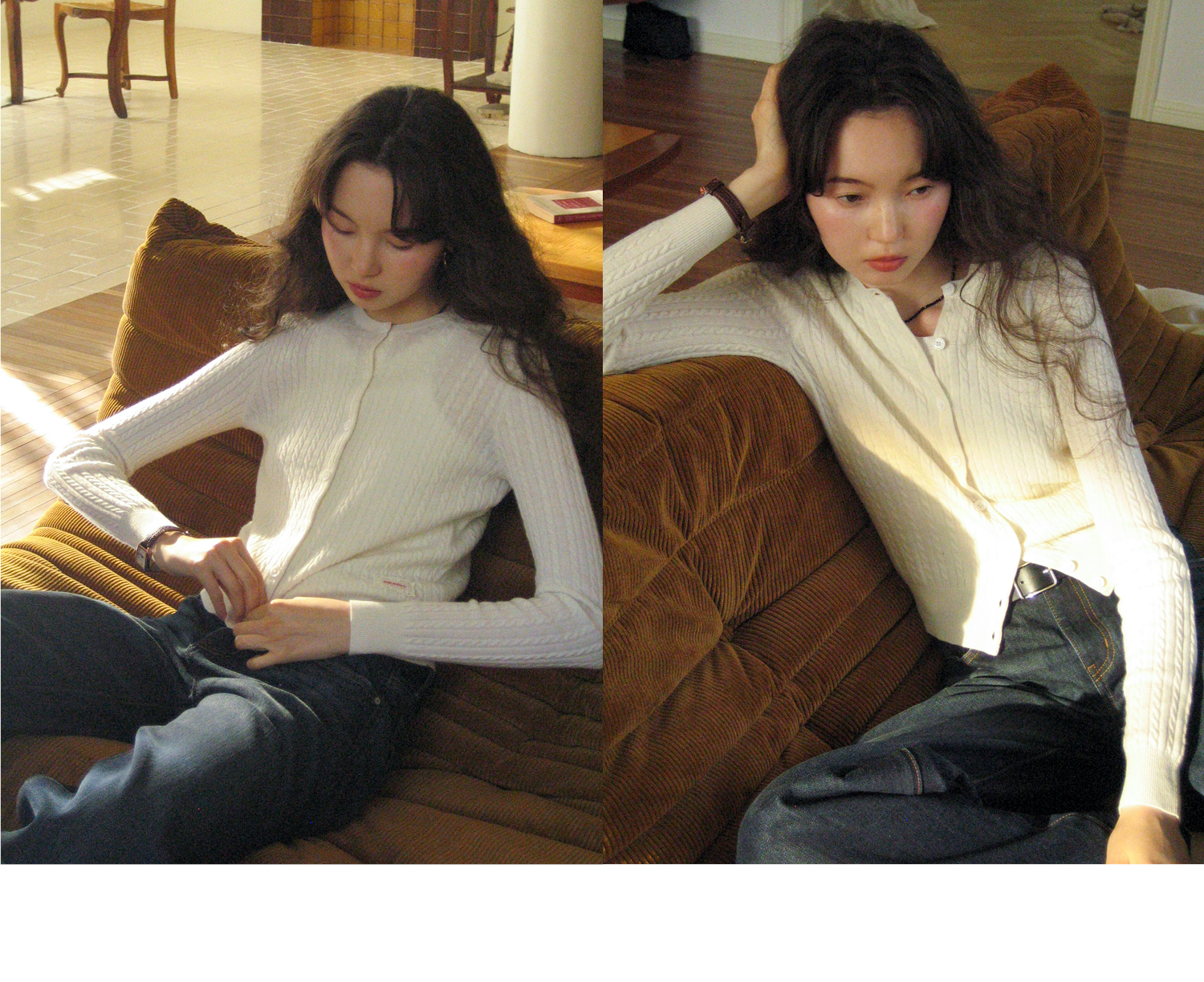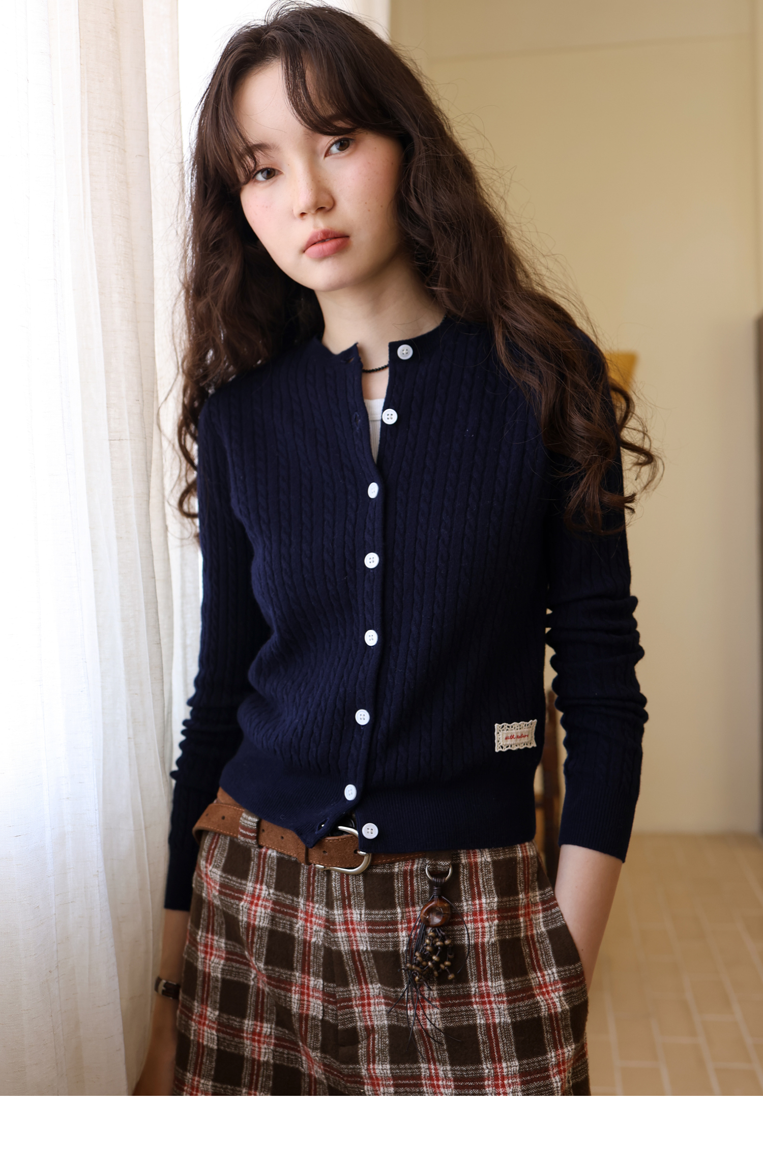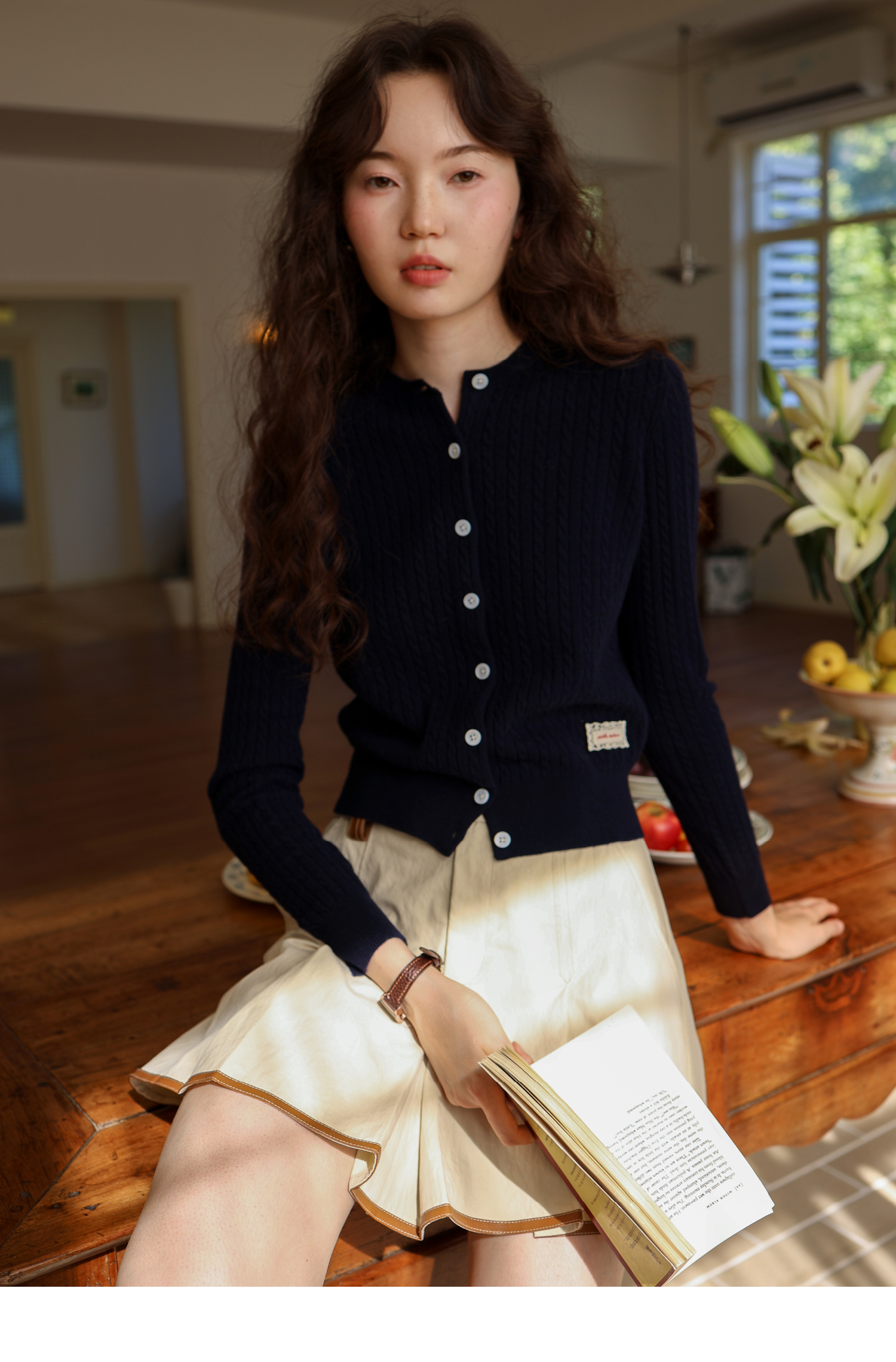 【8/6新品】素舶百搭显瘦小绞花羊毛蕾丝刺绣标针织开衫