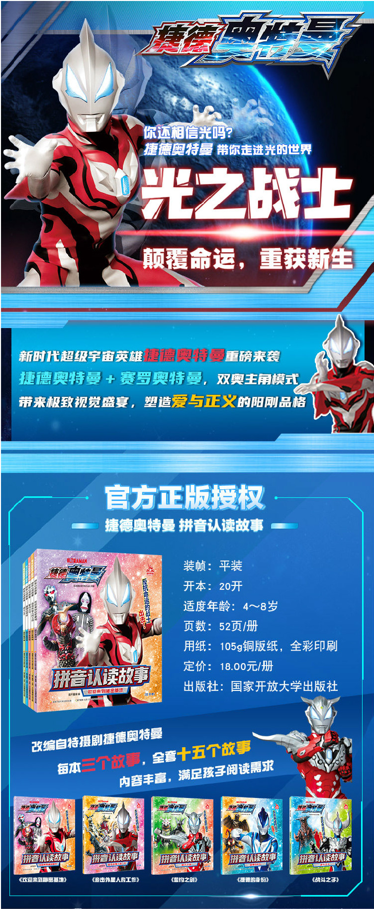 捷德奥特曼拼音认读故事(全套共10册)奥特曼拼音书儿童绘本漫画 学前准备儿童读物 [4-8岁]