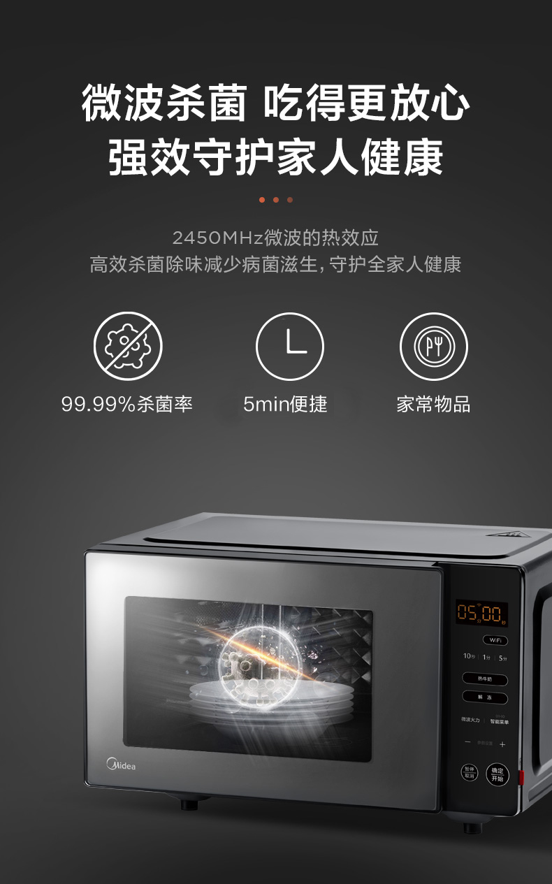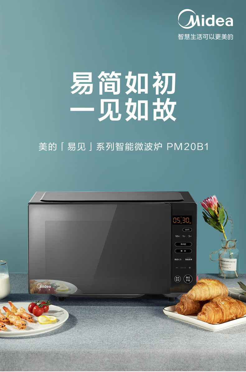美的(Midea)多功能家用微波炉20升 大平板均匀加热 智能解冻 智能菜单 PM20B1