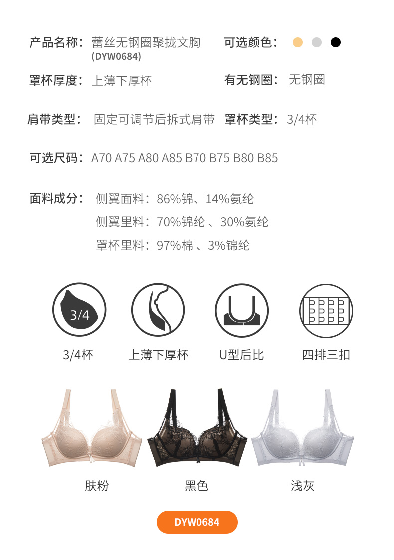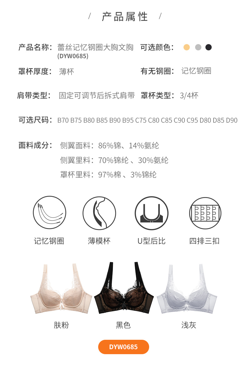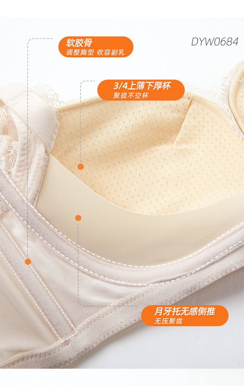 雅黛丽内衣性感蕾丝薄款定型内衣聚拢调整型舒适上托文胸