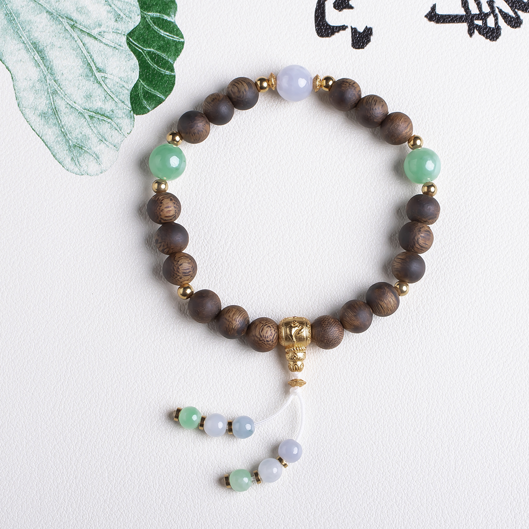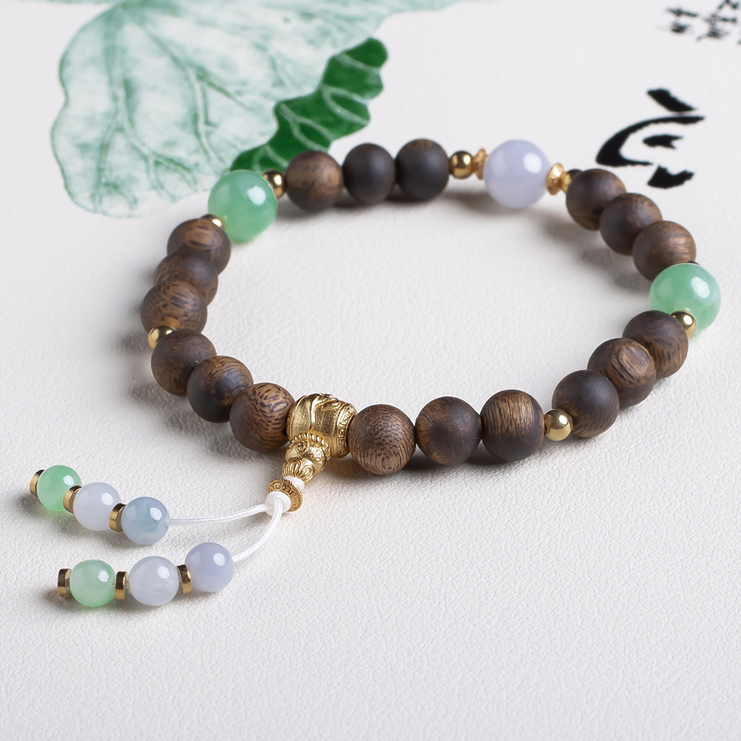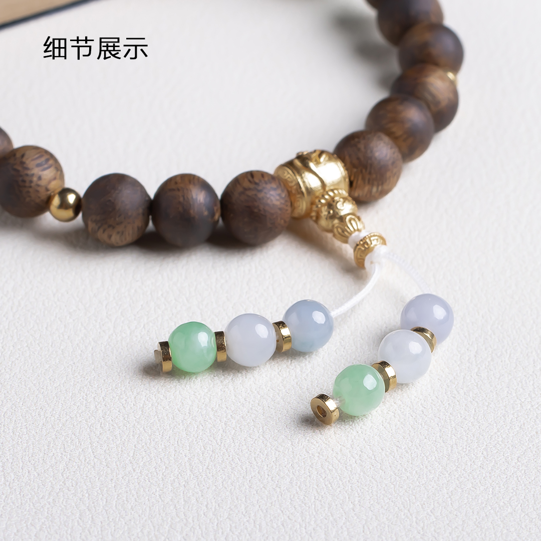 xy0428沉香+翡翠手串.银,天然沉香7.3mm,原色原味,香味自然清甜,国风穿搭,香玉结合,清香安神,玉润养身。