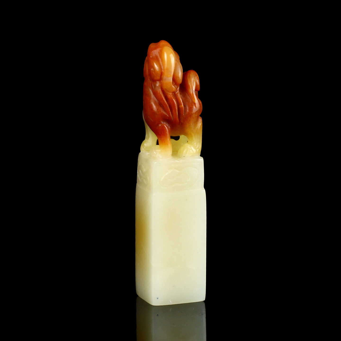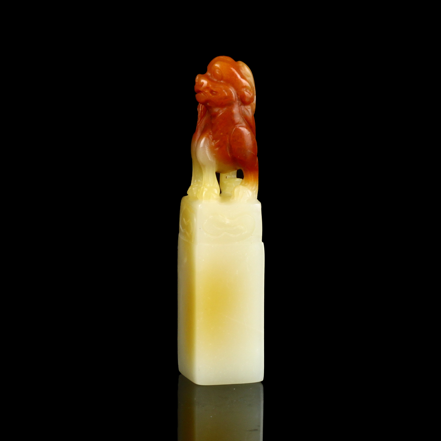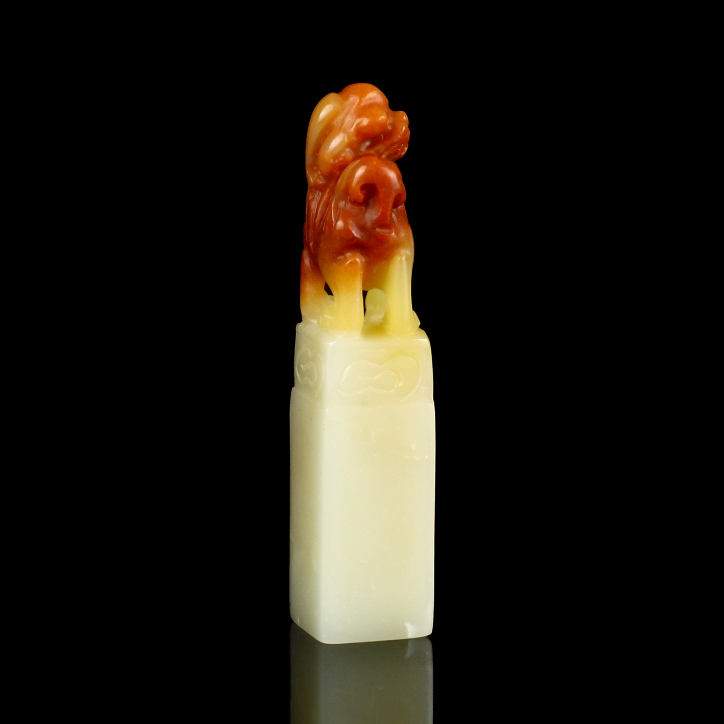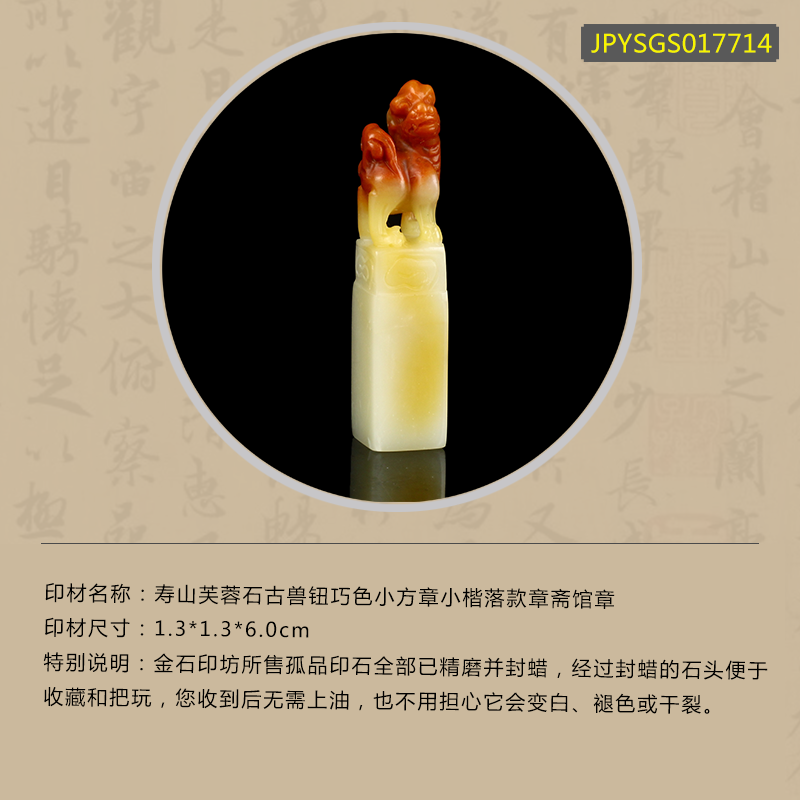 孤品17714寿山芙蓉石古兽钮巧色小方章小楷落款章斋馆章-1.3*1.3*6.0cm