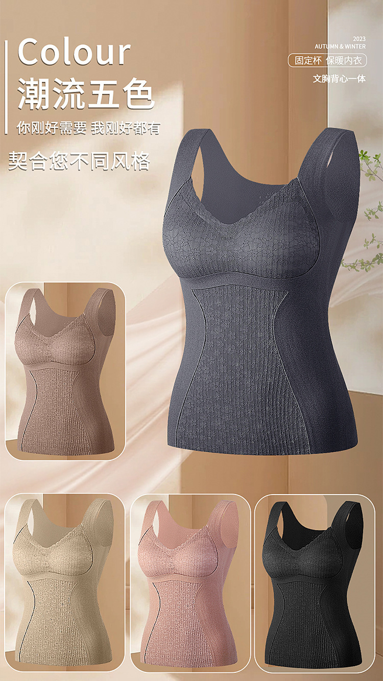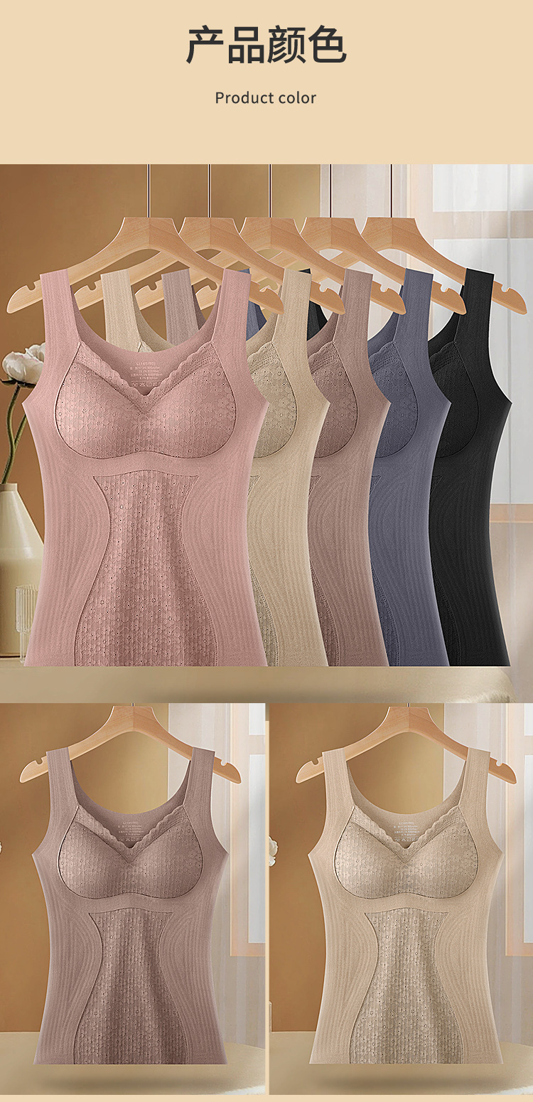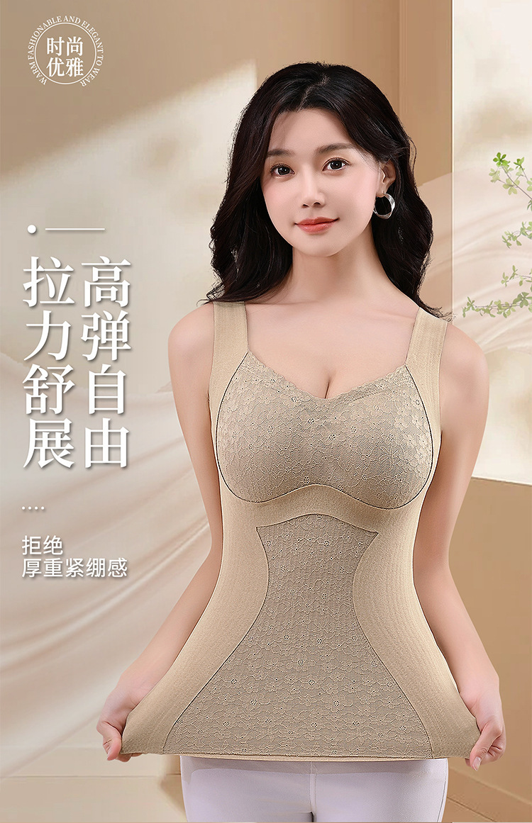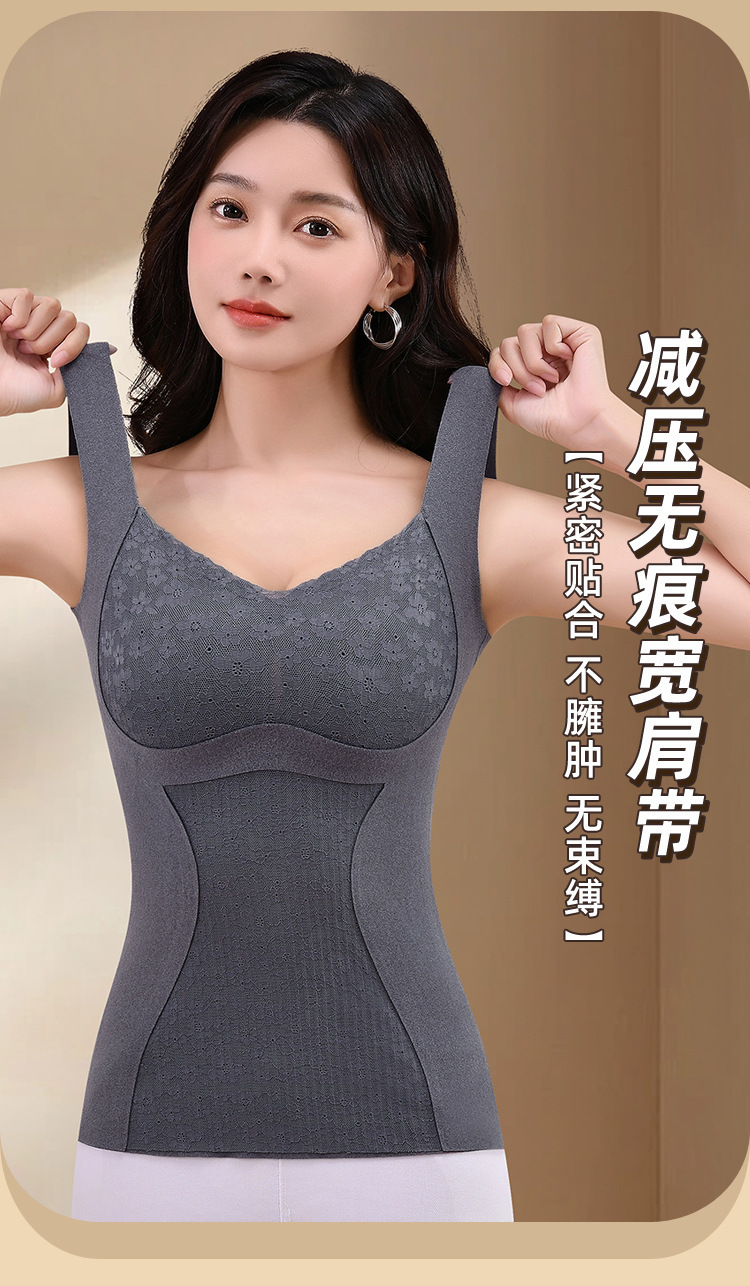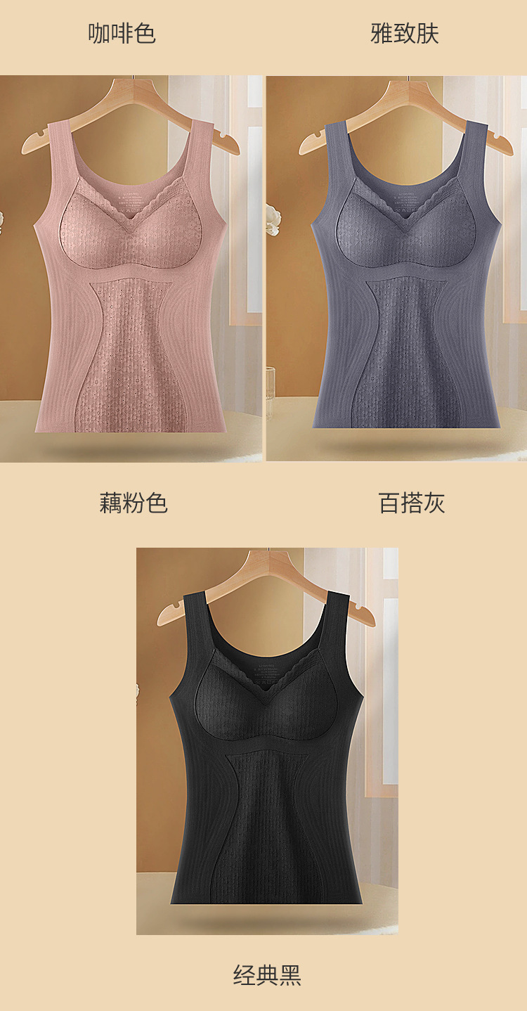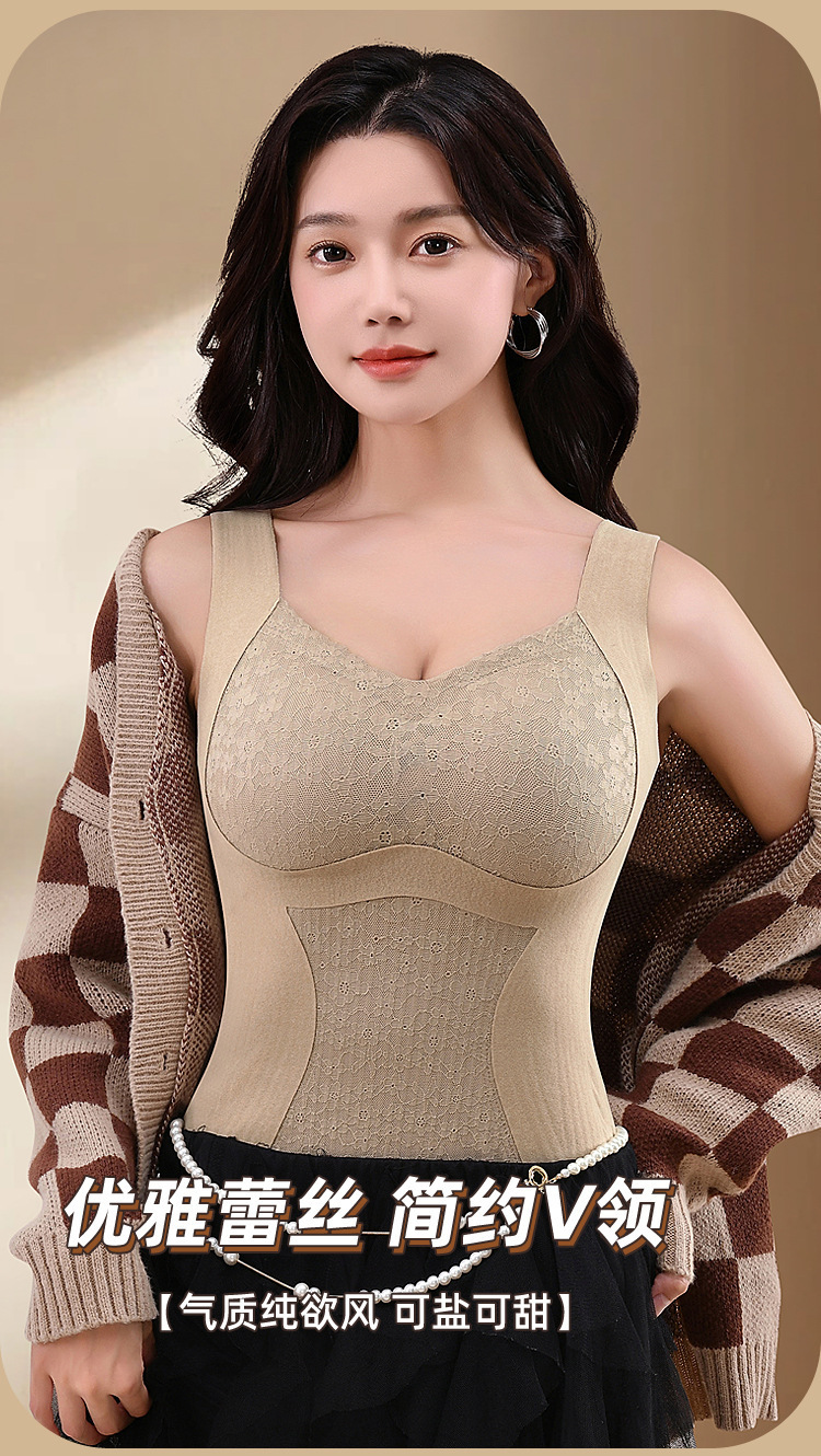 可穿到180斤【保暖黑科技!无痕背心】保暖防静电秋冬蕾丝女款德绒双面磨毛无痕发热加绒加厚自带胸垫文胸