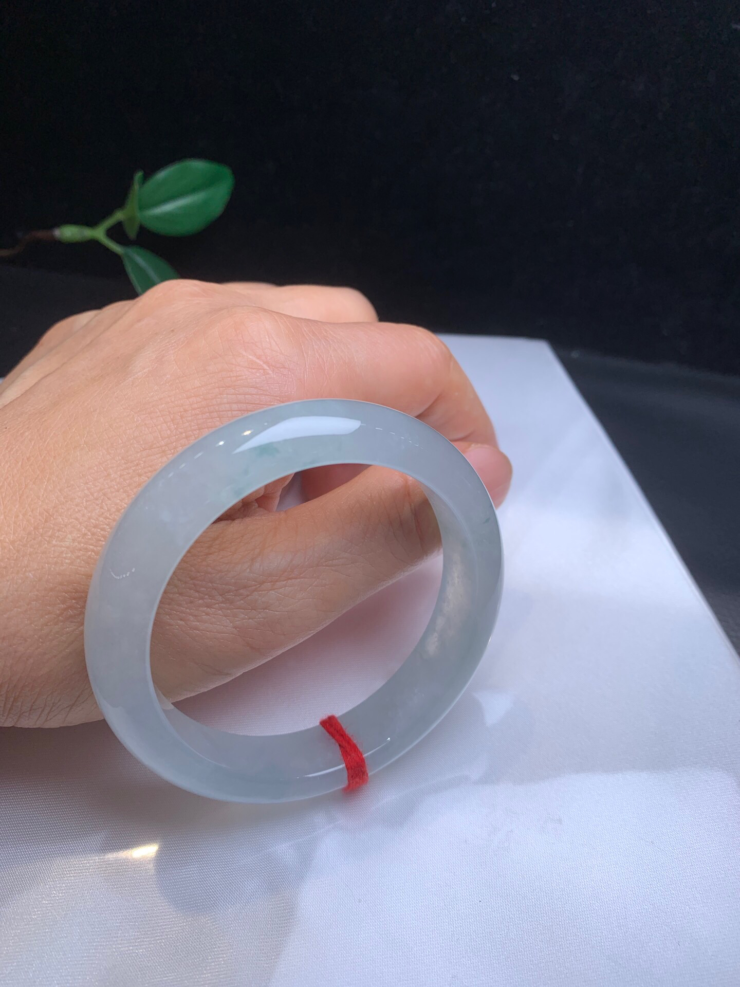 620148,53冰飘花手镯,冰底 飘了一点淡淡的蓝花,整体底子均匀干净