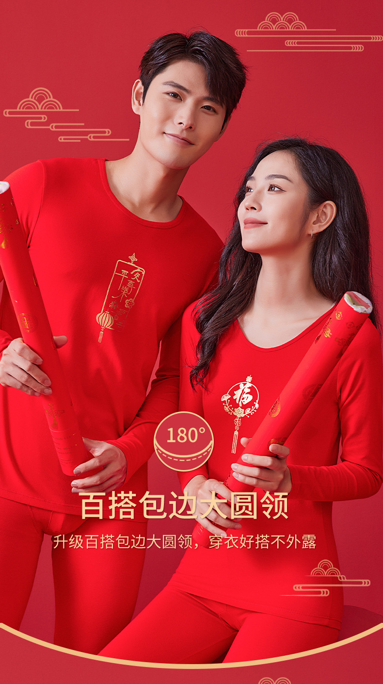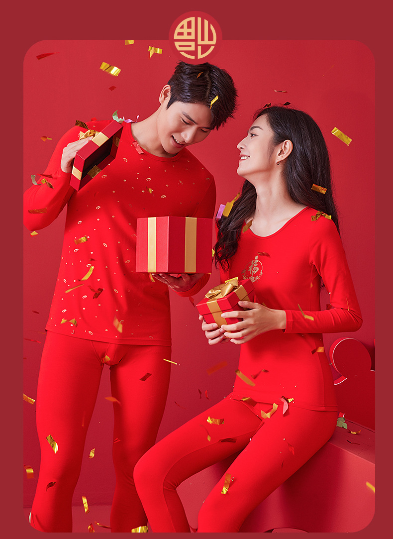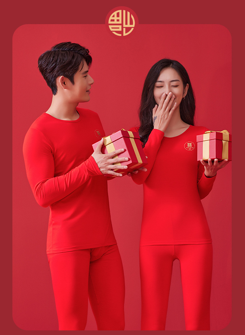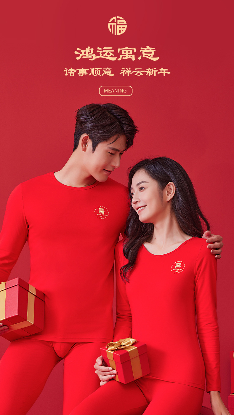 【诸事顺意福气上手❗️红运系列内衣】本命年情侣保暖内衣男红色圆领套装秋冬结婚秋衣秋裤女礼盒装马年父亲节礼物新年礼盒年货礼盒