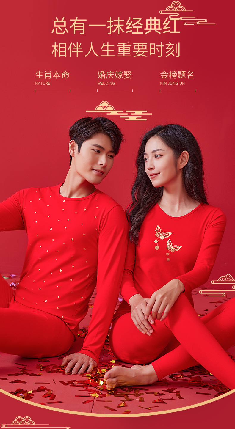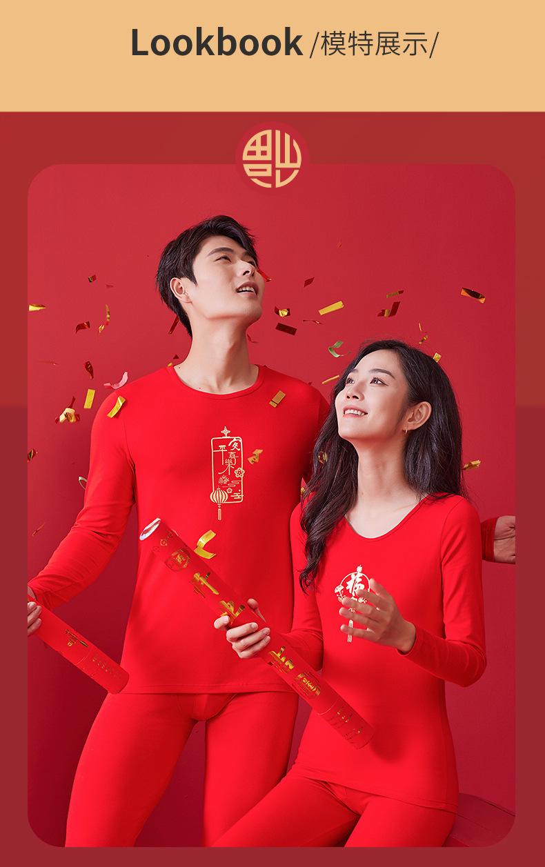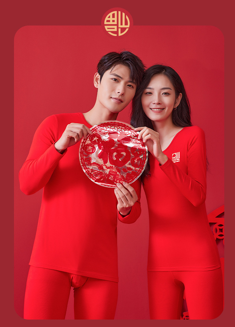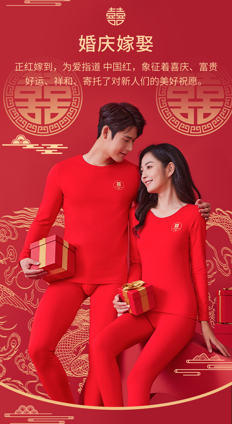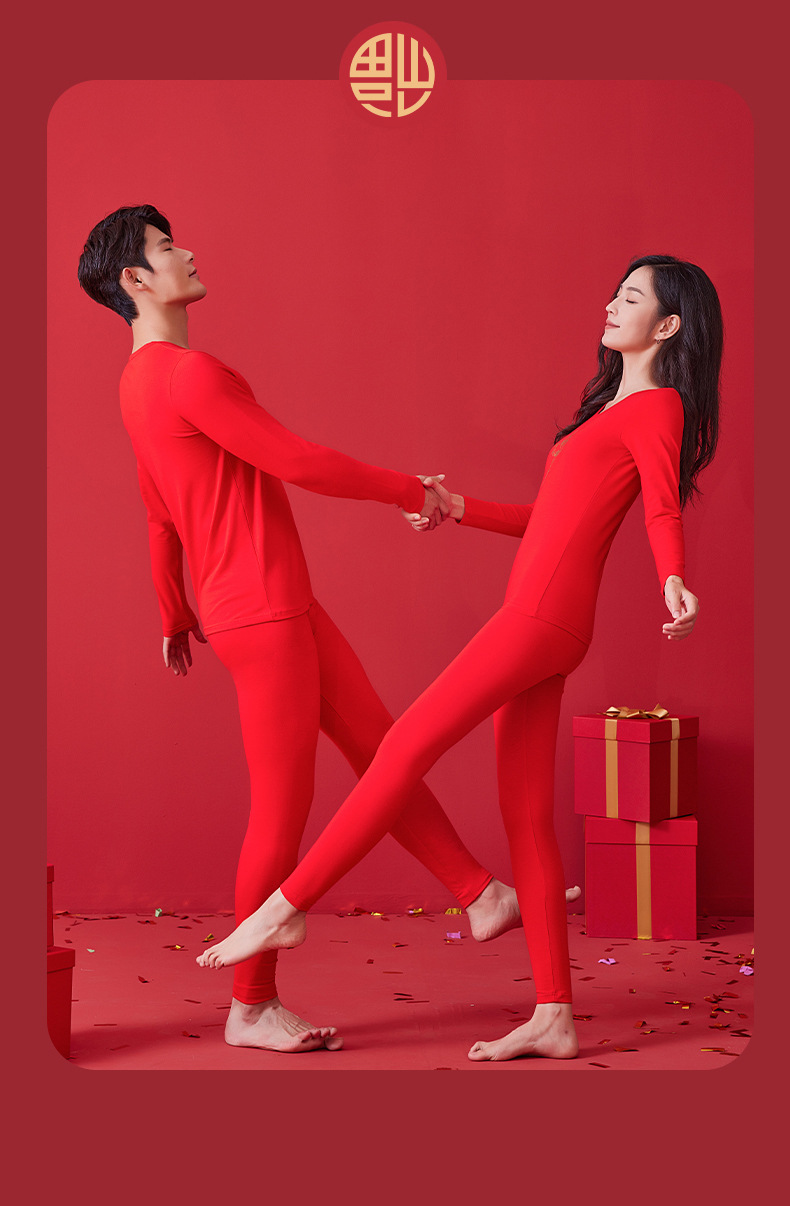 【诸事顺意福气上手❗️红运系列内衣】本命年情侣保暖内衣男红色圆领套装秋冬结婚秋衣秋裤女礼盒装马年父亲节礼物新年礼盒年货礼盒