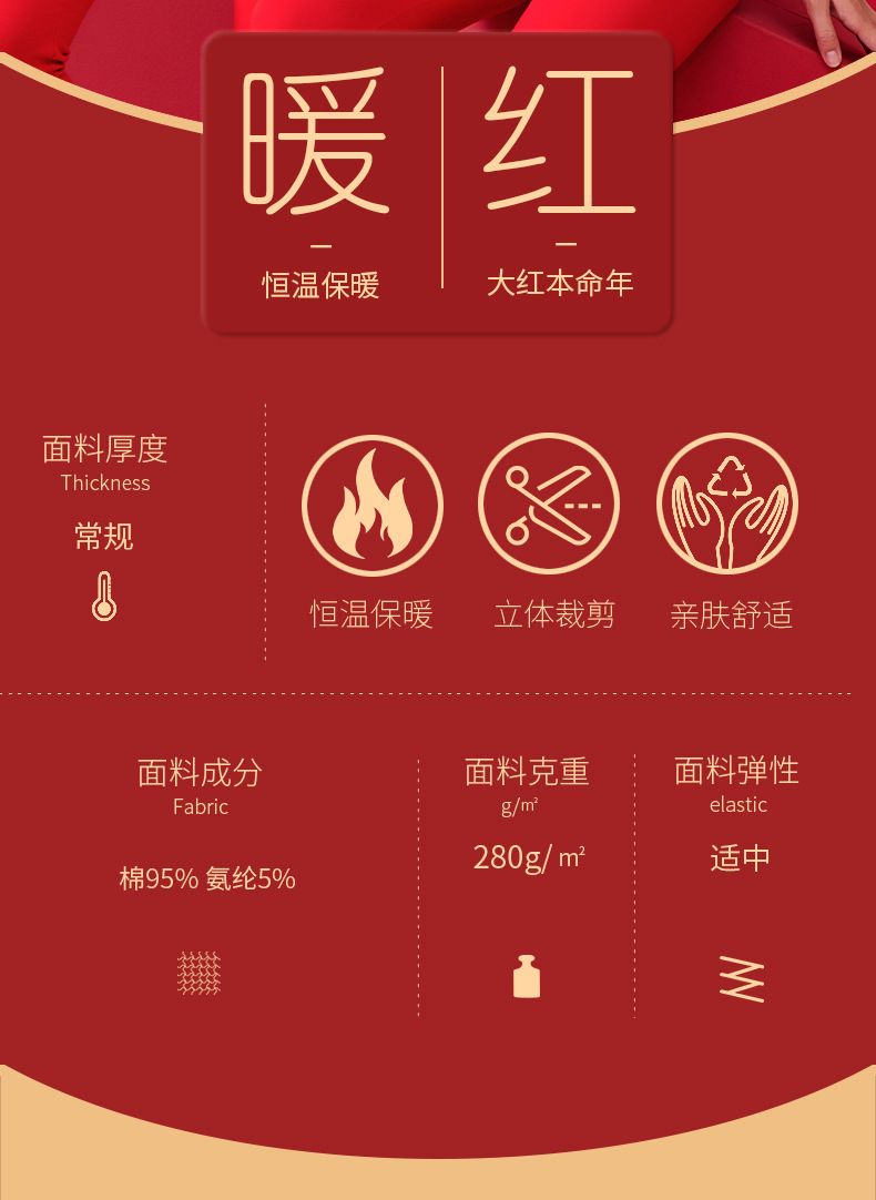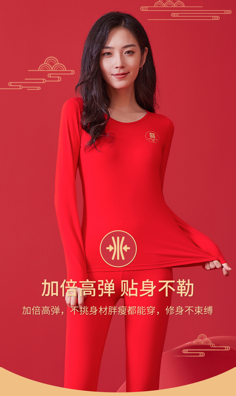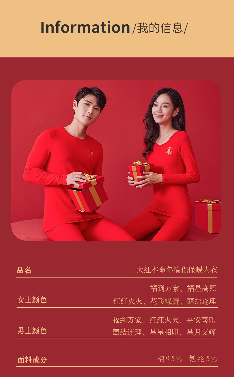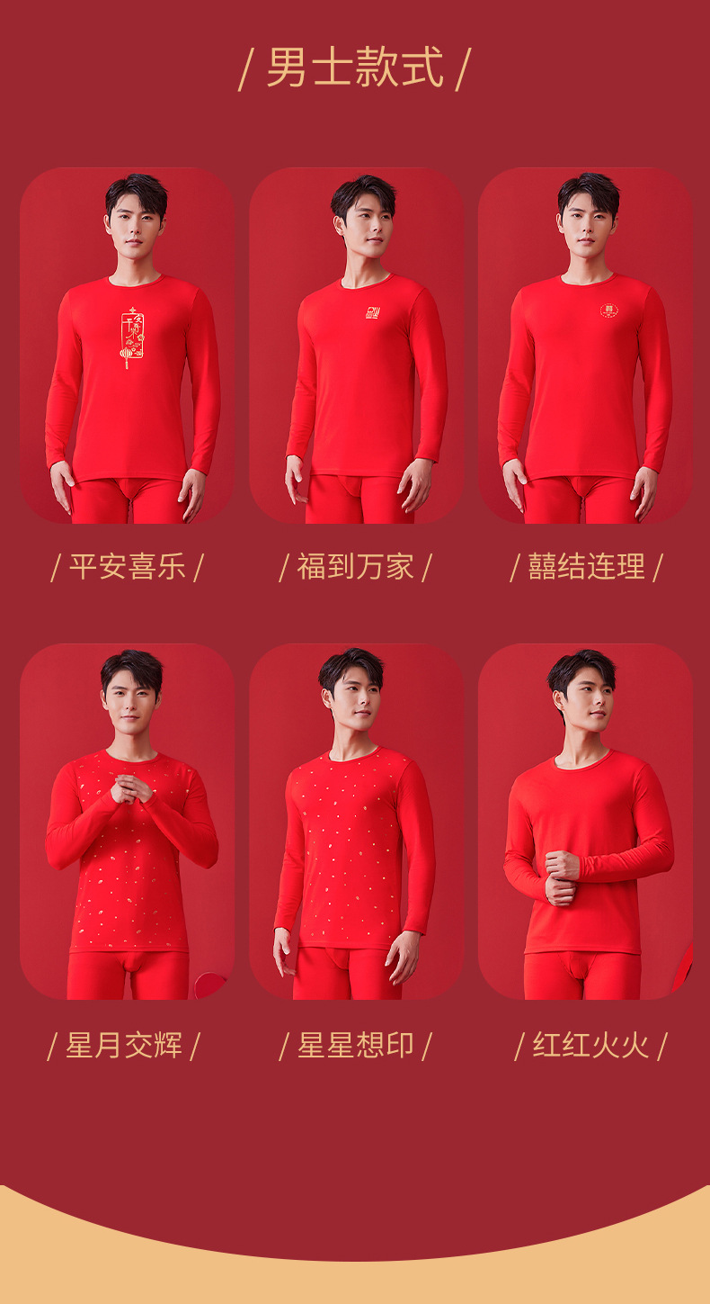 【诸事顺意福气上手❗️红运系列内衣】本命年情侣保暖内衣男红色圆领套装秋冬结婚秋衣秋裤女礼盒装马年父亲节礼物新年礼盒年货礼盒