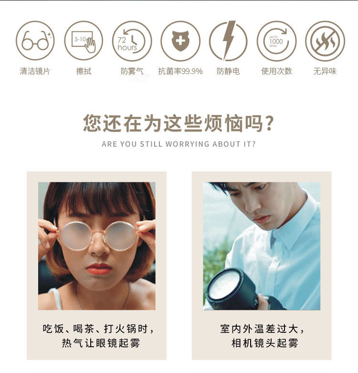 ROTUS眼镜防雾镜布 防起雾静电易清洁 可重复使用